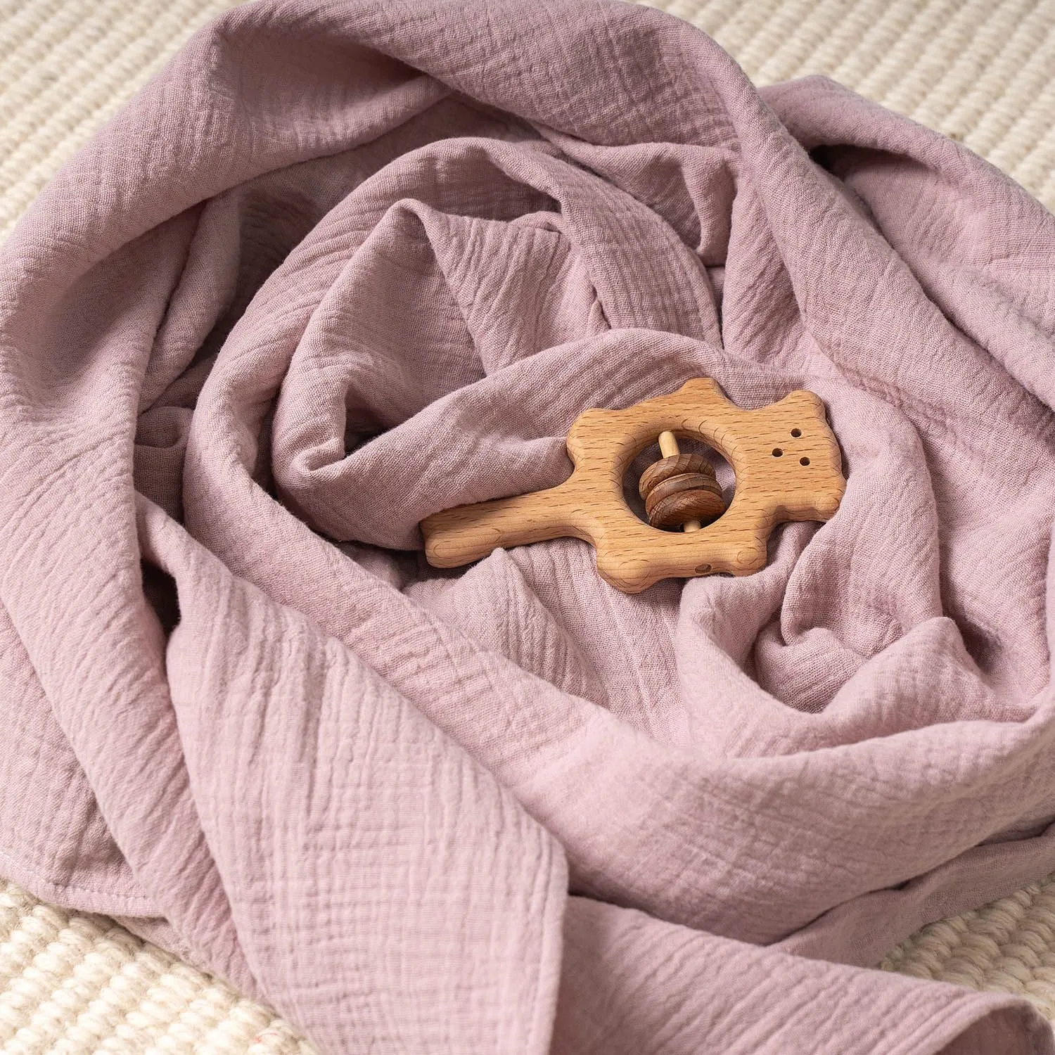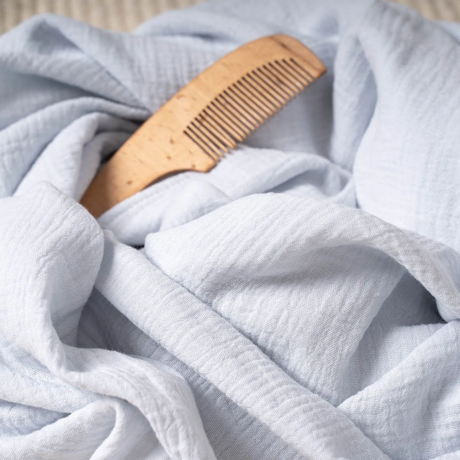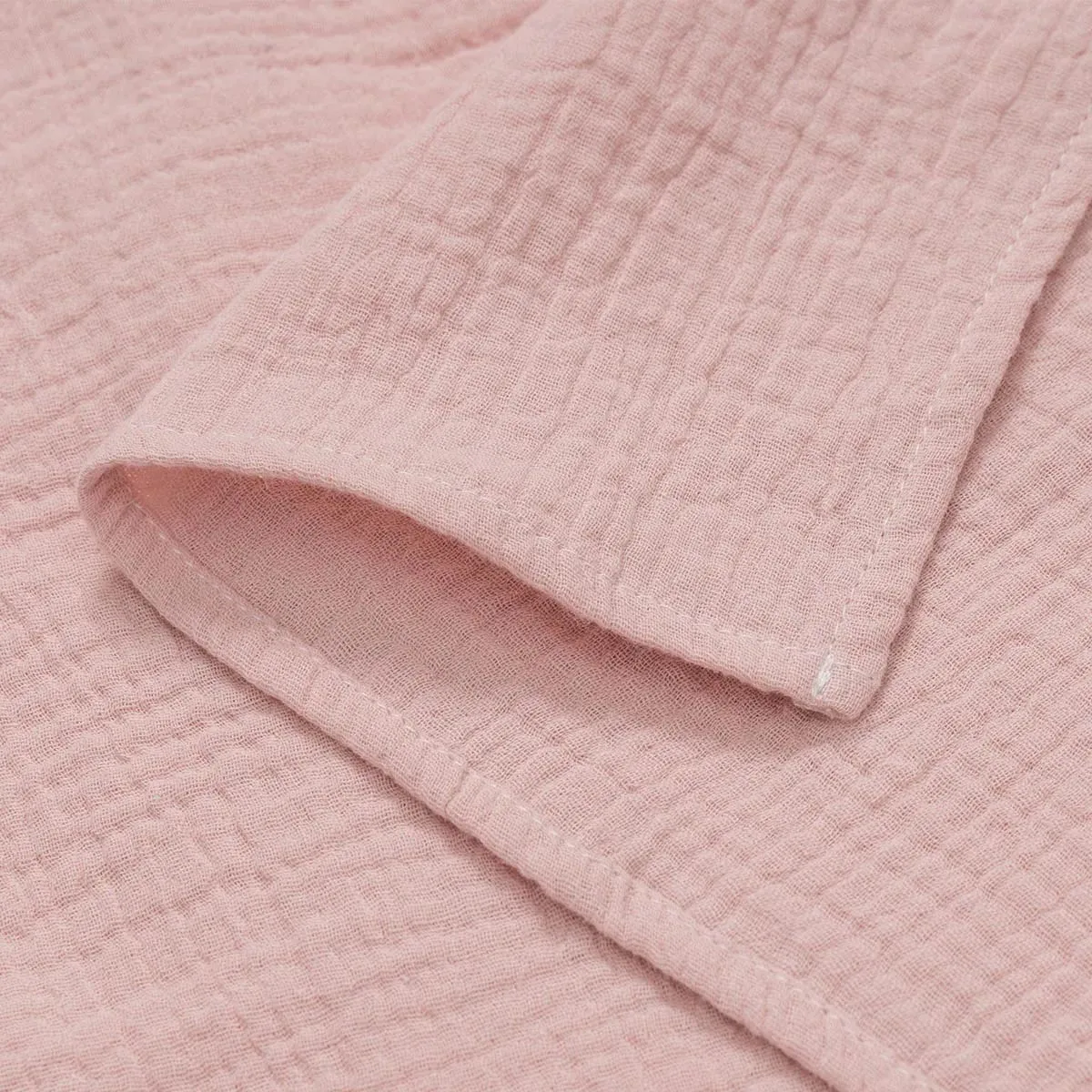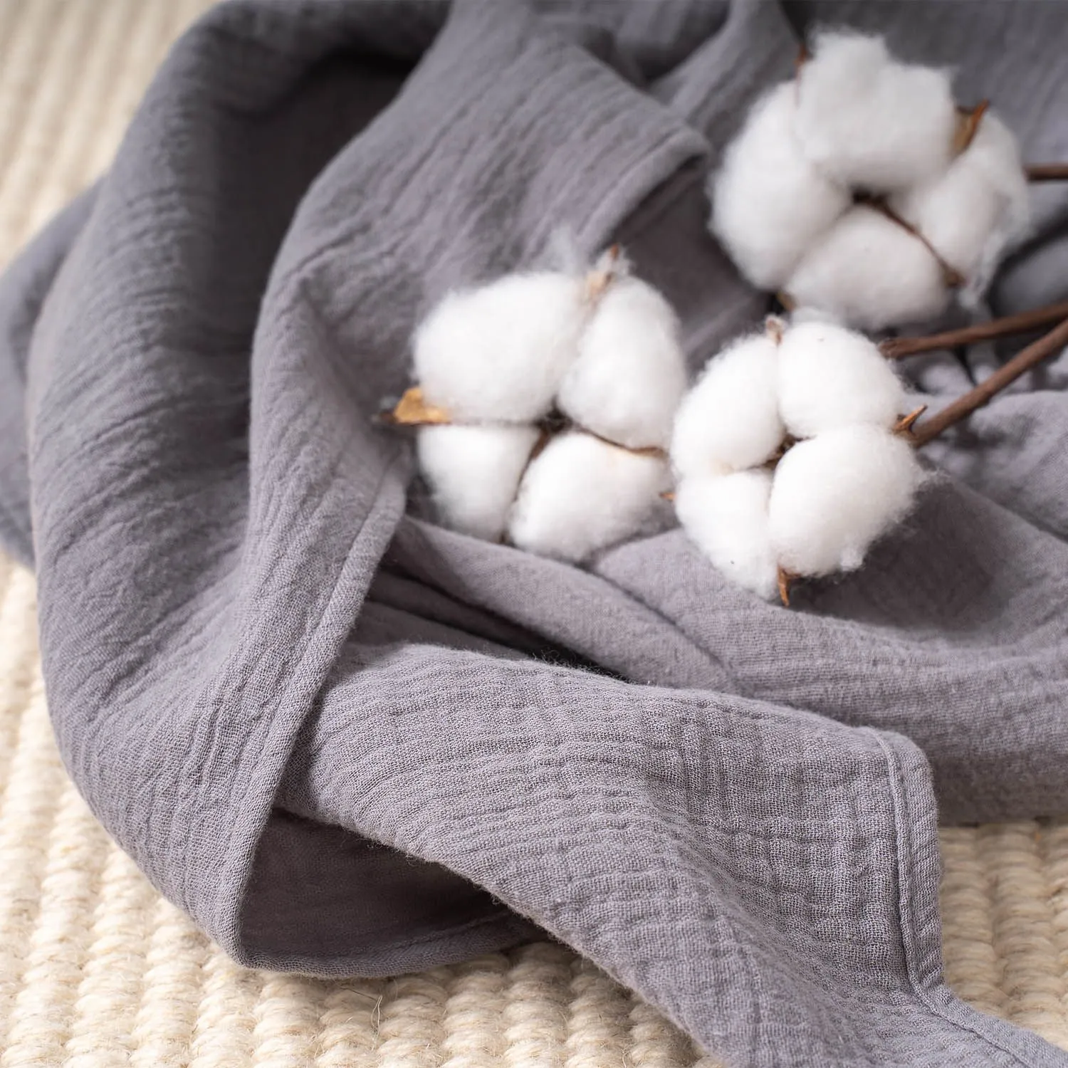 Ткань — премиальный жатый муслин высокого качества. Пеленки из жатого муслина более мягкие и сохнут гораздо быстрее, чем обычные. Такая ткань хорошо пропускает воздух, в них комфортно в любую погоду благодаря терморегулирующим свойствам.