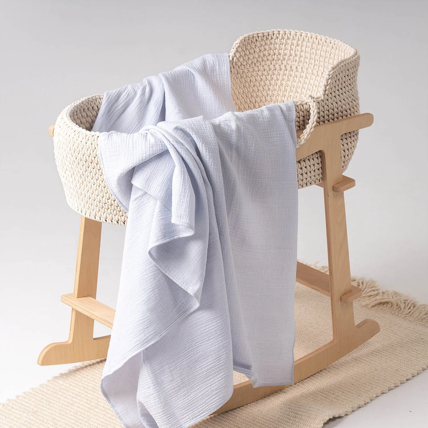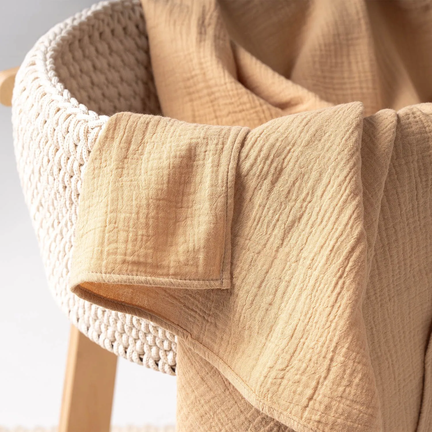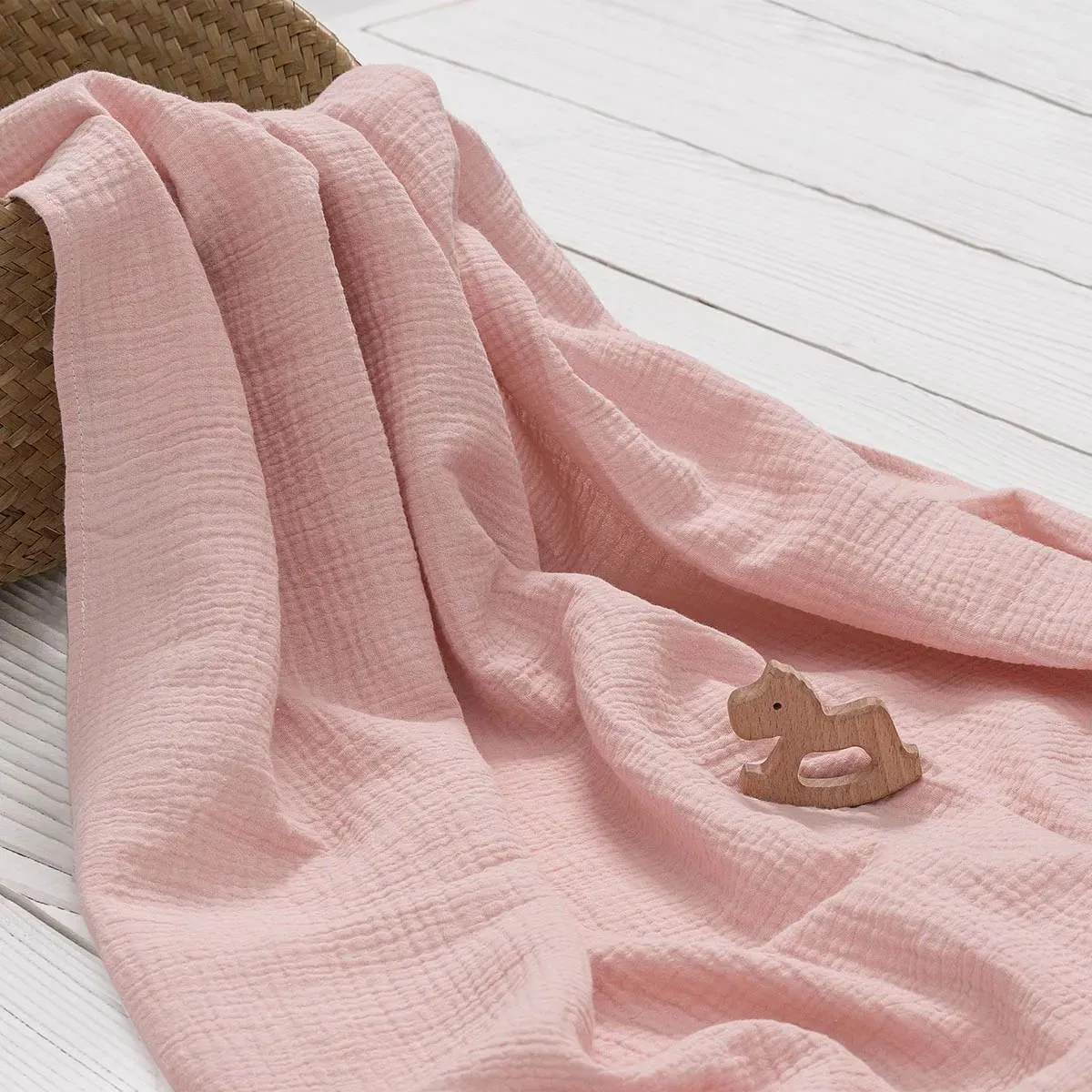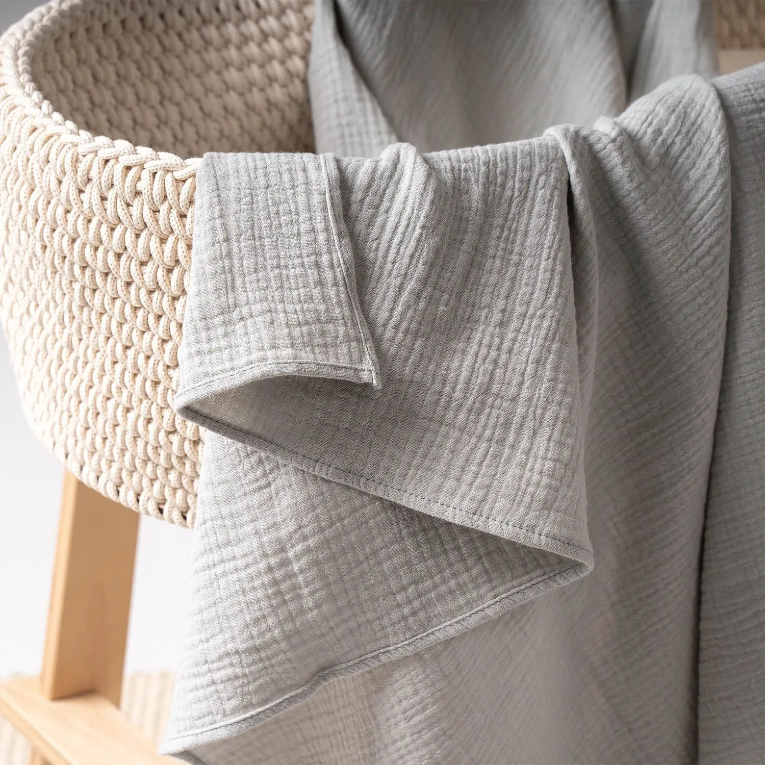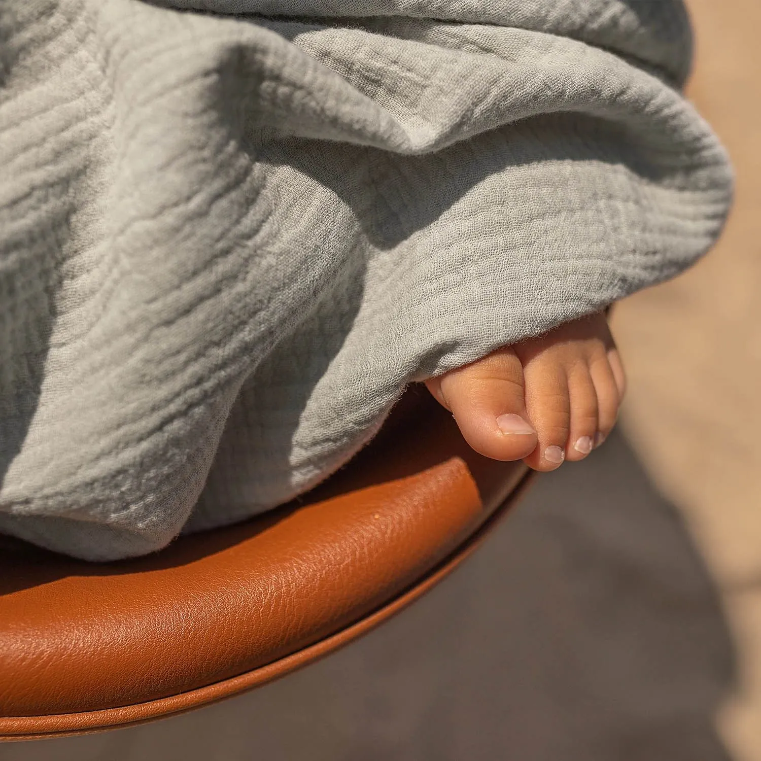 Ткань — премиальный жатый муслин высокого качества. Пеленки из жатого муслина более мягкие и сохнут гораздо быстрее, чем обычные. Такая ткань хорошо пропускает воздух, в них комфортно в любую погоду благодаря терморегулирующим свойствам.