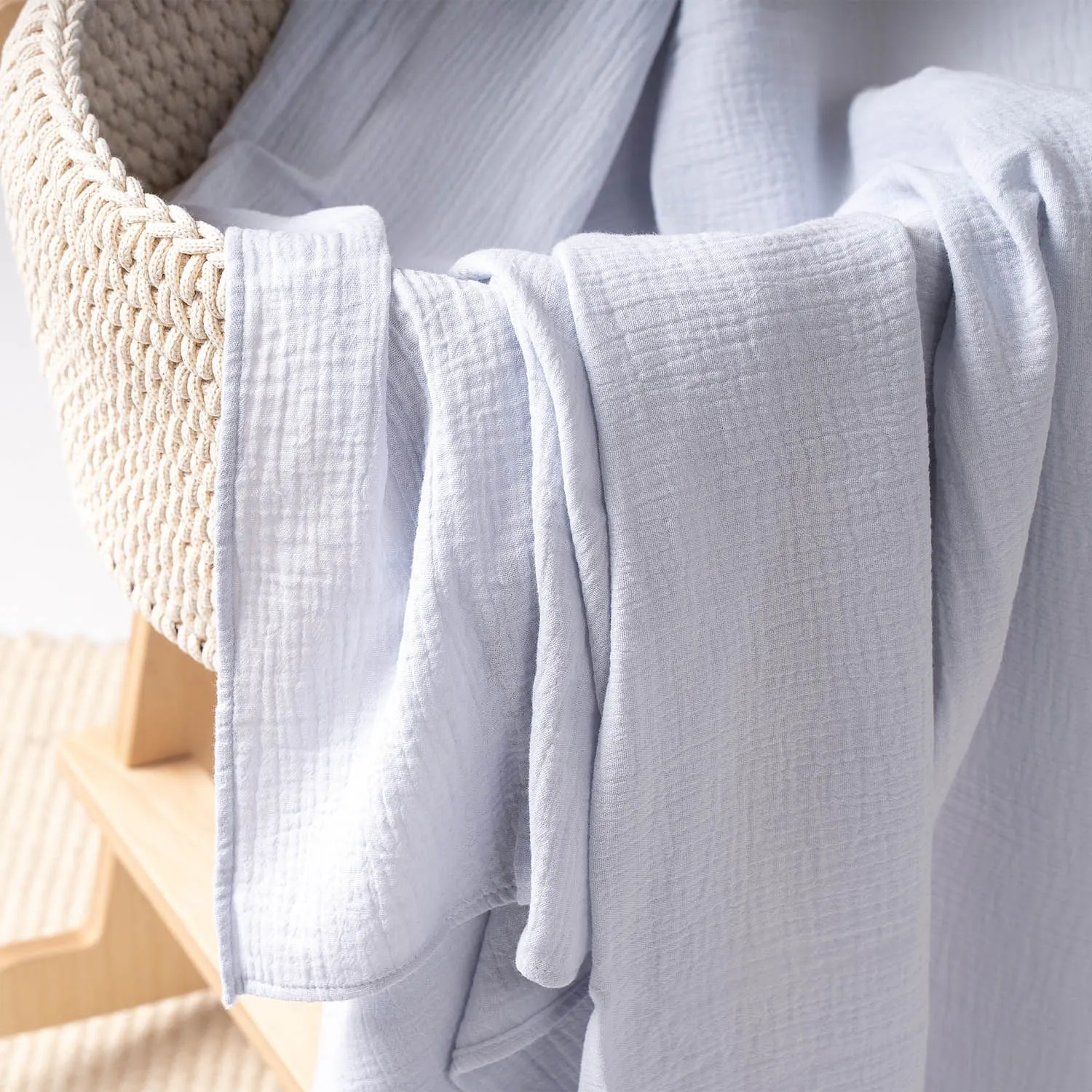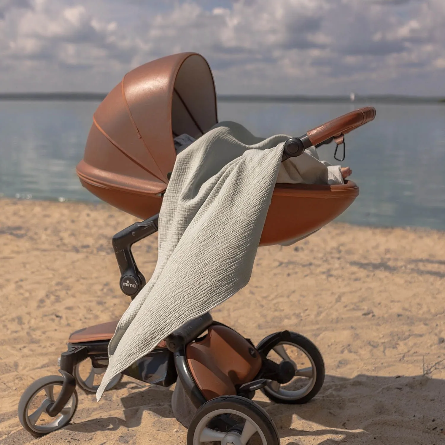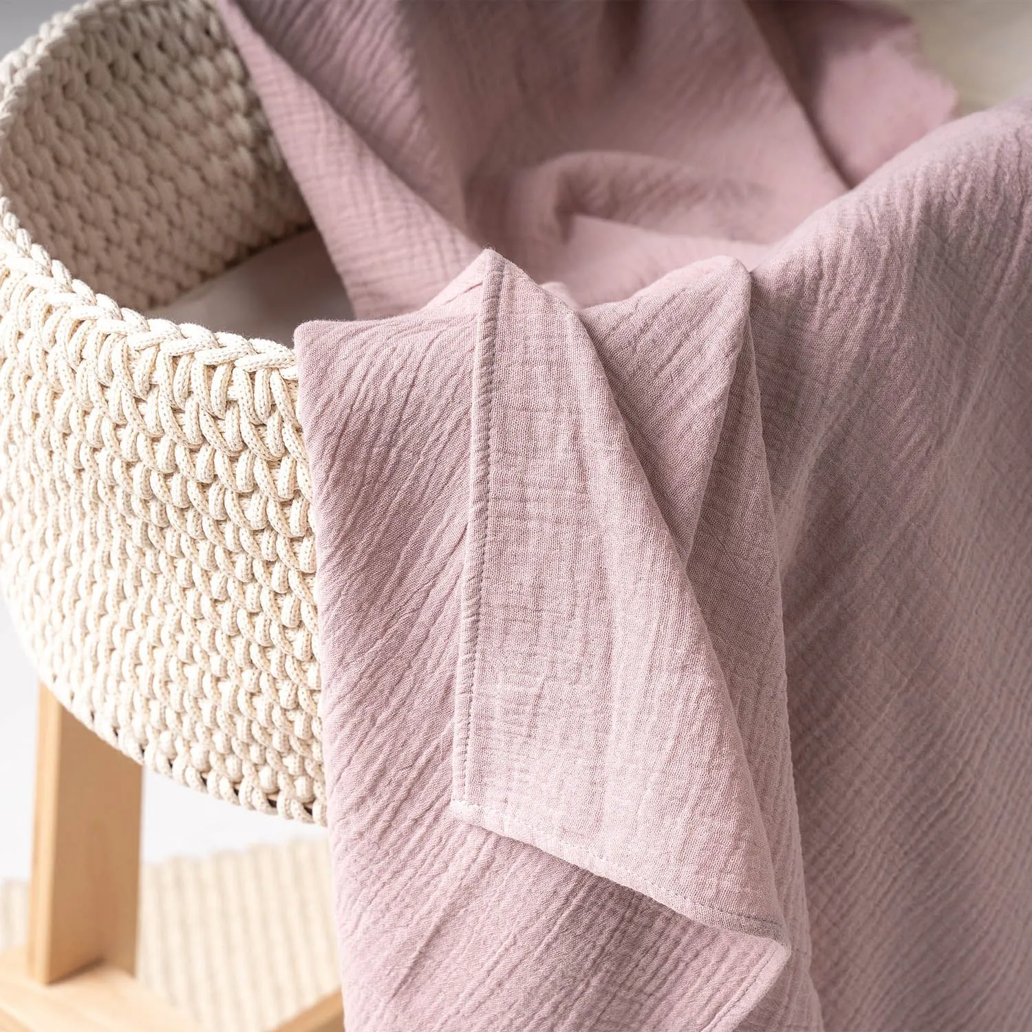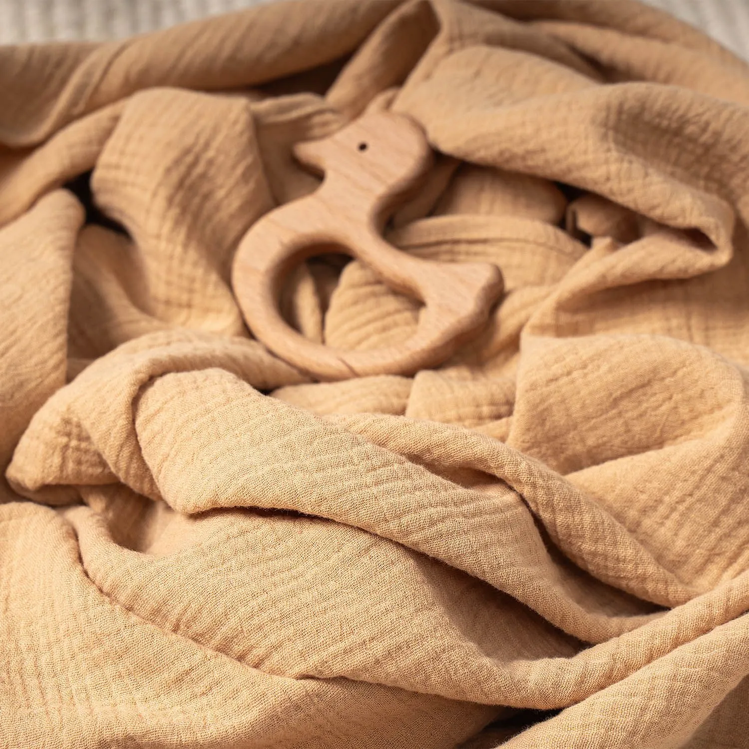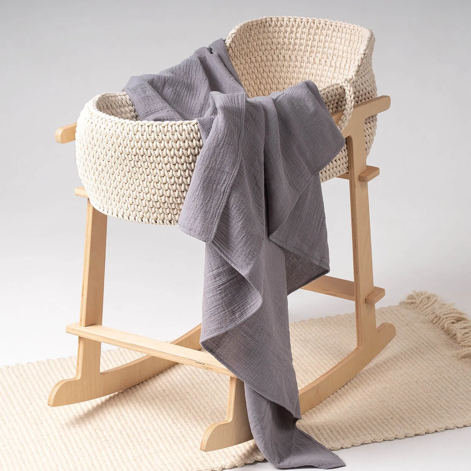 Ткань — премиальный жатый муслин высокого качества. Пеленки из жатого муслина более мягкие и сохнут гораздо быстрее, чем обычные. Такая ткань хорошо пропускает воздух, в них комфортно в любую погоду благодаря терморегулирующим свойствам.