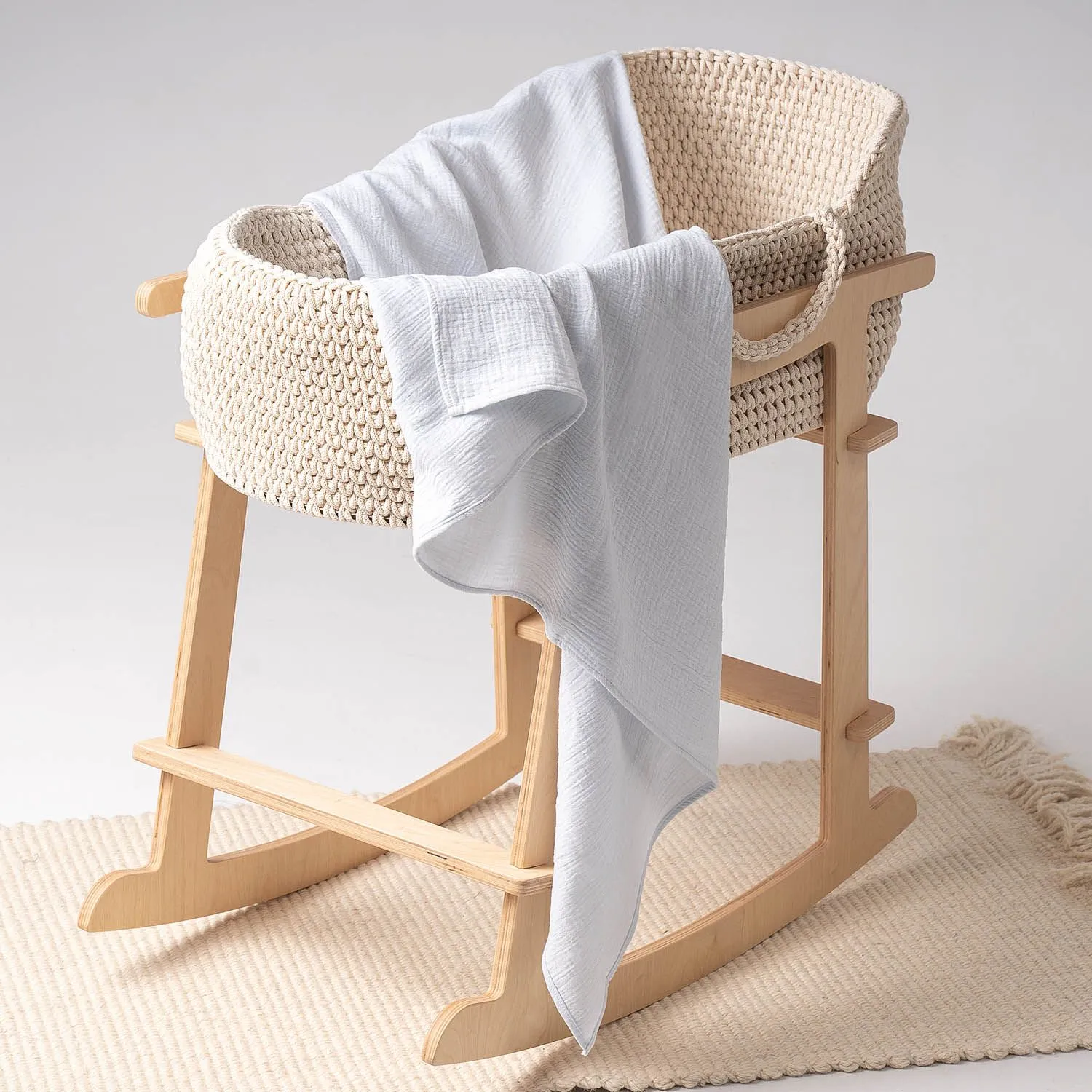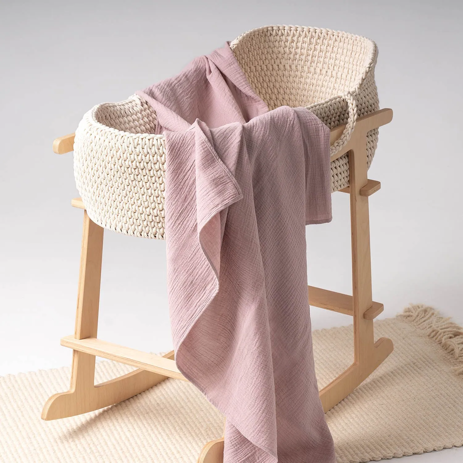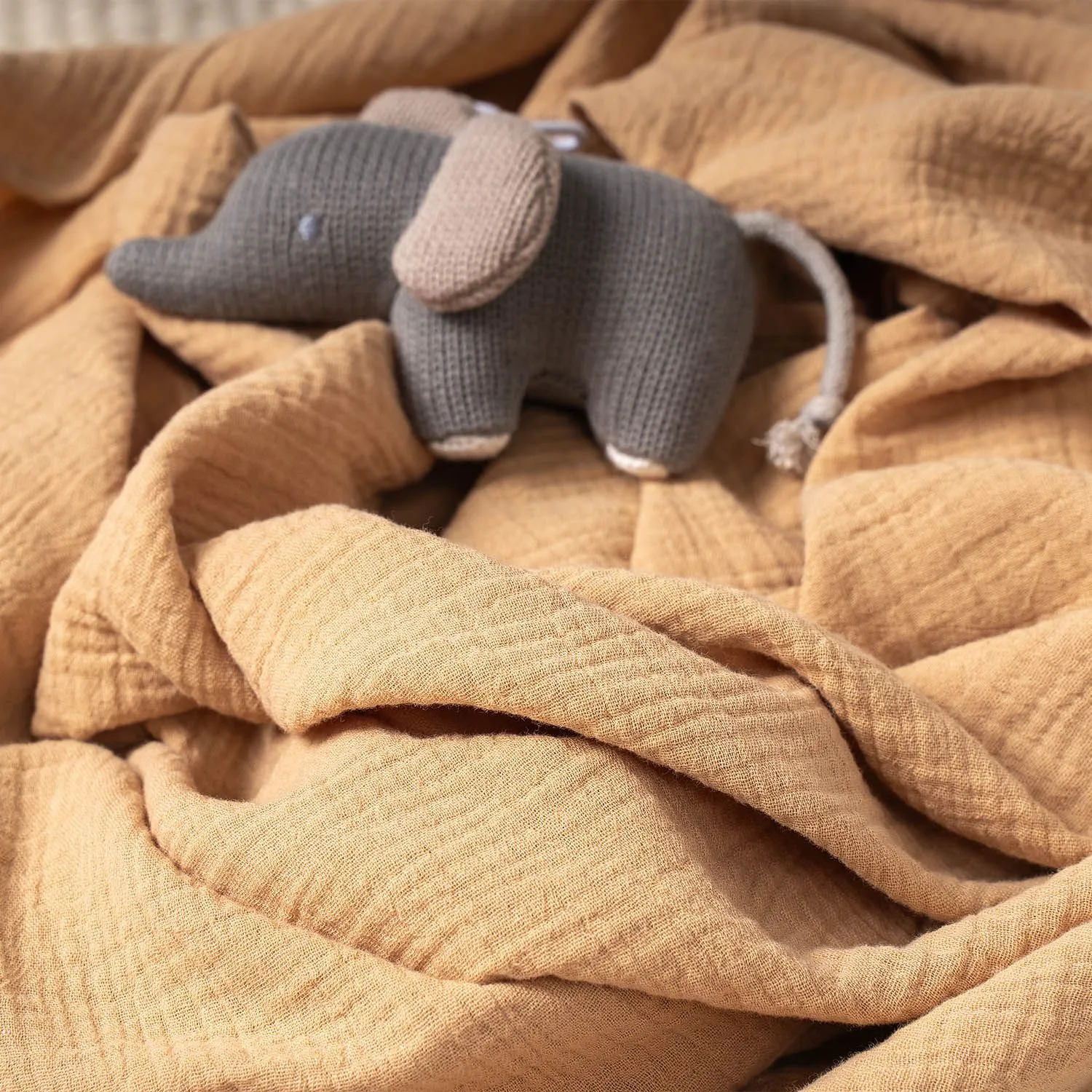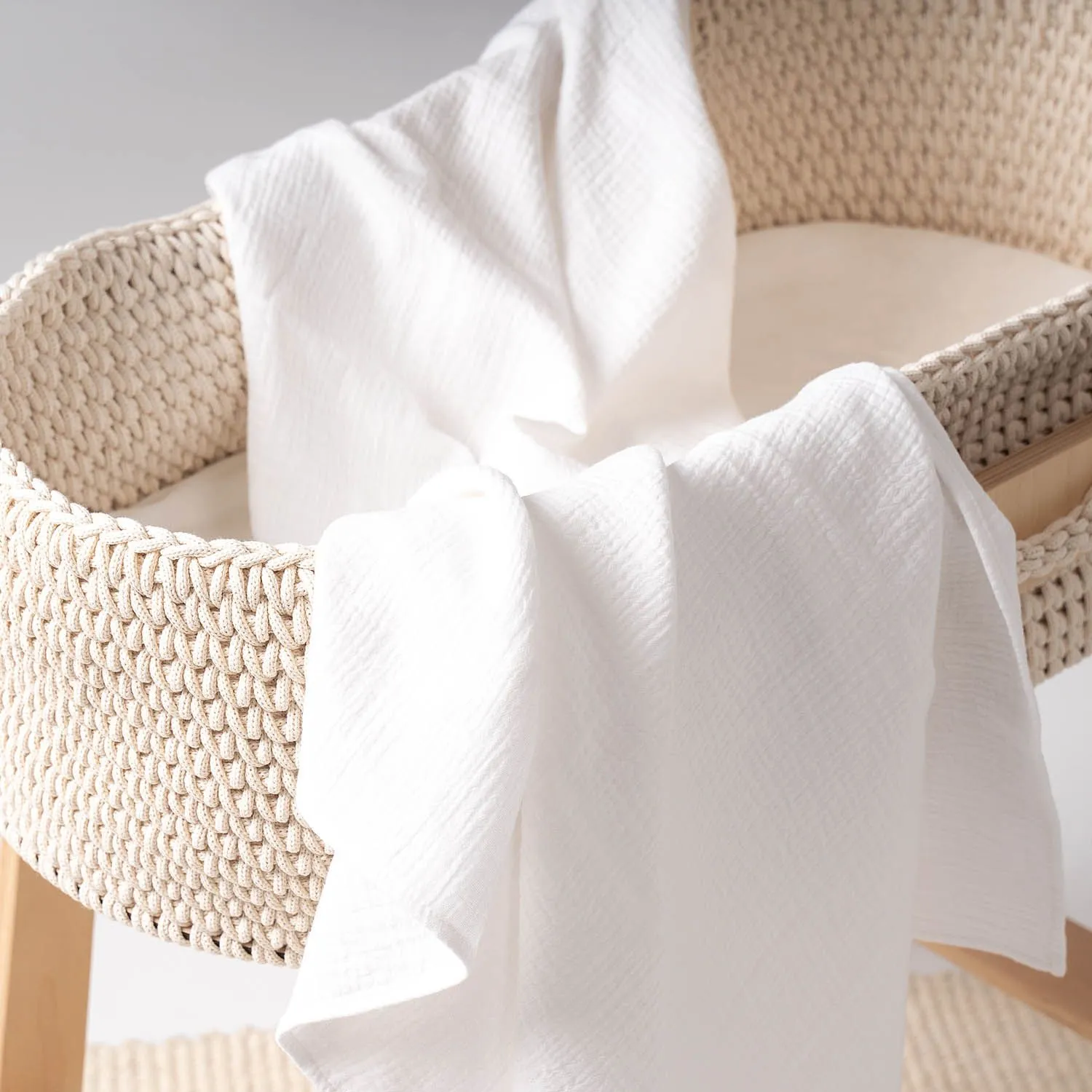 Ткань — премиальный жатый муслин высокого качества. Пеленки из жатого муслина более мягкие и сохнут гораздо быстрее, чем обычные. Такая ткань хорошо пропускает воздух, в них комфортно в любую погоду благодаря терморегулирующим свойствам.