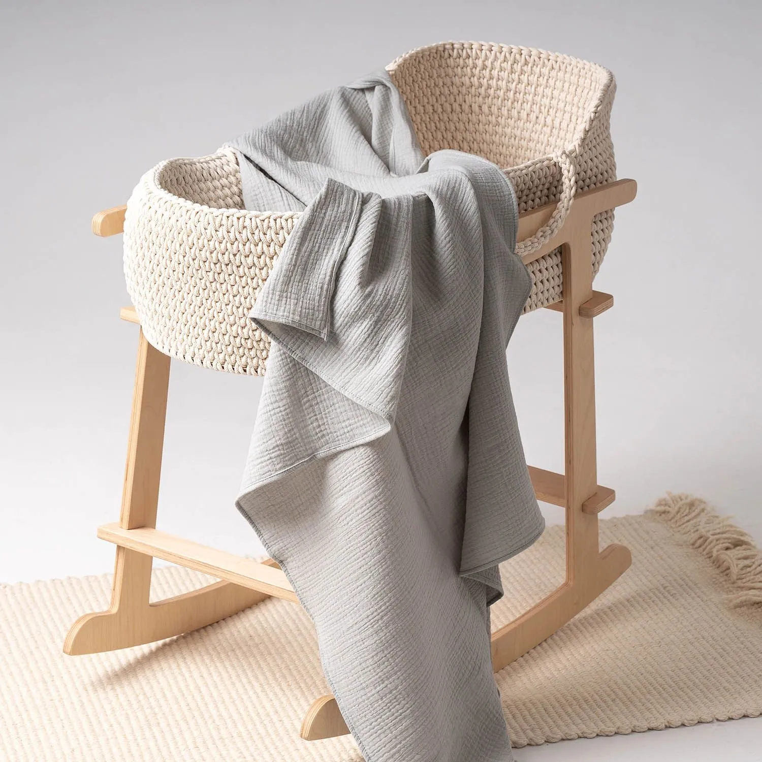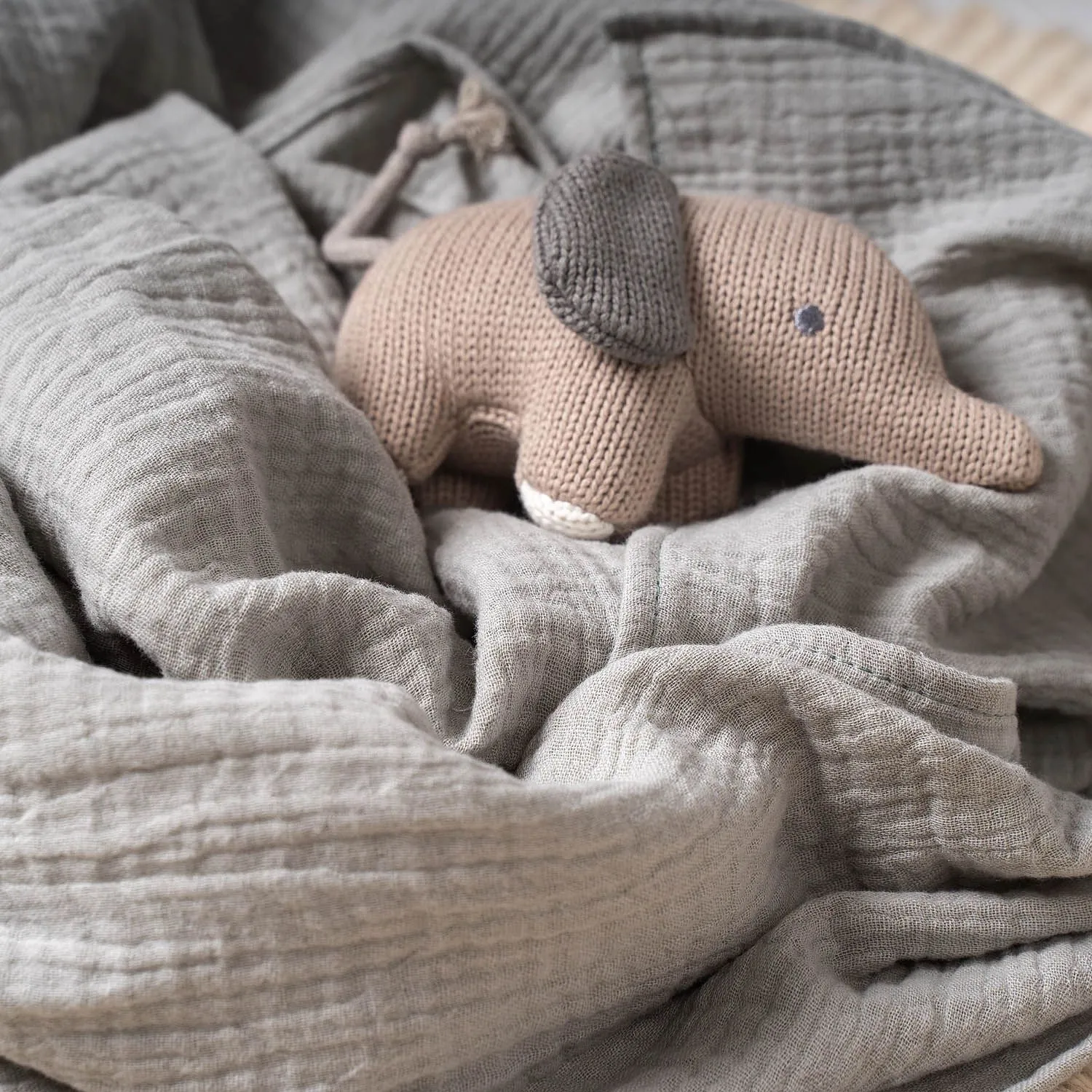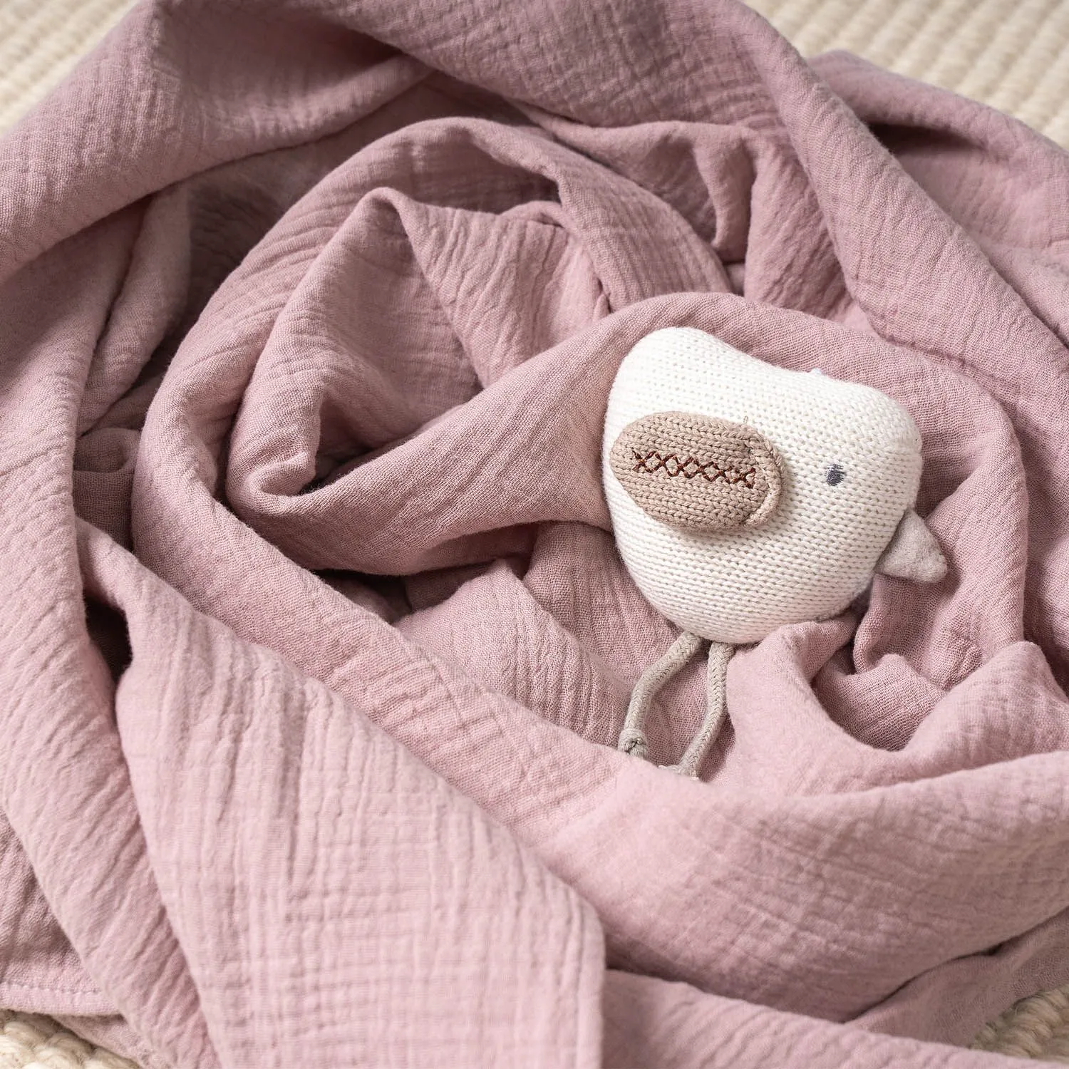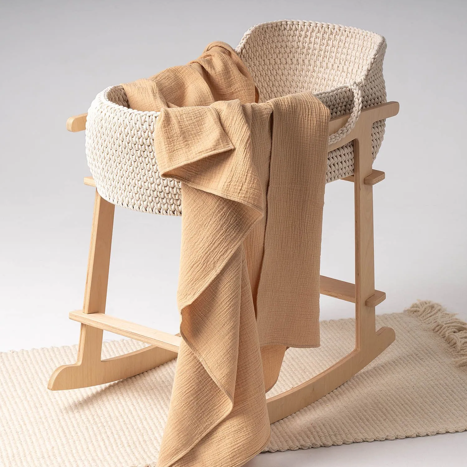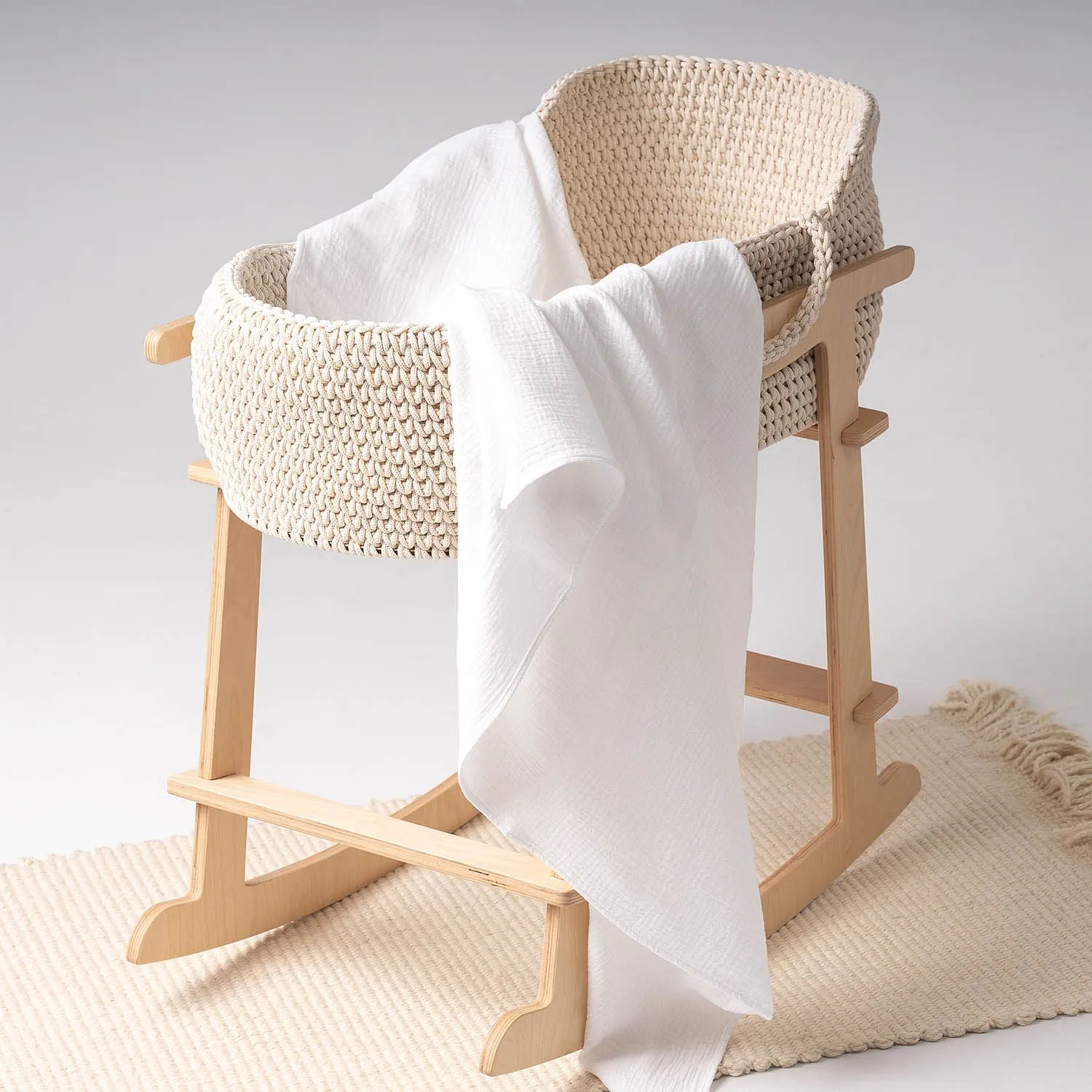 Ткань — премиальный жатый муслин высокого качества. Пеленки из жатого муслина более мягкие и сохнут гораздо быстрее, чем обычные. Такая ткань хорошо пропускает воздух, в них комфортно в любую погоду благодаря терморегулирующим свойствам.