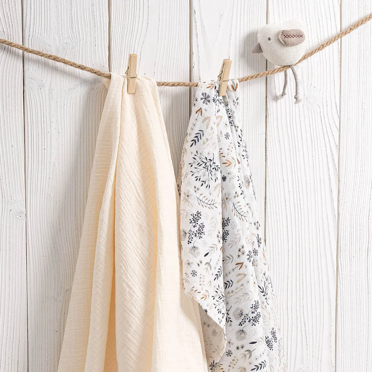 Двухслойные муслиновые пелёнки из 100% хлопка особенно нежно касаются кожи малыша. Они легкие и воздушные, мягко укутывают ребёнка, как невесомое облачко!