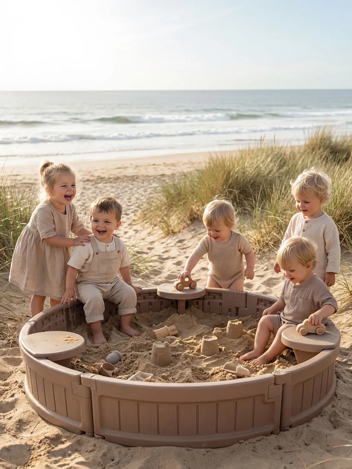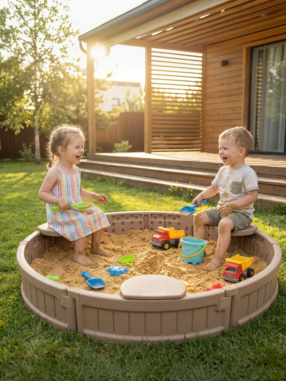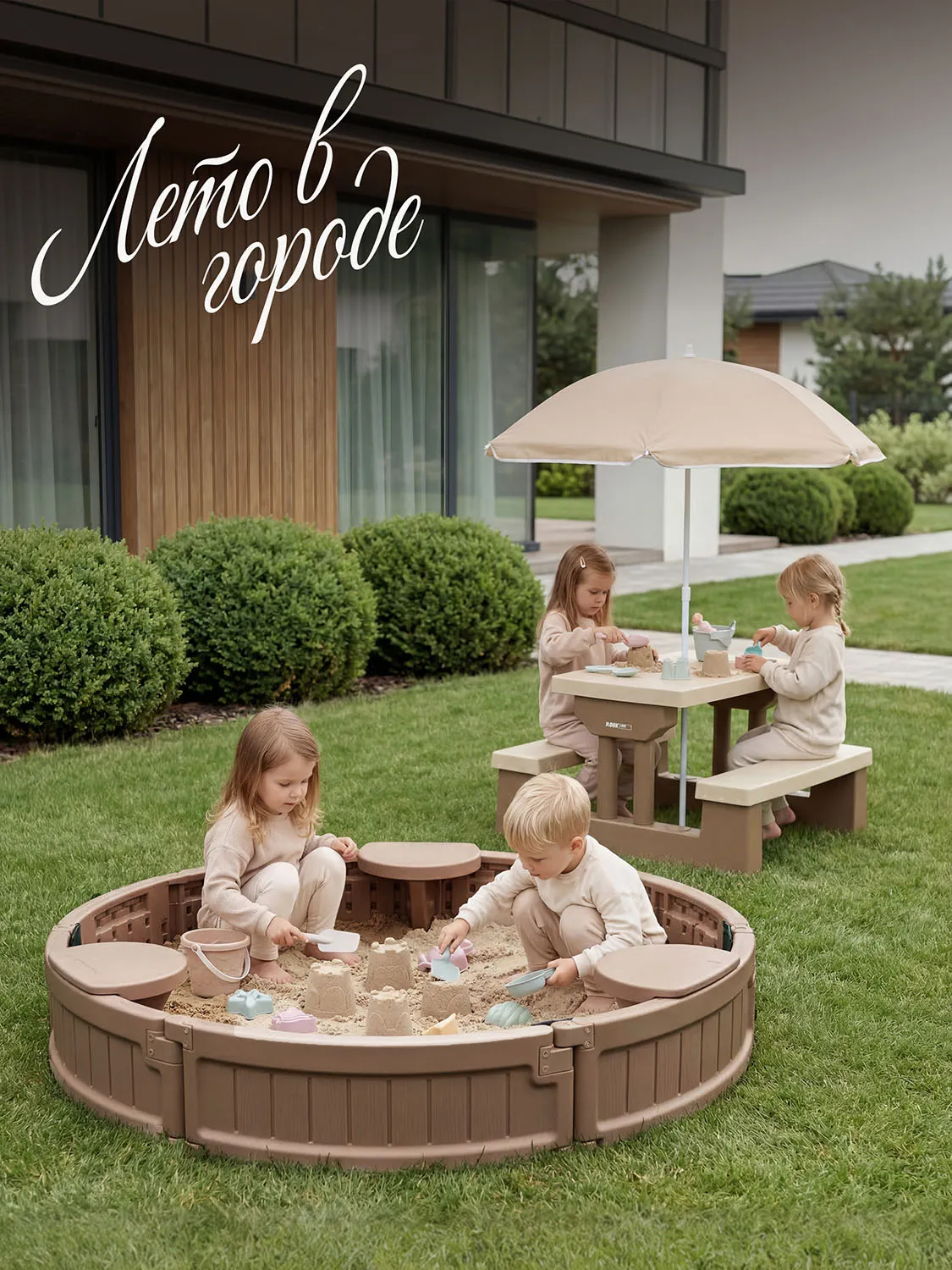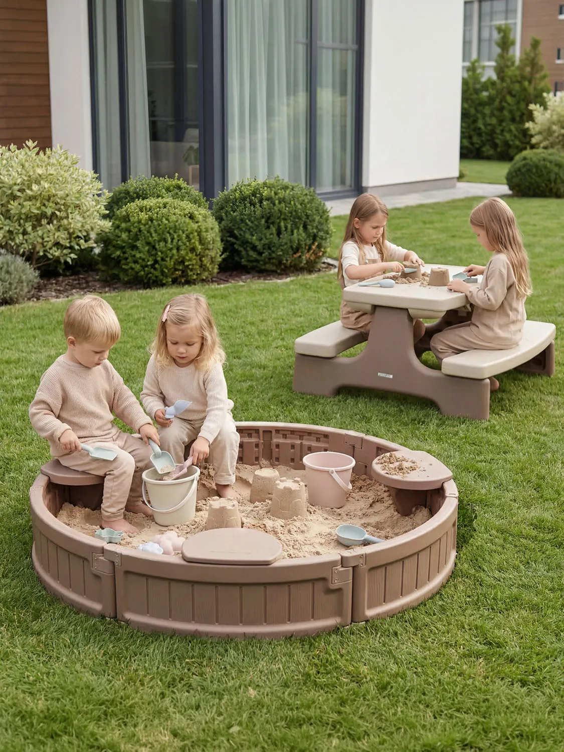 Каждое сиденье рассчитано на нагрузку до 25 кг. Максимальная вместительность составляет до 200 кг песка (около 150 литров), что позволяет создать обширную зону для творчества и развлечений.