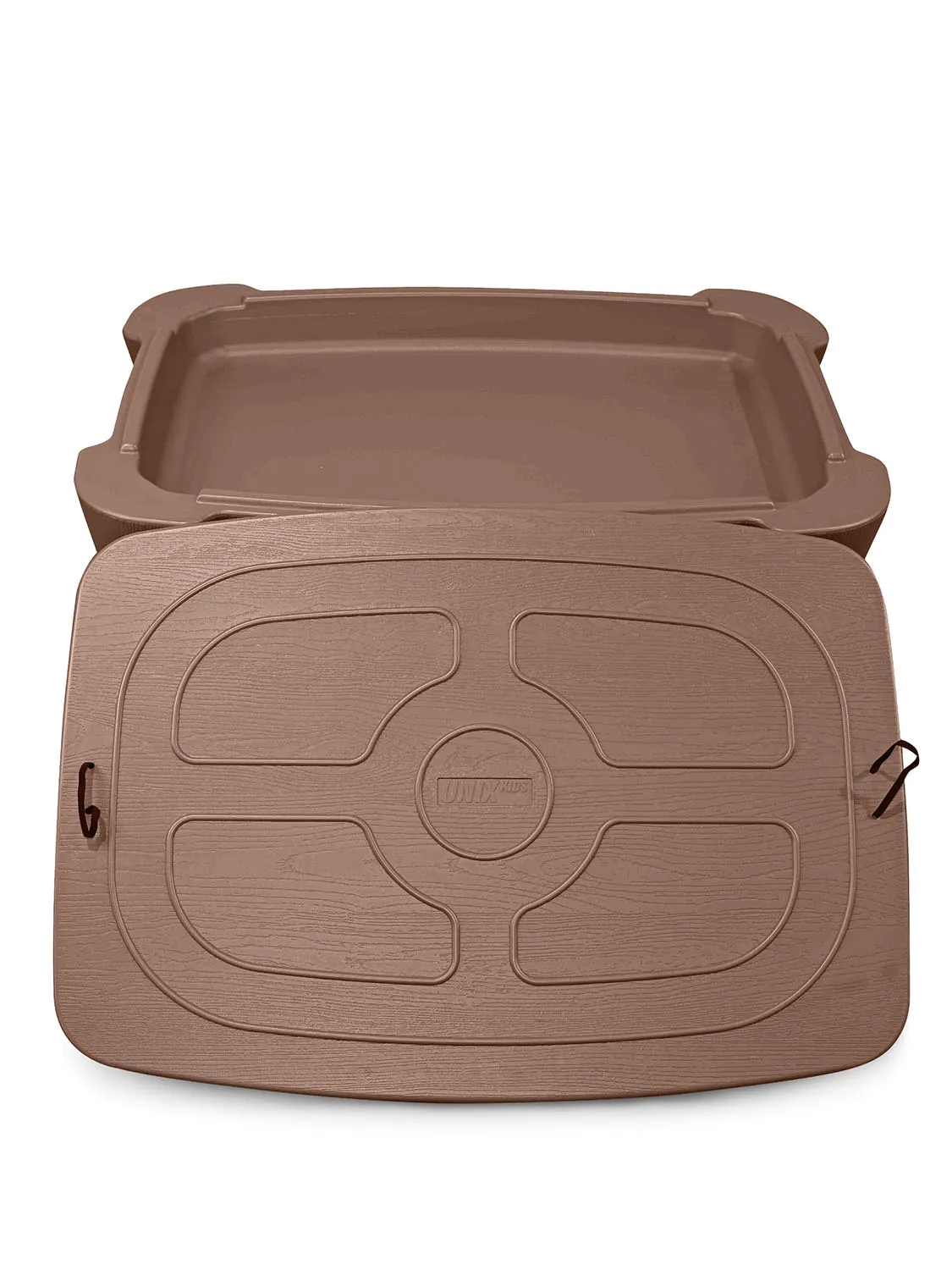 Крышка домашней / уличной песочницы оснащена удобными ручками, позволяющими легко закрывать изделие, защищая содержимое от влаги и загрязнений. Сборка проста и доступна каждому взрослому, не требует специальных инструментов и навыков, занимает минимум времени и усилий.