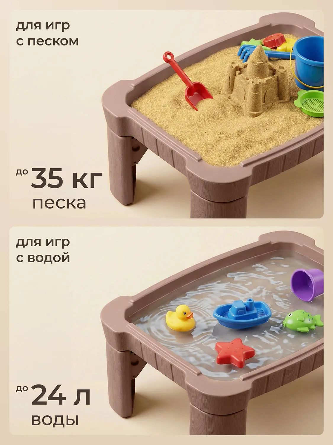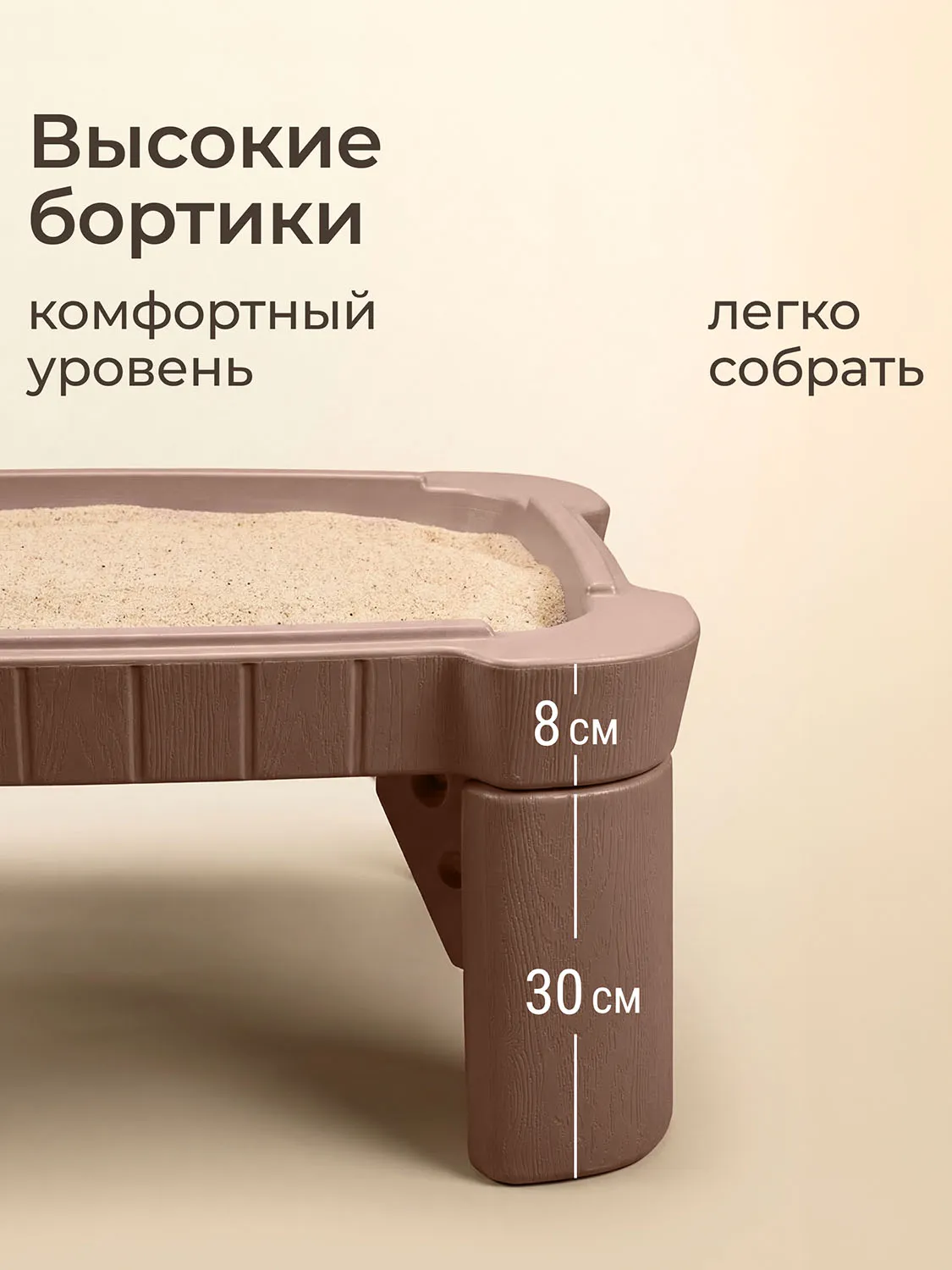 - Высокие бортики 8 см предотвращают рассыпание песка или розлив воды наружу