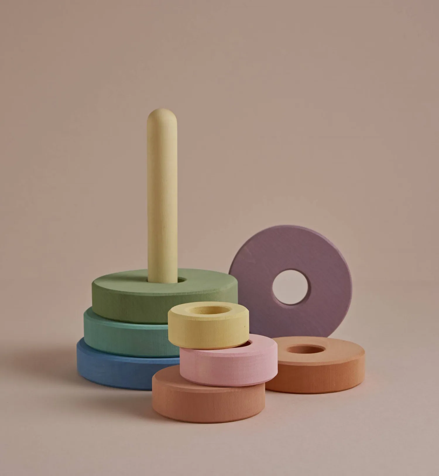 Кольца можно нанизывать на основание — от большего к меньшему и наоборот. Из них можно соорудить мордашки, использовать как тарелки для кукольного чаепития или нанизывать на ленточку и крутить. Нет никаких правил!