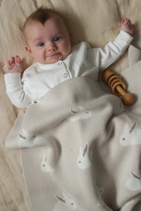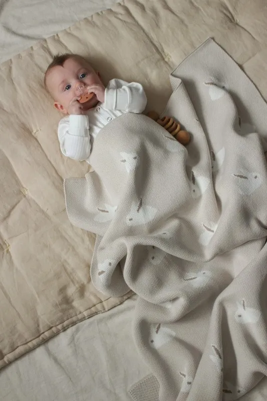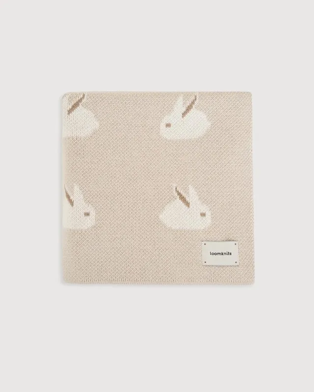Стильный хлопковый плед LoomKnits Animal Rabbits — на выписку, на прогулку, для сна дома или на фотосессию