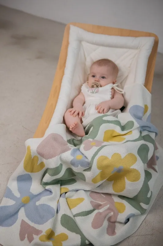Плед детский 80х120 см LoomKnits жаккардовый Экрю Цветы