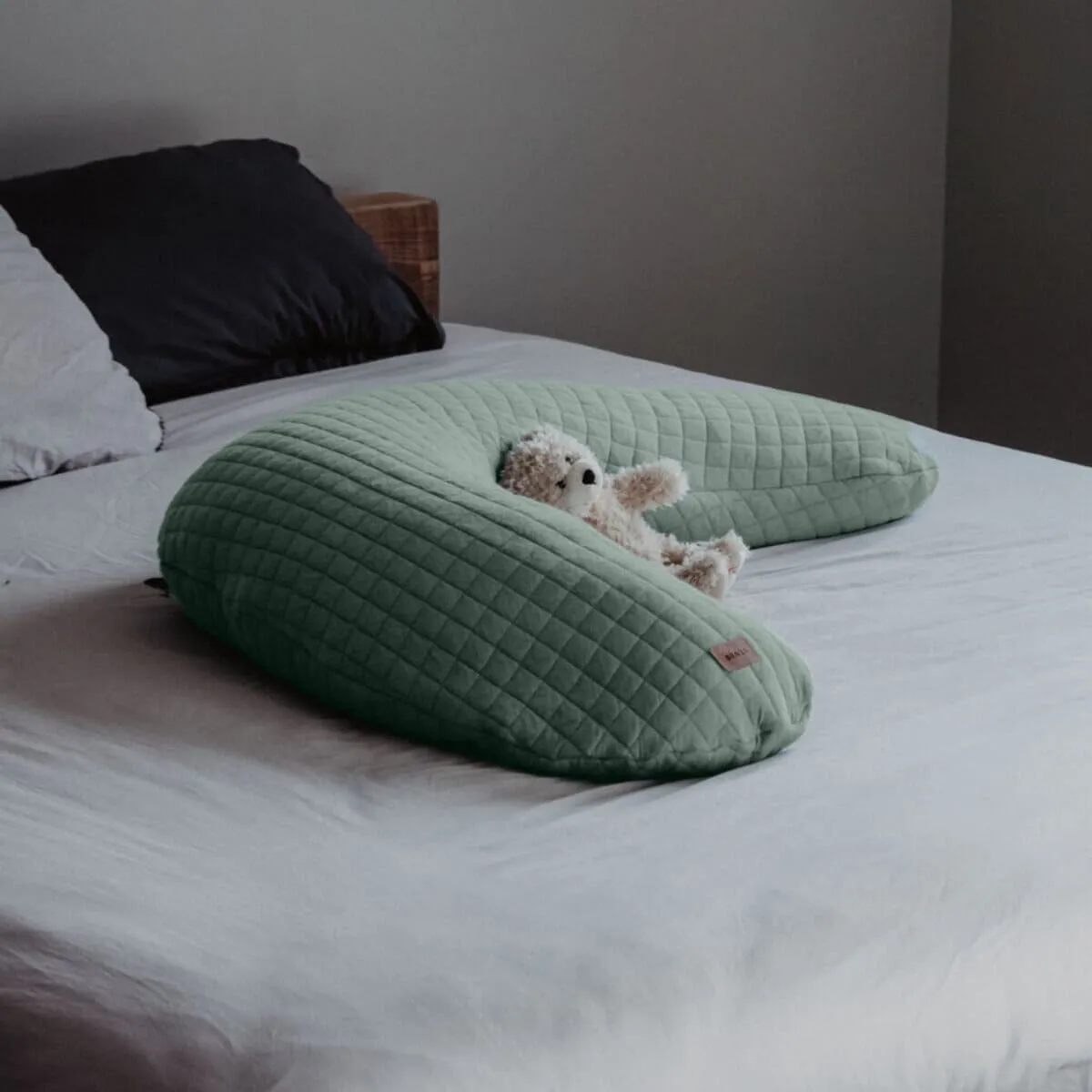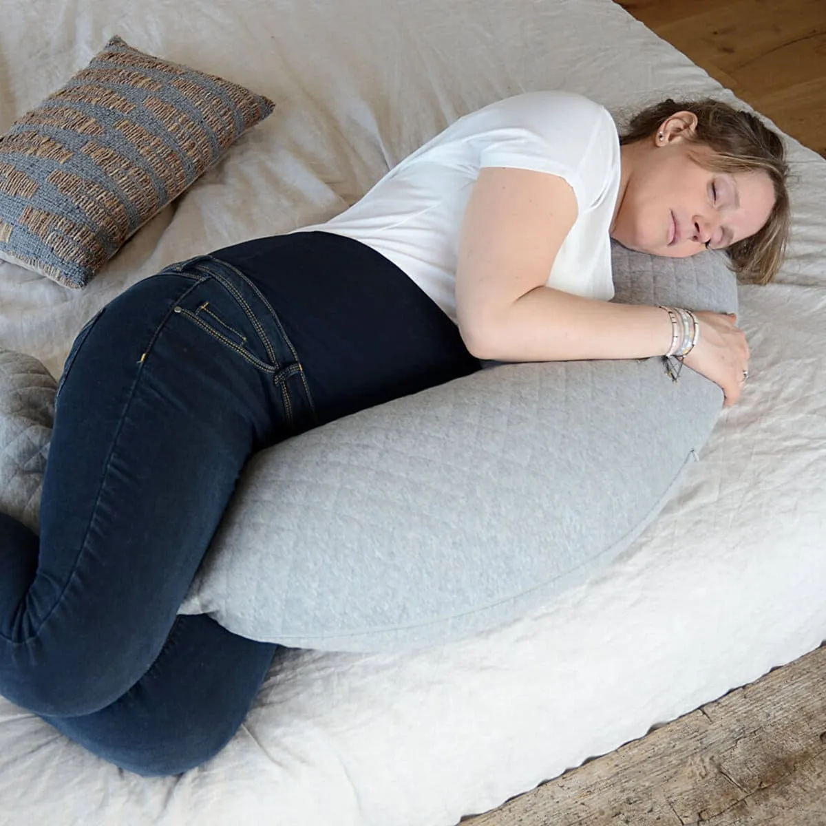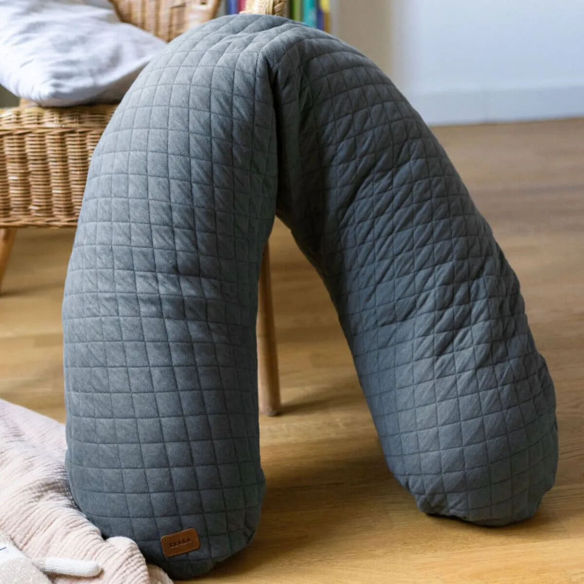 Big Flopsy идеально подходит для положения на боку, ее можно уложить между колен. В сложенном виде подушка поддерживает ноги, позволяя снять тяжесть и усталость.