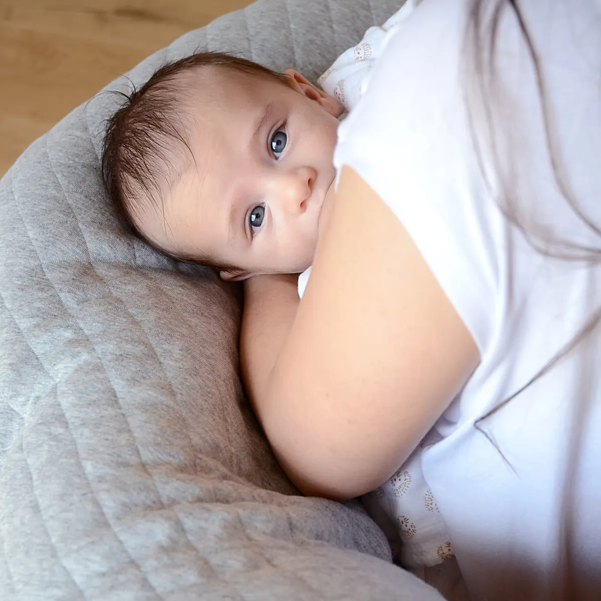 - Идеально подходит для кормления сидя и в положении на боку, также может укладываться и между колен;