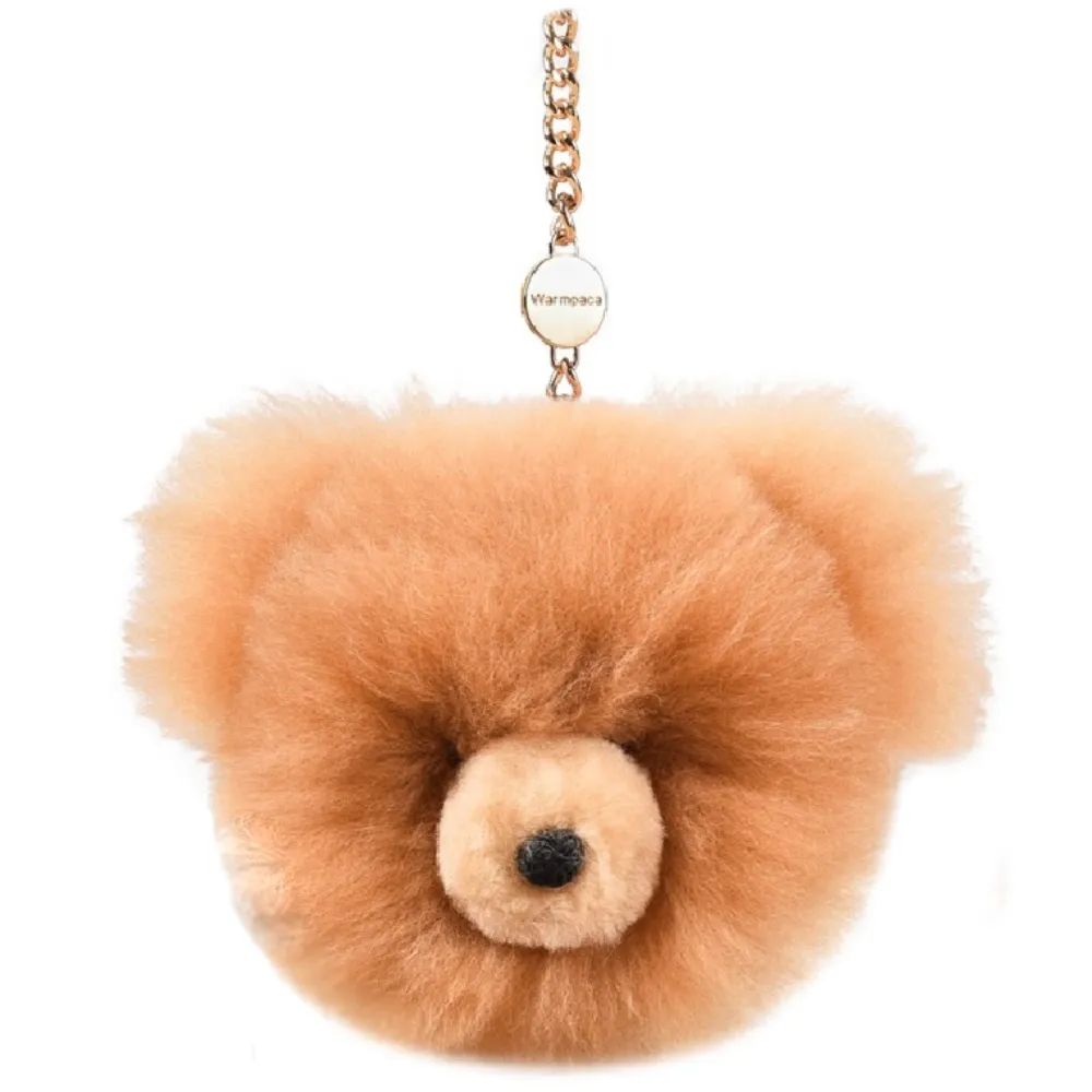 Подвеска-помпон мордочка медвежонка: изысканный стиль и эксклюзивное качество. Подвеска выполнена из натурального меха альпаки, что придает ей мягкость и теплоту. Золотистая цепочка подчеркивает стиль и элегантность подвески, делая ее отличным аксессуаром для сумки или ключей.