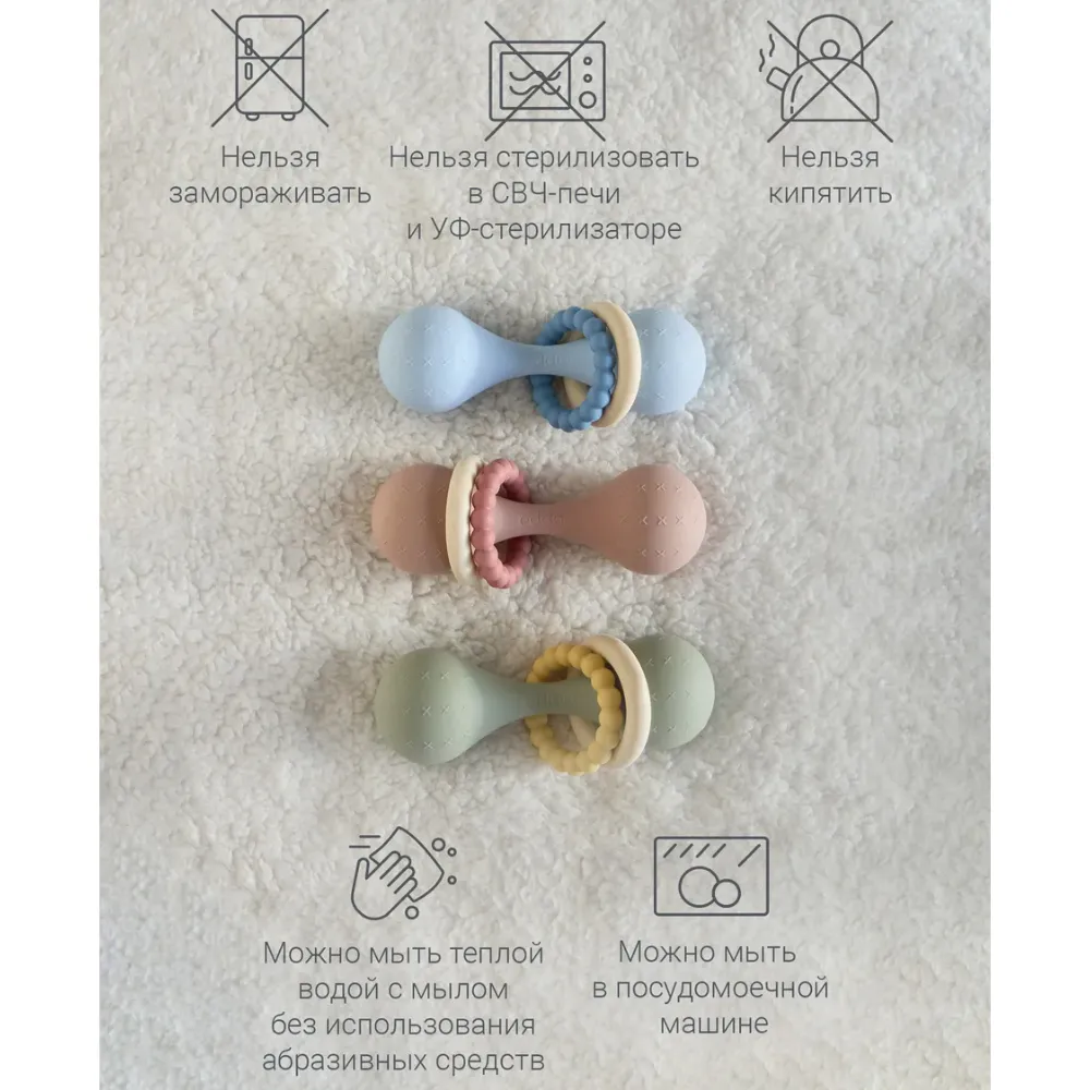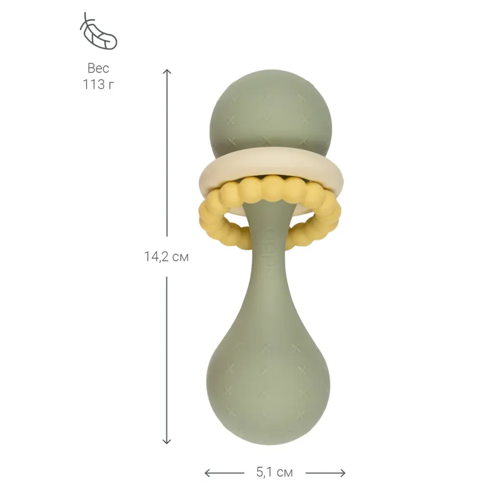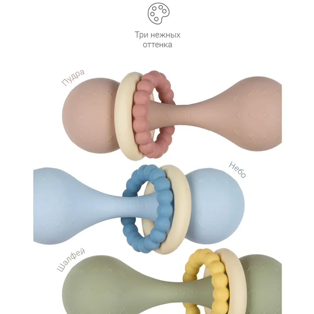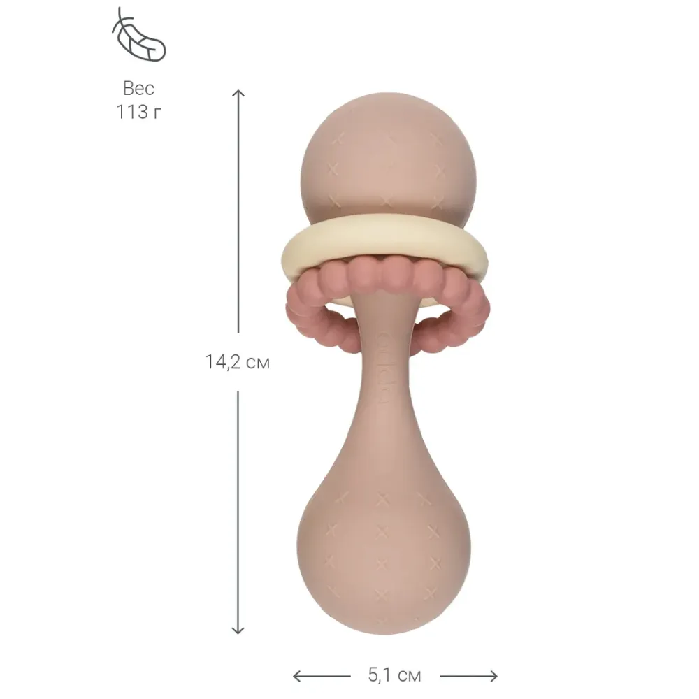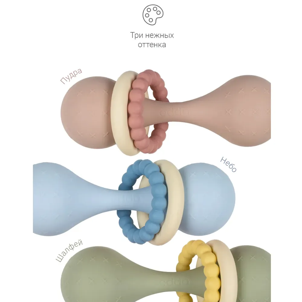 У лёгкой погремушки edda — эргономичная форма, которая идеально подходит для детских ладошек. Рельефная поверхность массирует дёсны при кусании, но не повреждает их, выполняя функцию прорезывателя. Игрушка тренирует сенсорное восприятие. На корпусе есть два дополнительных подвижных колечка для развития моторики. Погремушка из гипоаллергенного силикона издаёт успокаивающий звук и развивает ребенка через игру. Спокойные цвета игрушки гармонично впишутся в домашний интерьер.