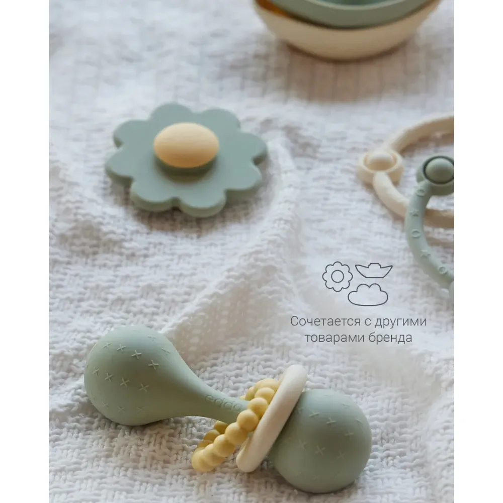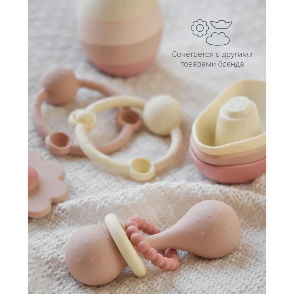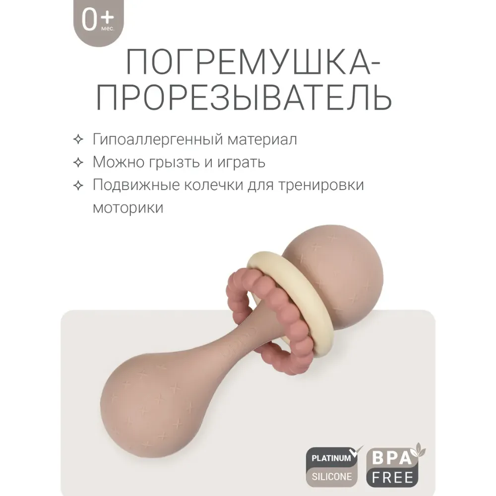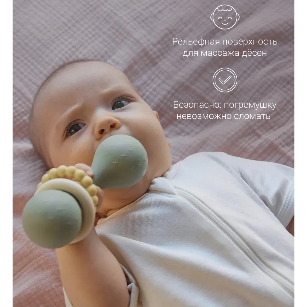 У лёгкой погремушки edda — эргономичная форма, которая идеально подходит для детских ладошек. Рельефная поверхность массирует дёсны при кусании, но не повреждает их, выполняя функцию прорезывателя. Игрушка тренирует сенсорное восприятие. На корпусе есть два дополнительных подвижных колечка для развития моторики. Погремушка из гипоаллергенного силикона издаёт успокаивающий звук и развивает ребенка через игру. Спокойные цвета игрушки гармонично впишутся в домашний интерьер.