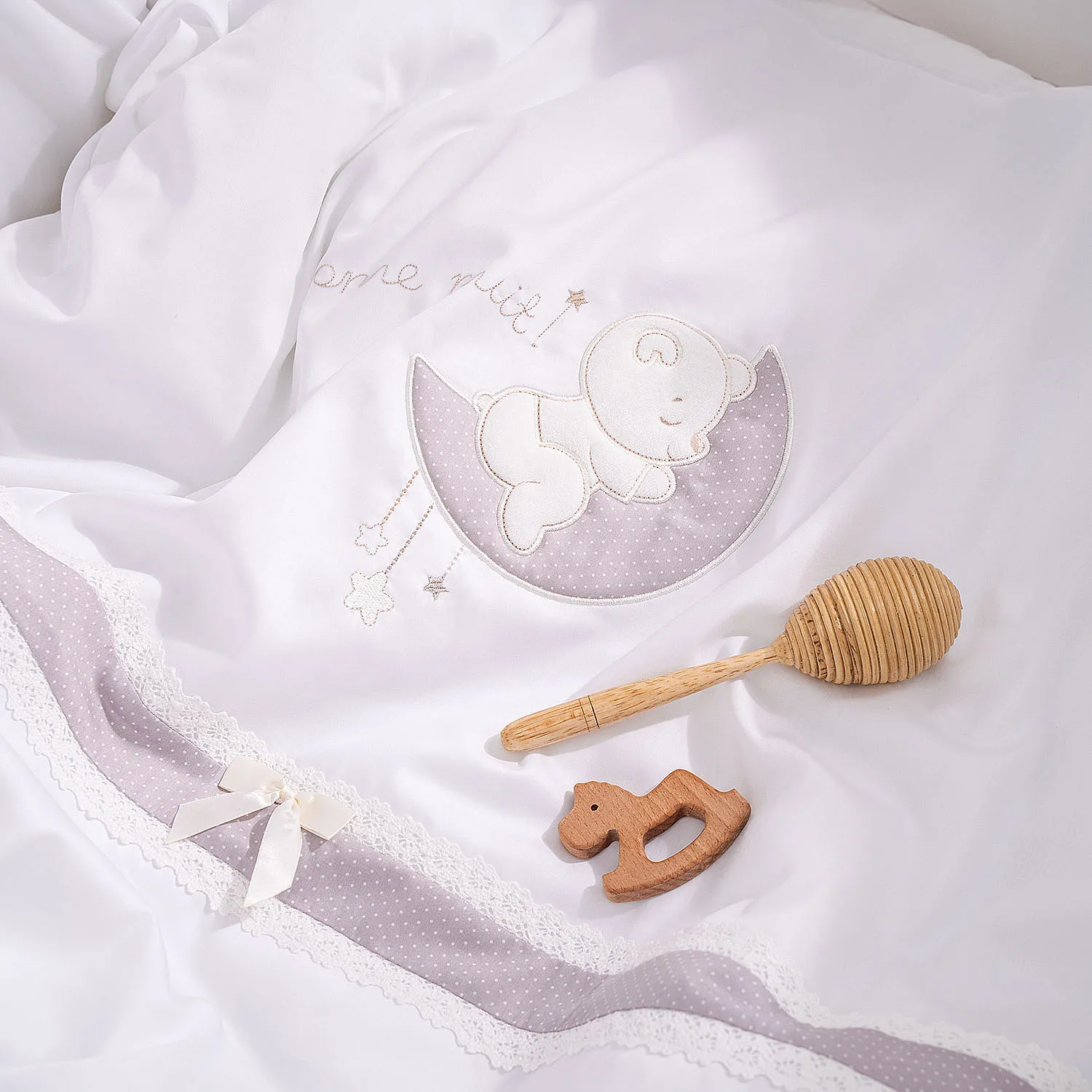 Комплект Bonne nuit Oval cоздан, чтобы подарить вашему малышу приятные сны, окружить его заботой и теплом домашнего уюта. Любое прикосновение к нежному сатину обеспечит приятные ощущения, а натуральные аппликации вызовут настоящий восторг и станут увлекательным открытием после пробуждения.