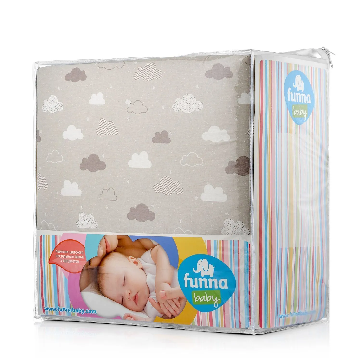 Постельное белье Funnababy Clouds 120x60 4 предмета + Наматрасник с резинками на углах 120х60 ГолдТекс бамбуковый