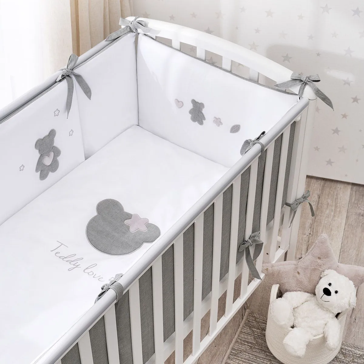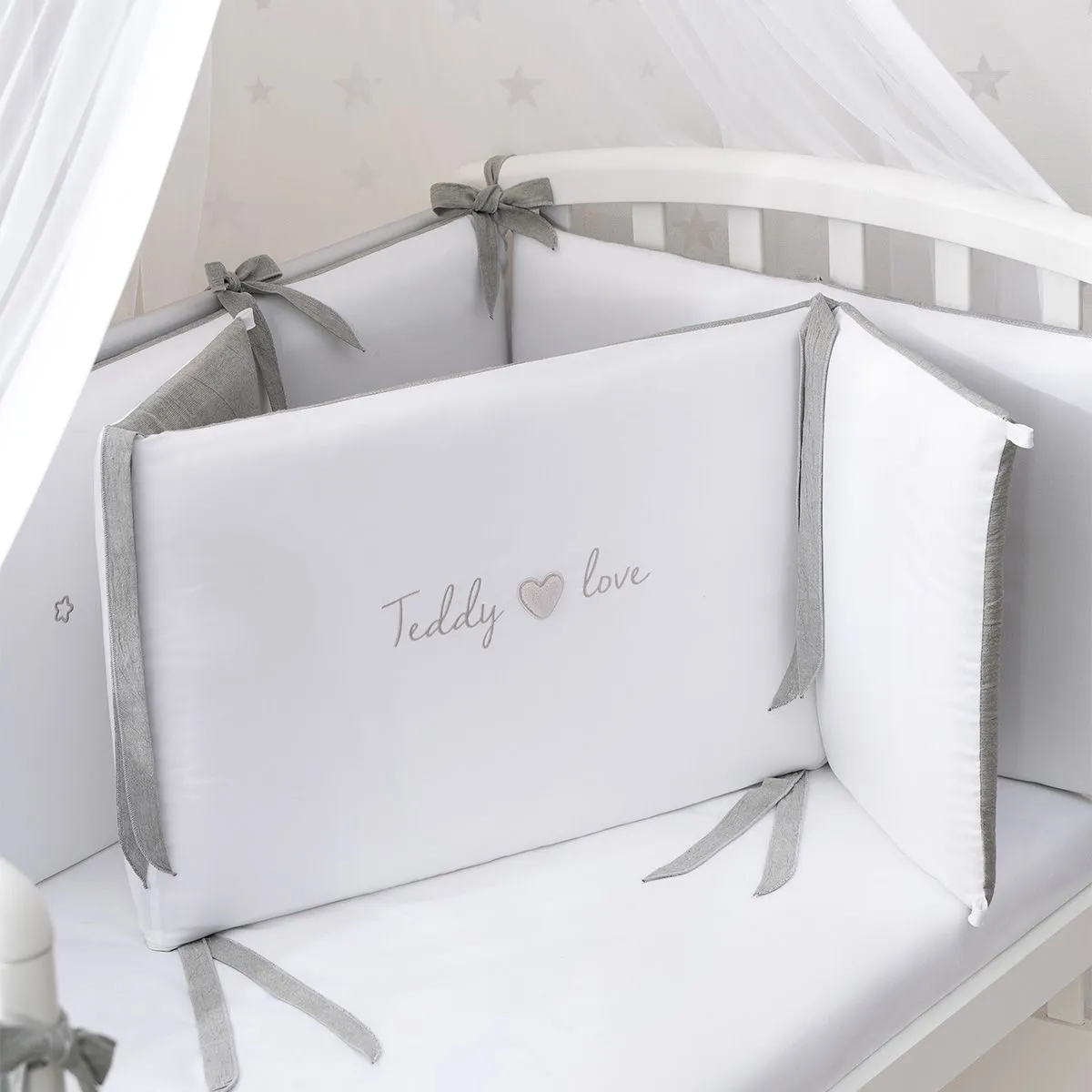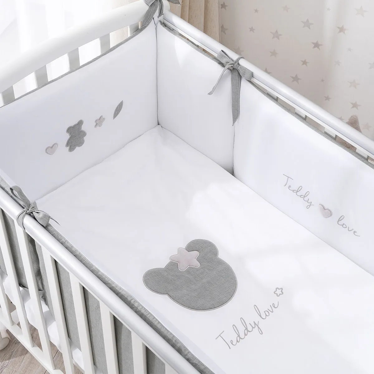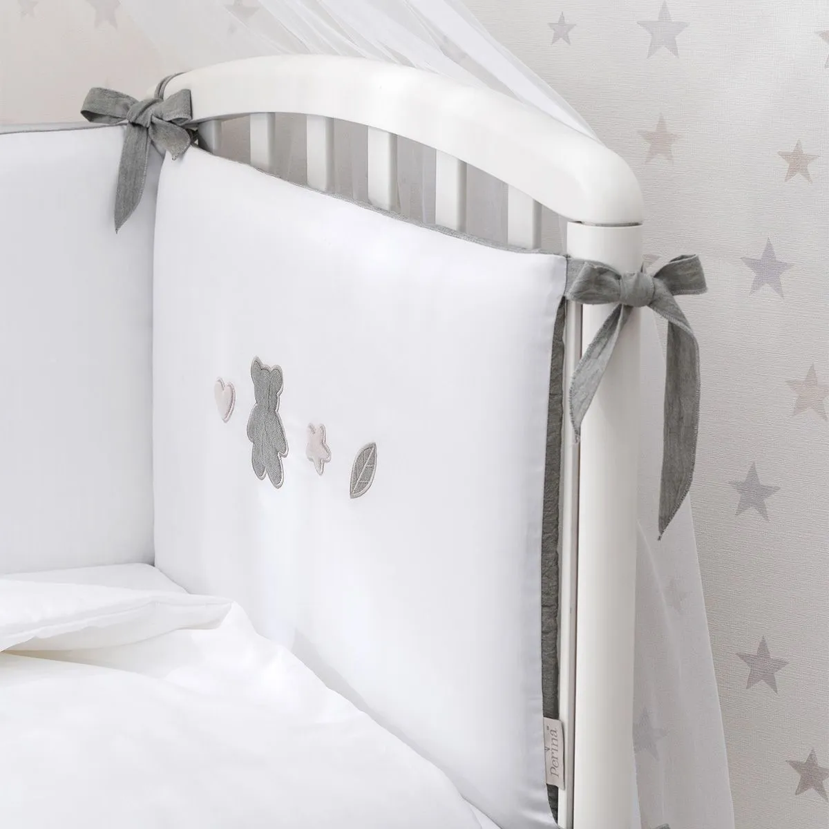 В пододеяльнике вместо традиционной прорези предусмотрена застежка-молния, которая аккуратно спрятана в нижней части. Обычный клапан после нескольких стирок растягивается, приобретает неряшливый вид, а застежка-молния помогает сохранить форму пододеяльника значительно дольше. Простыню на резинке легко заправлять, легко снимать. Она никогда не будет съеживаться во сне, даже если ребенок много ворочается, тем самым обеспечивая малышу больший комфорт, чем при использовании обычных простыней. Для дополнительного удобства бортики в кроватку сделаны из отдельных частей со съемным чехлом. Теперь вы легко можете стирать только внешнюю часть бортиков, не затрагивая внутреннее наполнение. Наполнитель Hollcon — экологически чистый, гипоаллергенный и легкий материал. Прекрасно сохраняет форму и надежно защищает малыша.