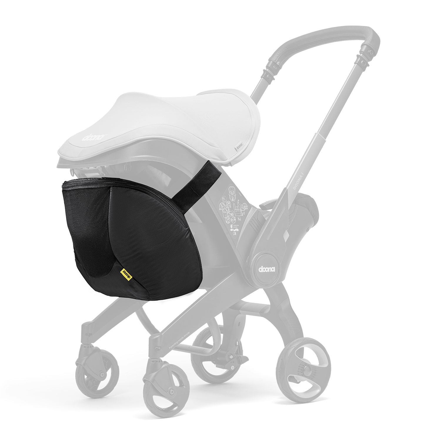 Подходит только для коляски Doona + и Doona I, легко крепится. Максимальная нагрузка — 3 кг. Сумка-отсек не предназначена для использования в машине.