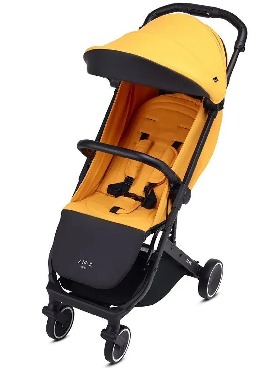 Air-X без проблем преодолевает дорожные неровности за счет двухуровневой амортизации колес. Для безопасности и удобства предусмотрены фиксация 5-точечными ремнями и съемный бампер. Глубокий капюшон из водоотталкивающей ткани полностью закрывает малыша от дождя, ветра и солнечных лучей. Подножка обеспечит дополнительный комфорт и безопасность на прогулке.