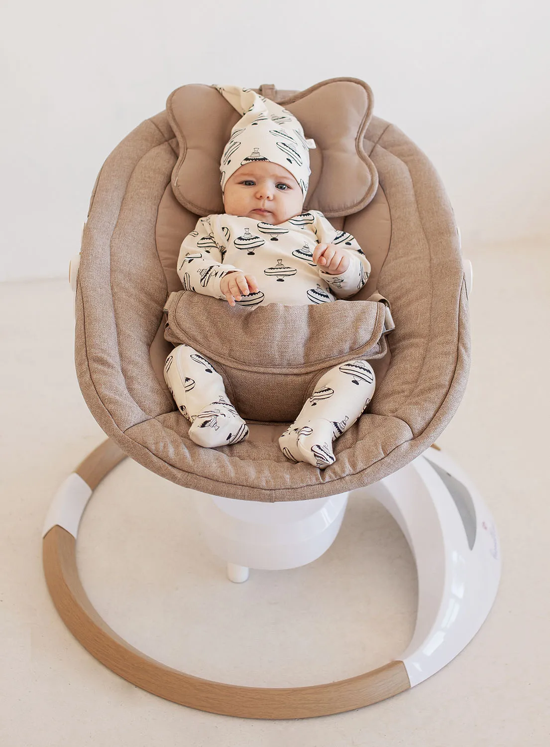 В первые месяцы жизни новорожденного мама уделяет очень много времени малышу, ведь он ещё крошечный и требует внимания, заботы и ухода. В суете будних дел иногда так сложно найти время на себя и немножечко отдохнуть. Качели детские Fiorellino созданы именно для маминого отдыха! Пока малыш наблюдает за подвесными игрушками под плавные покачивания и приятную музыку, у вас есть возможность выпить чашечку чаю, почитать любимую книгу или неспешно позавтракать.