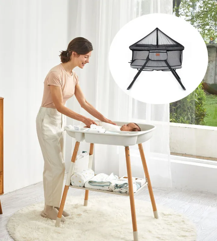 - Практичный промонабор Fiorellinoдля мамы и малыша : пеленальный стол с матрасиком + колыбель приставная