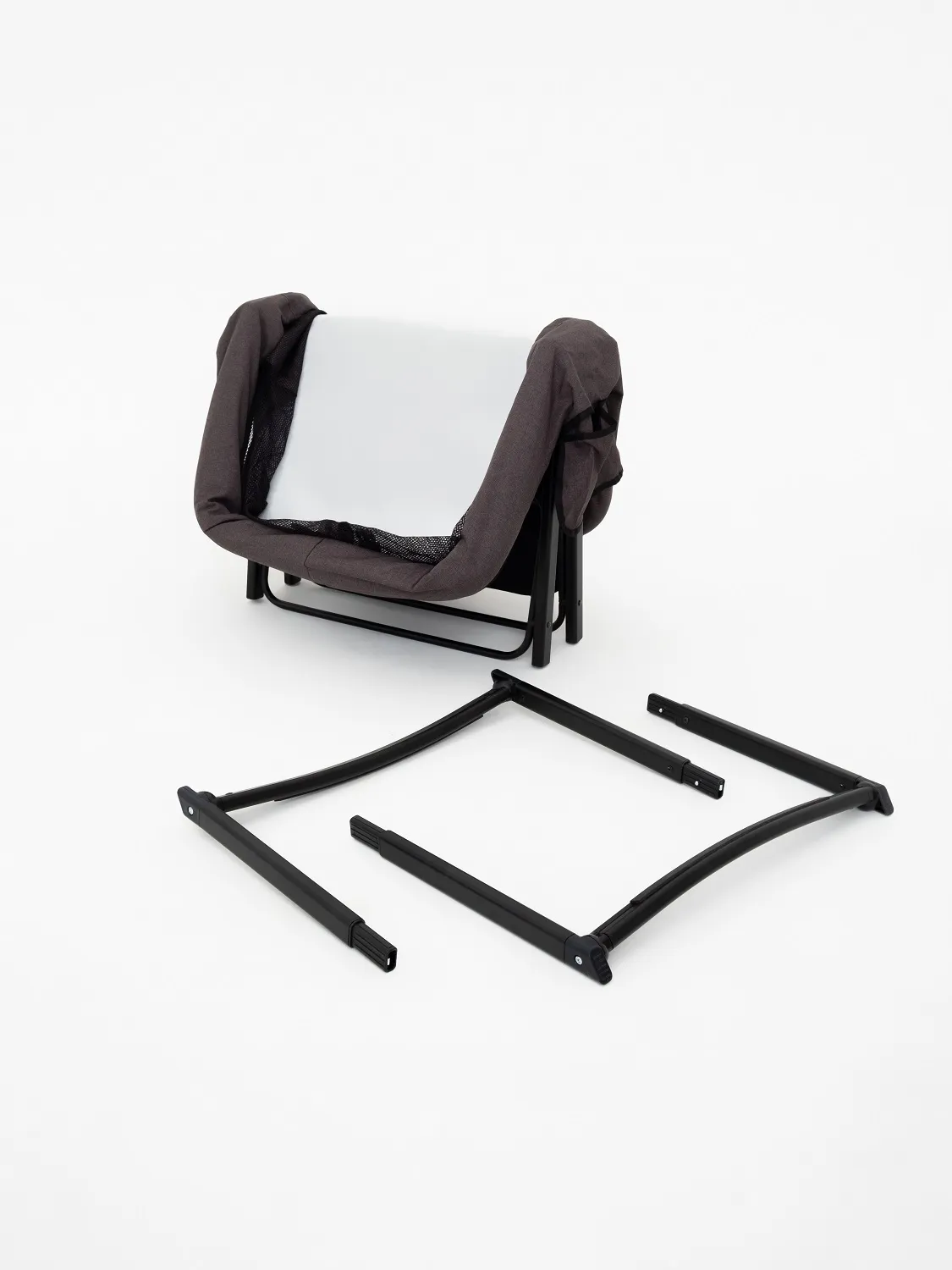 Продуманная складная конструкция понравится тем, кто любит путешествовать. Сложите колыбельку и возьмите ее с собой на дачу или в гости к бабушке с дедушкой. Для большей компактности можно снять металлические полозья.