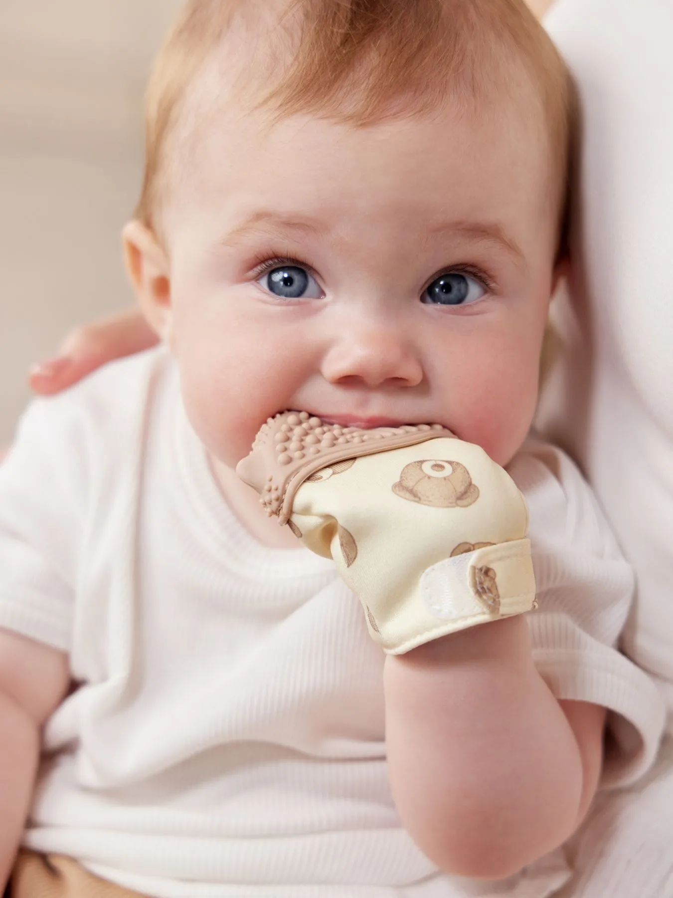 Прорезыватель-рукавичка Happy Baby поможет отвлечь малыша в неприятные моменты периода прорезывания зубов. Мягкая тканая часть не стесняет движение пальчиков, не создает дискомфорт или неприятные ощущения. Верхняя часть рукавички — силикон: фактурная поверхность эффективно массирует десны малыша. Малыш не выронит прорезыватель из рук благодаря надежной липучке в основании кисти. Уникальный дизайн Happy Baby придется по души родителям и будет приятен ребенку.