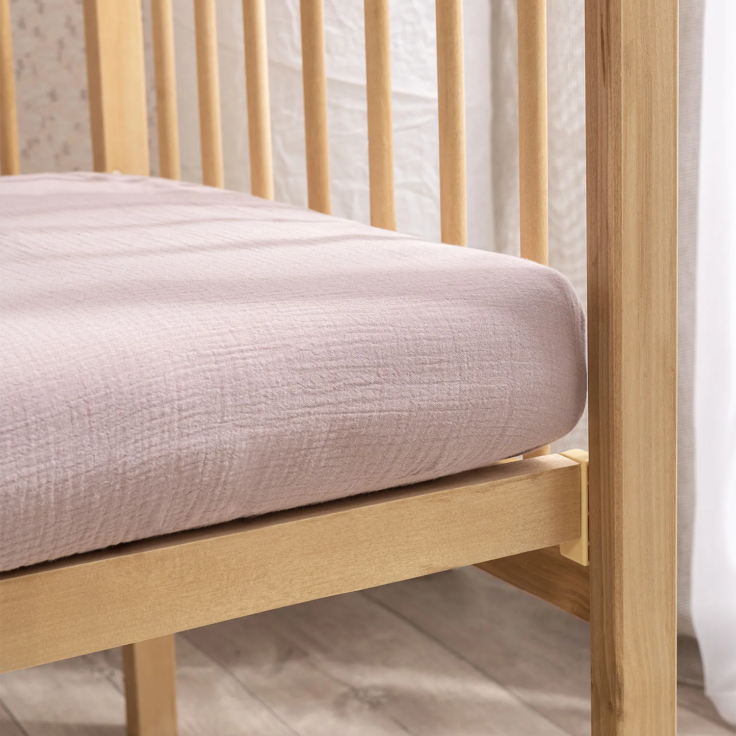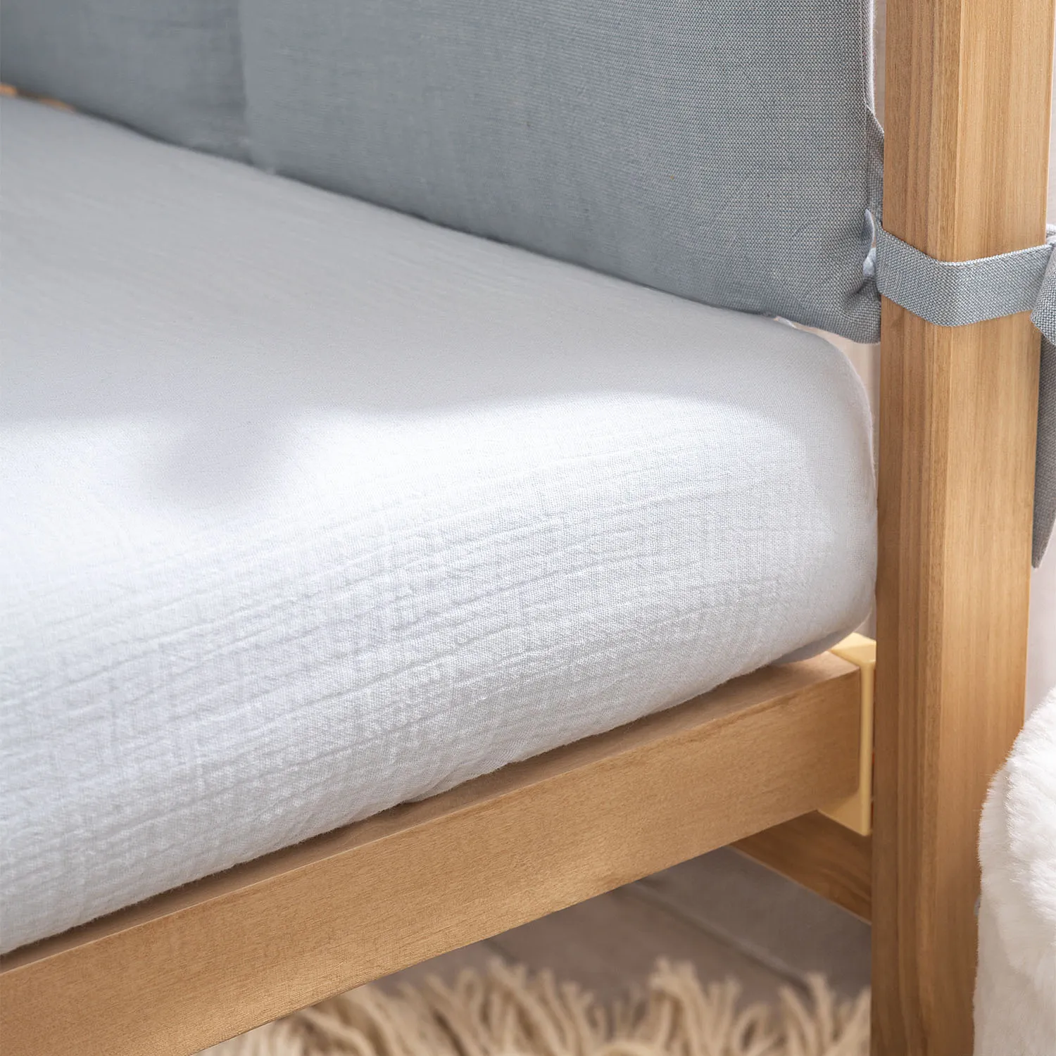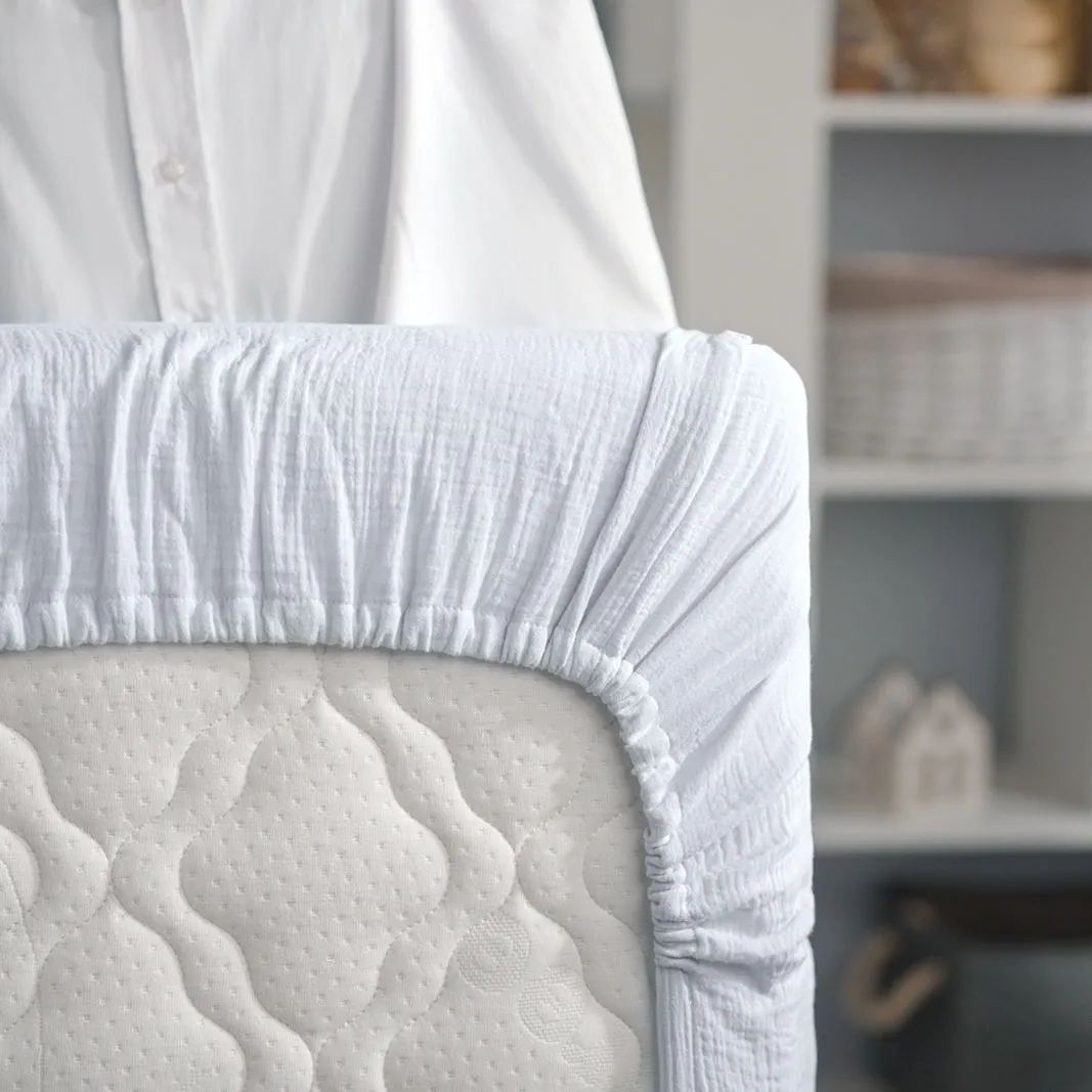 Муслиновая натяжная простыня на резинке — красивое и практичное дополнение к вашему постельному комплекту. Натуральный хлопок экологичен и безопасен для ребенка, простыня деликатно касается кожи малыша нежной мягкой поверхностью.