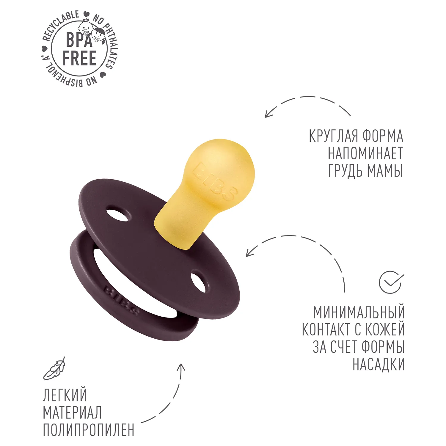 Пустышка, имитирующая грудь: разработана таким образом, чтобы максимально точно повторять естественную форму и движение соска матери во время грудного вскармливания, помогая младенцам, находящимся на грудном вскармливании, найти привычное положение.