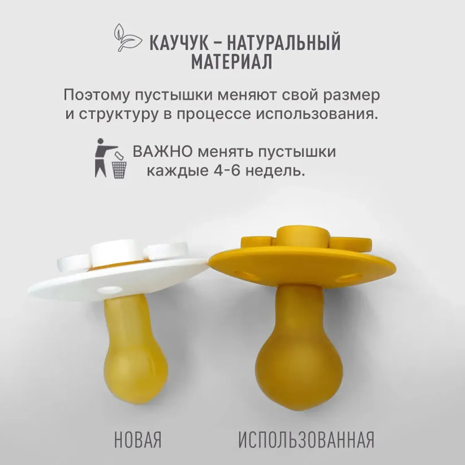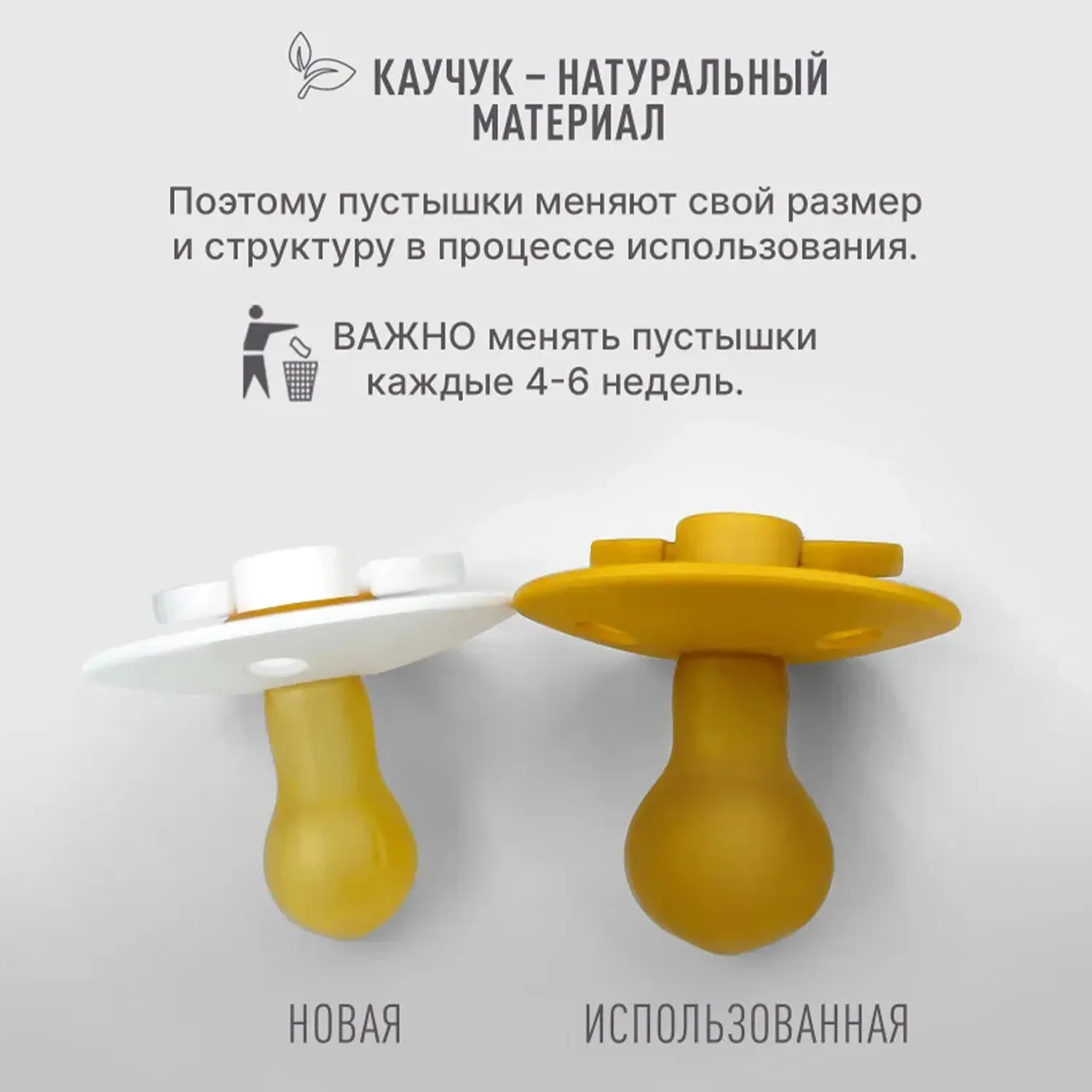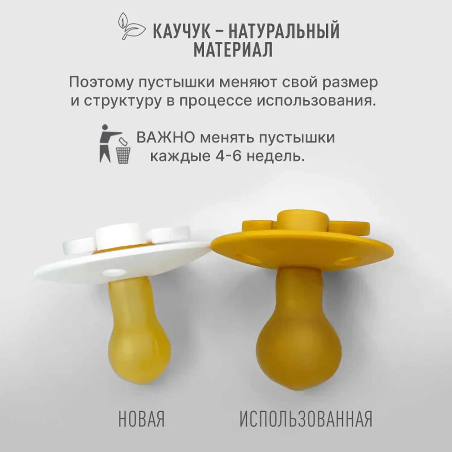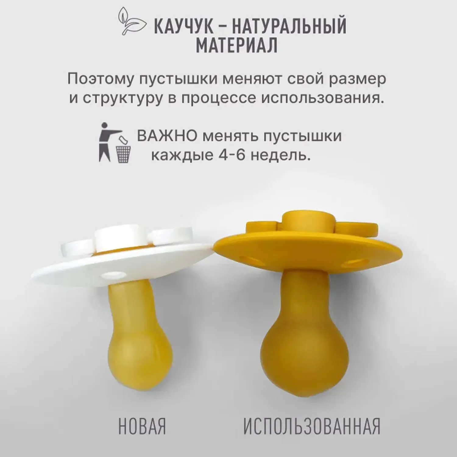 Мягкость, как у кожи: пустышка изготовлена из натурального каучукового латекса и очень похожа на кожу по теплоте и мягкости, что обеспечивает приятные и естественные ощущения.