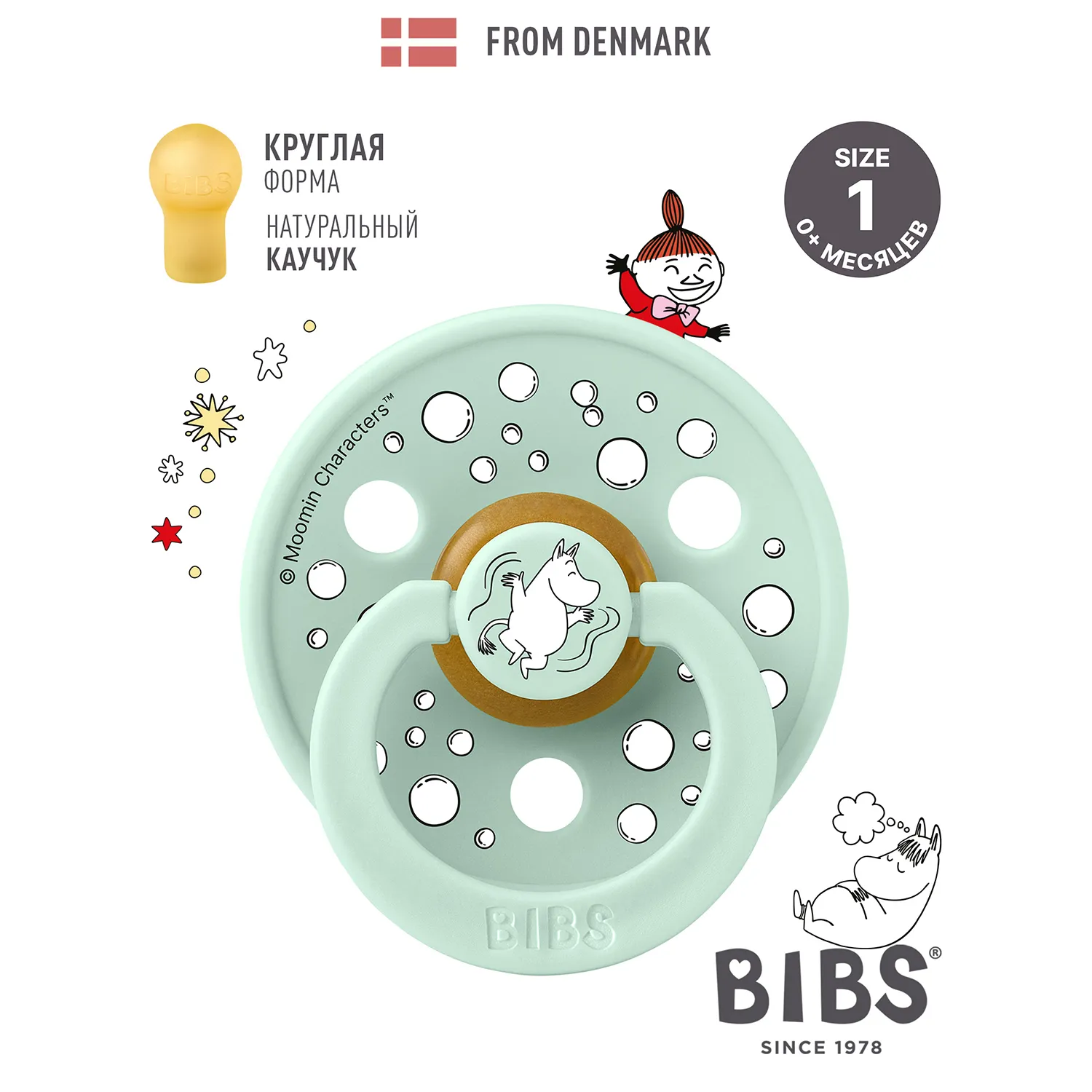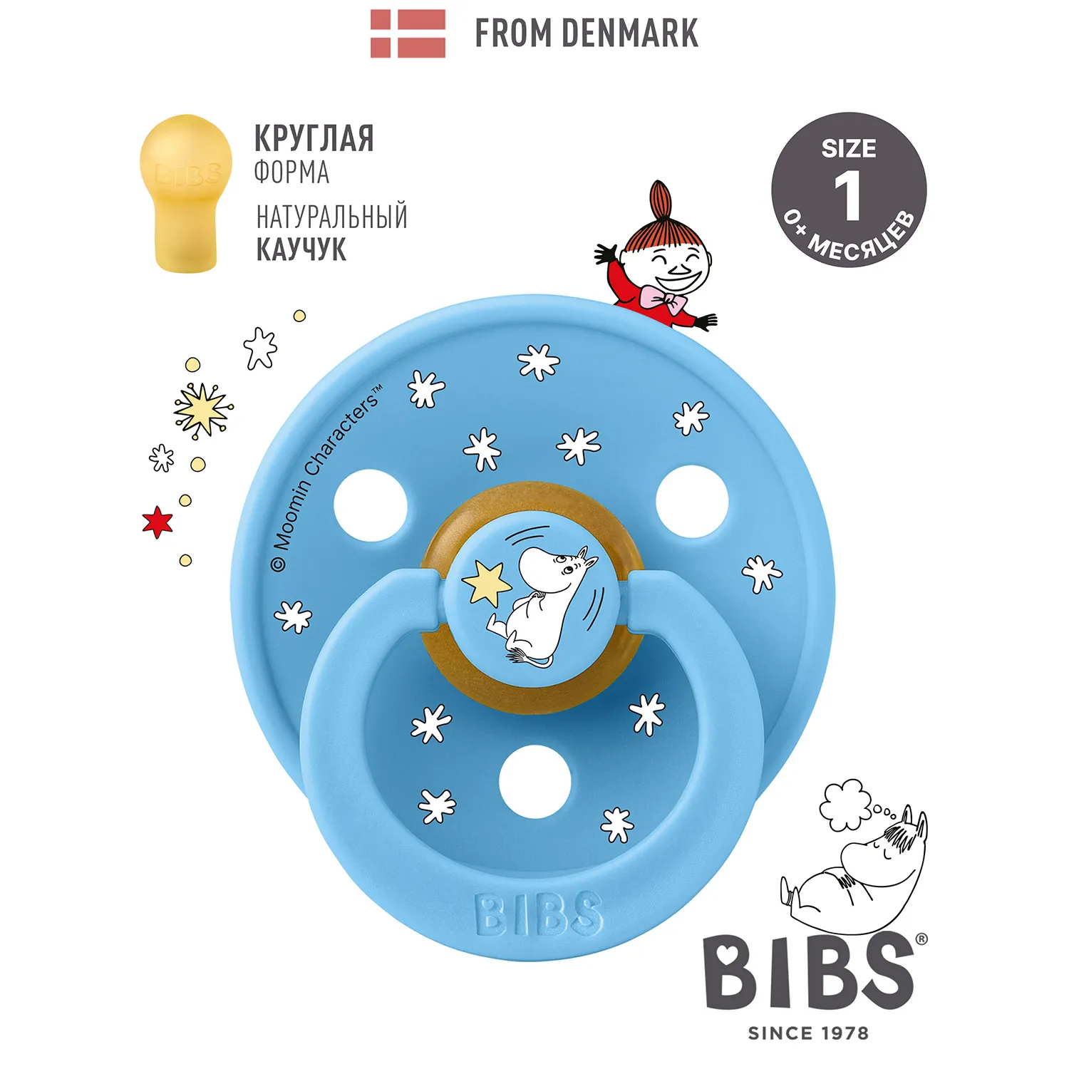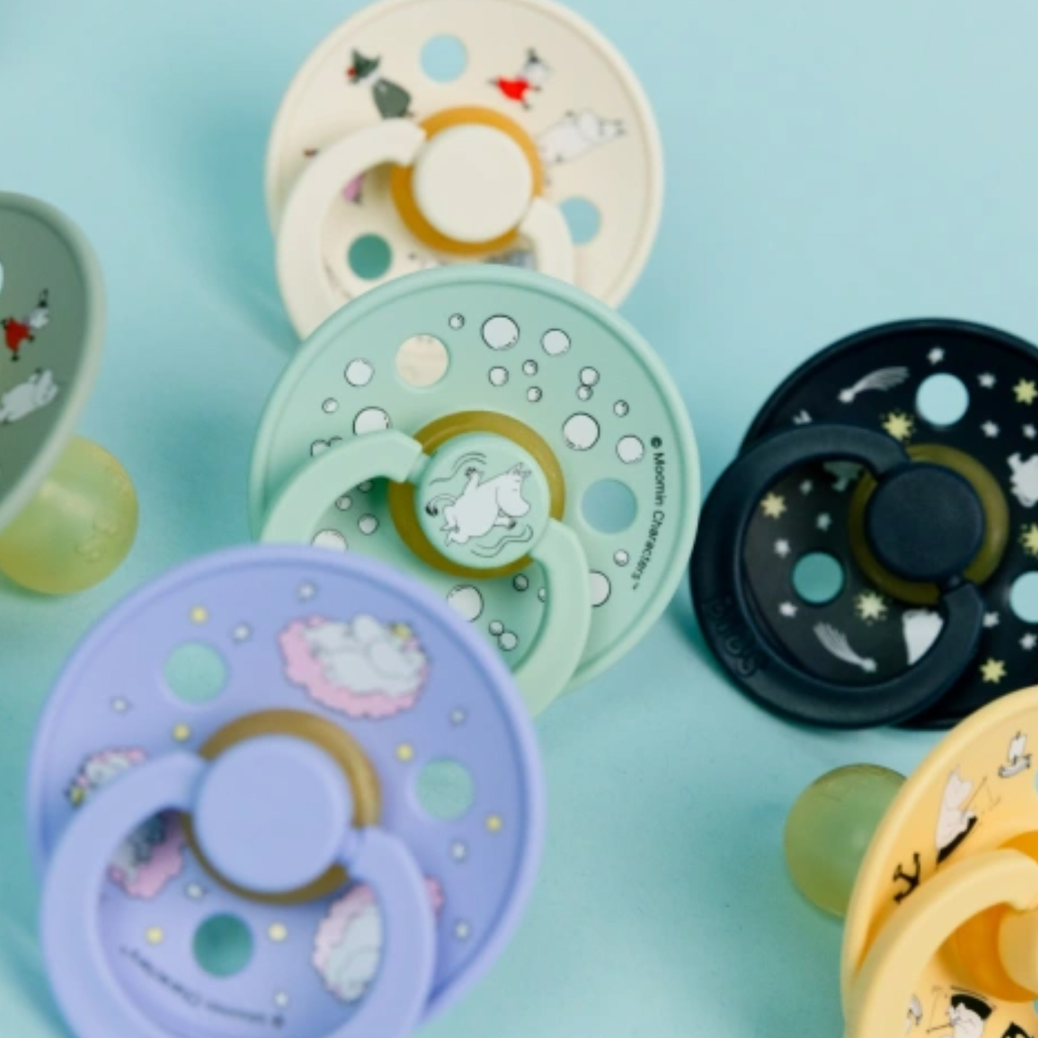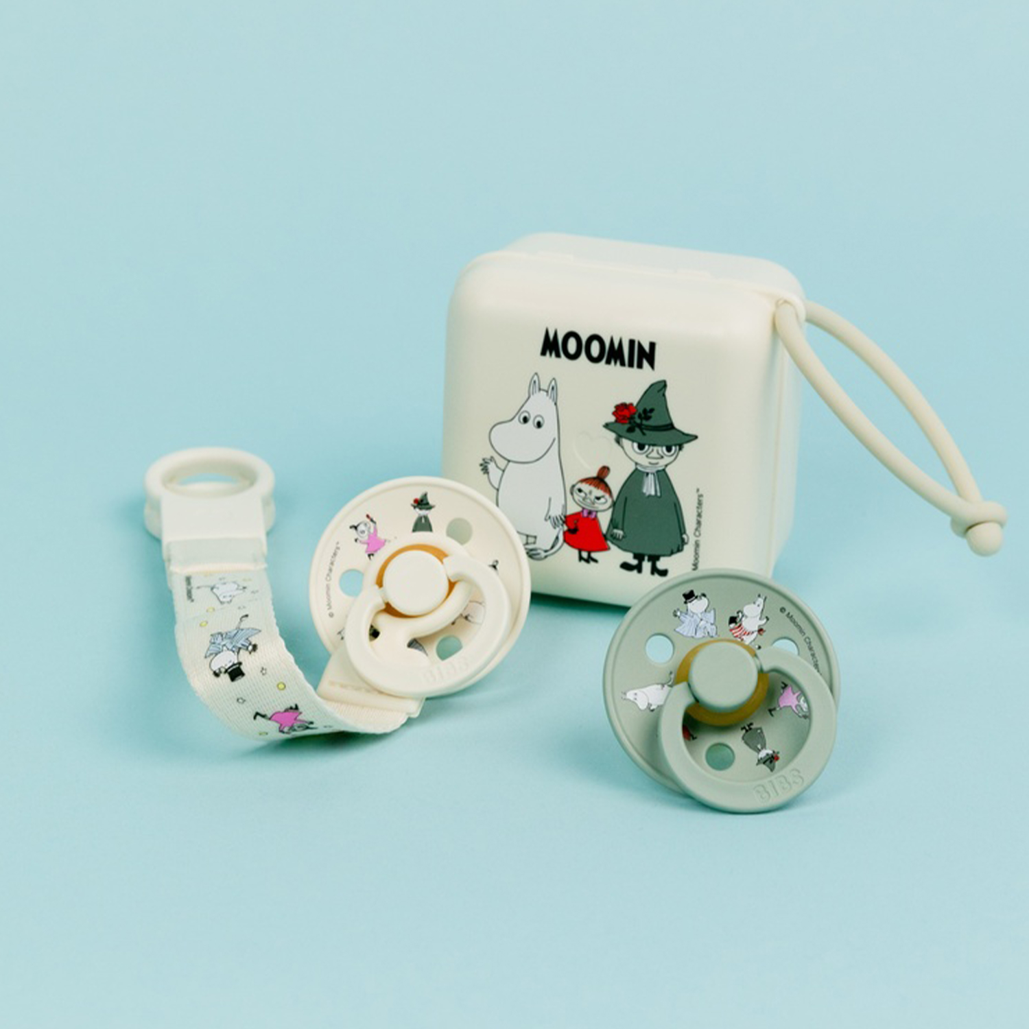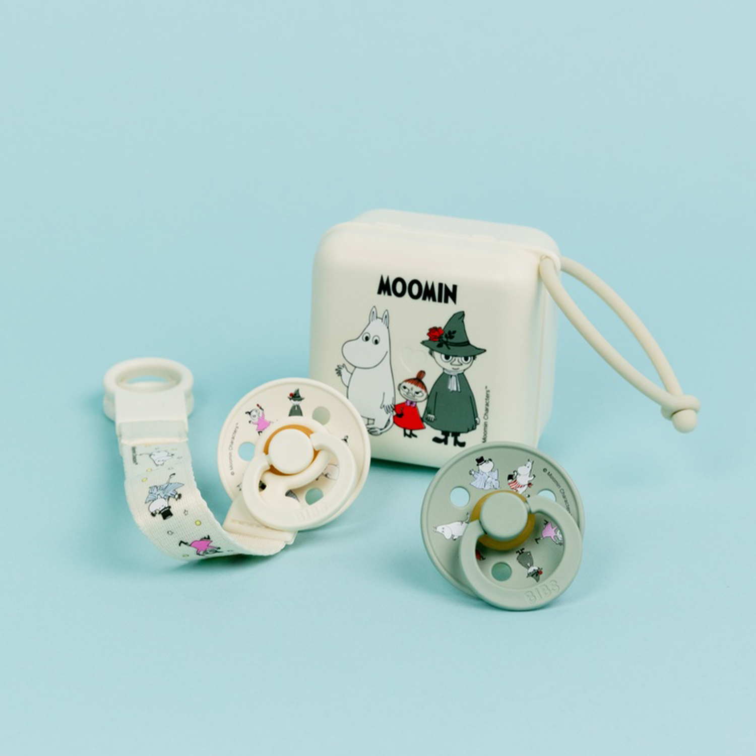 Знаменитая пустышка BIBS Colour приобретает игривый образ муми-тролля в рамках коллекции BIBS X MOOMIN. Эта коллекция с любимыми персонажами из вселенной муми-троллей создана для того, чтобы вызывать улыбки, успокаивать малышей и добавлять волшебства в повседневную жизнь родителей.