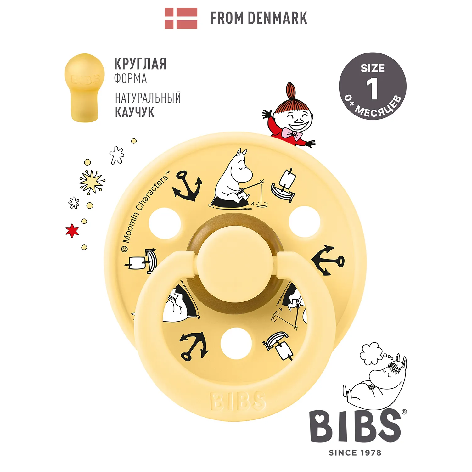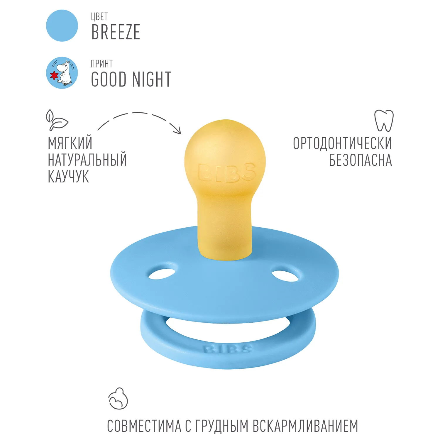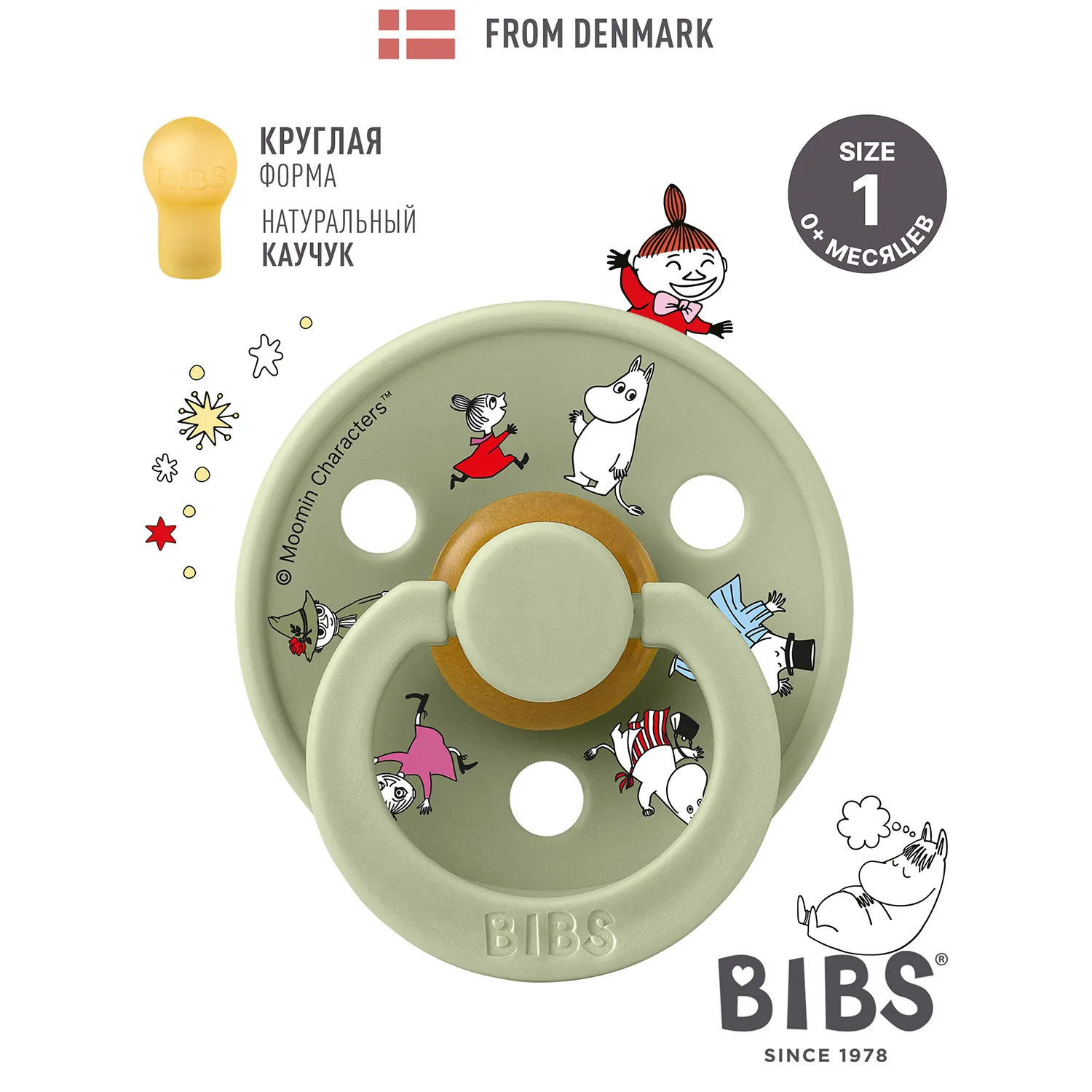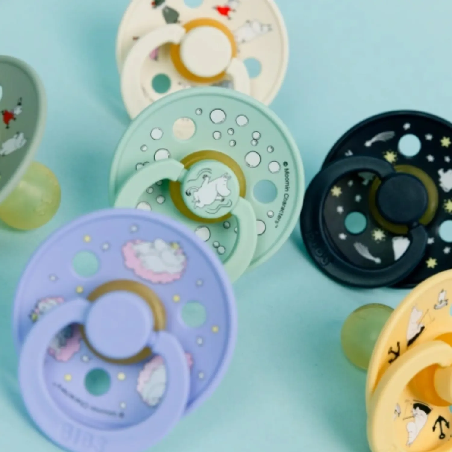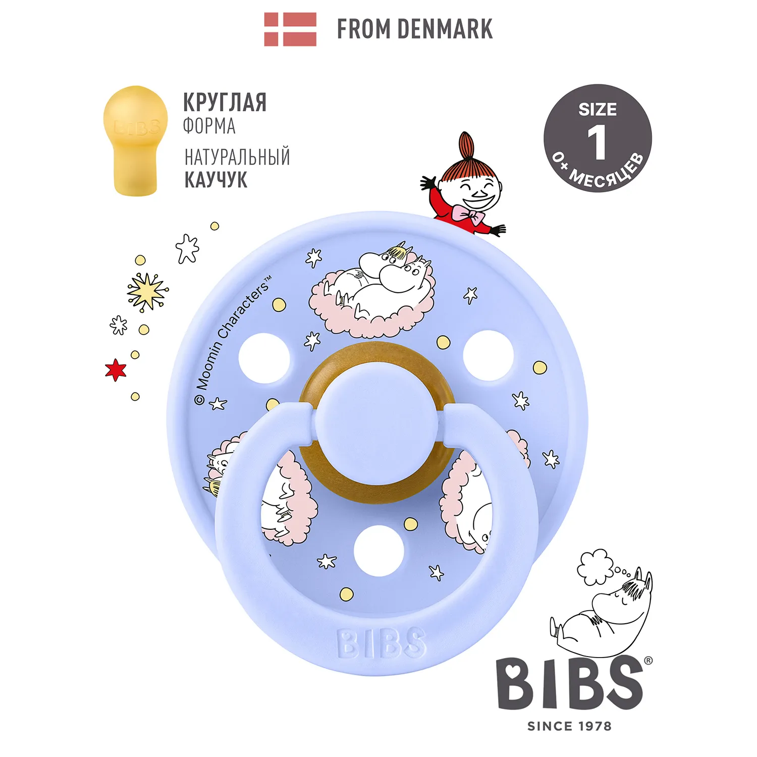 Знаменитая пустышка BIBS Colour приобретает игривый образ муми-тролля в рамках коллекции BIBS X MOOMIN. Эта коллекция с любимыми персонажами из вселенной муми-троллей создана для того, чтобы вызывать улыбки, успокаивать малышей и добавлять волшебства в повседневную жизнь родителей.