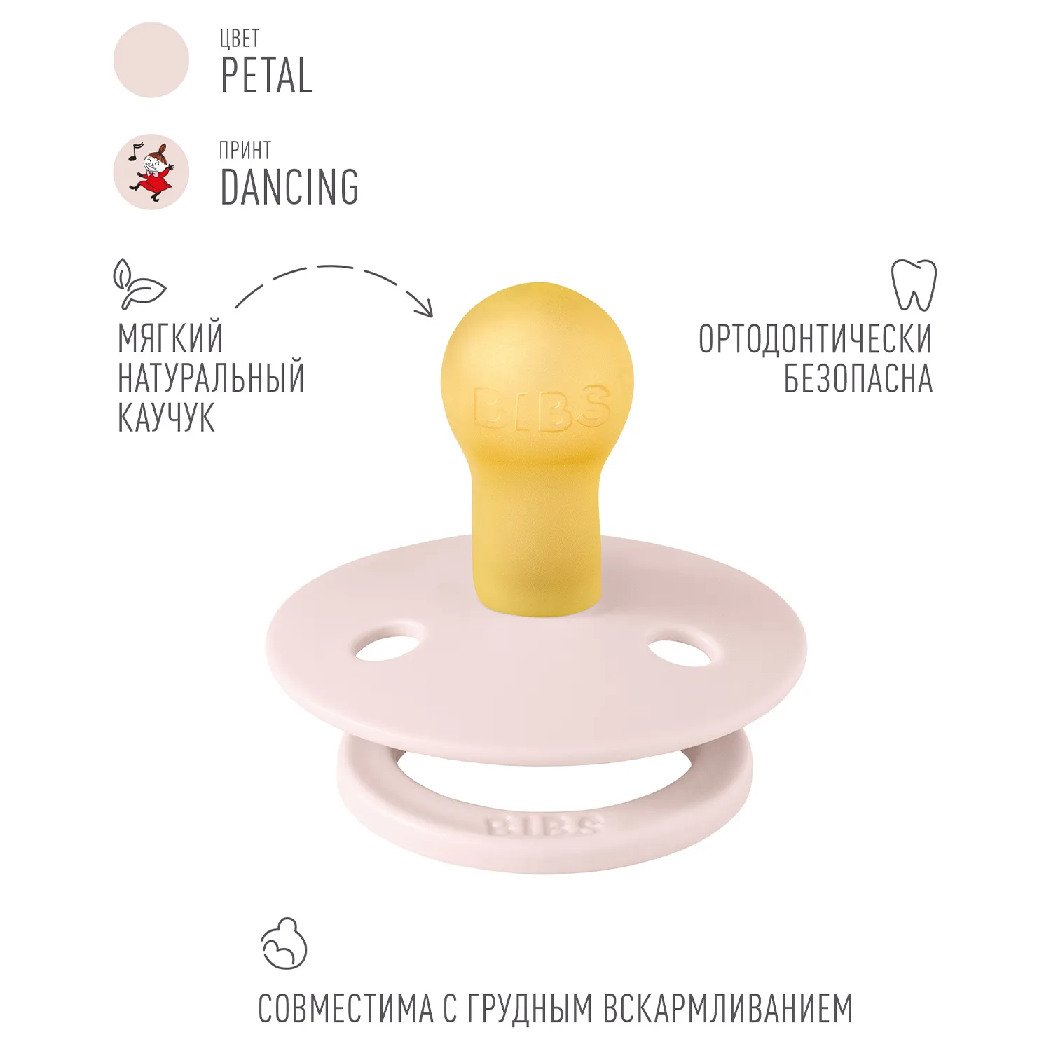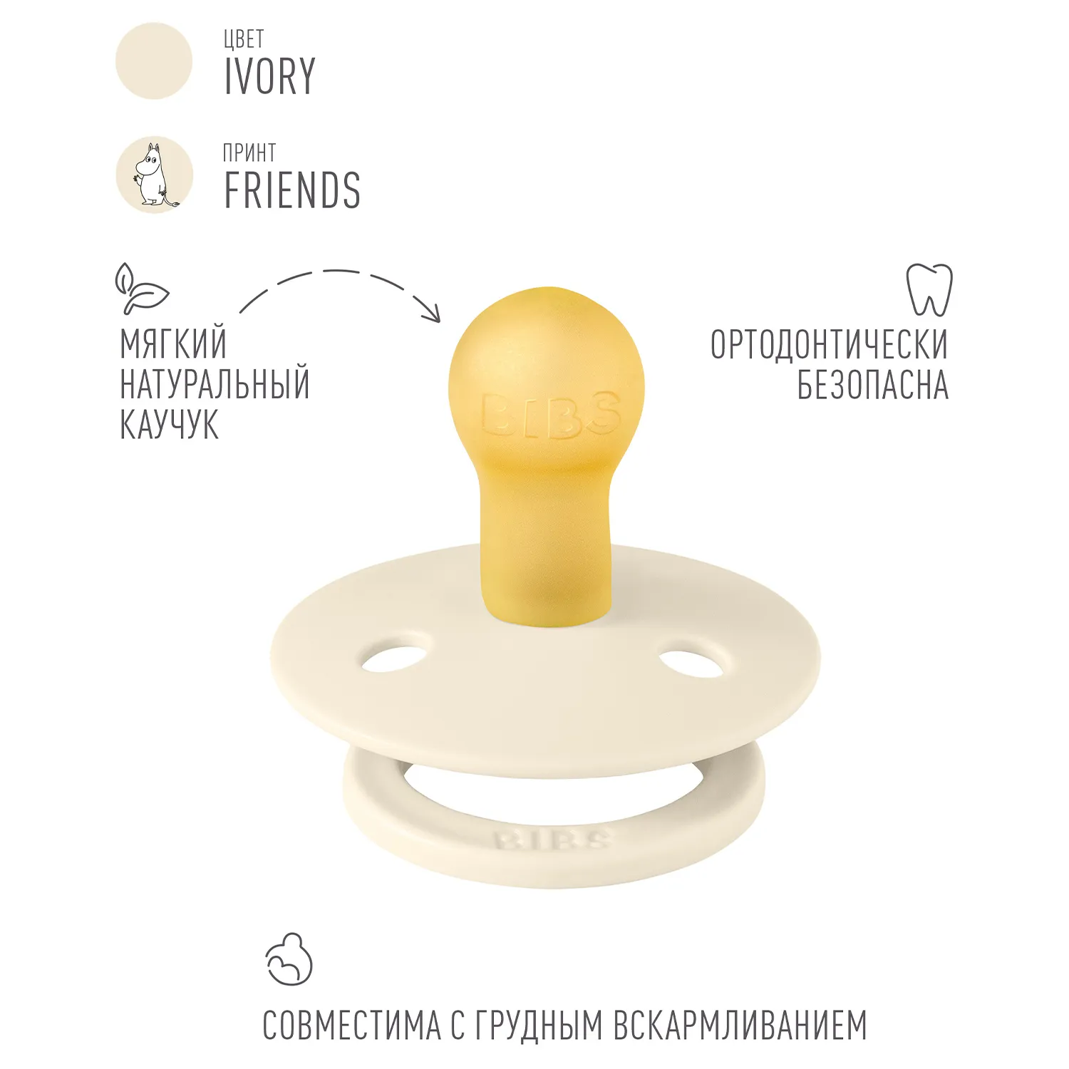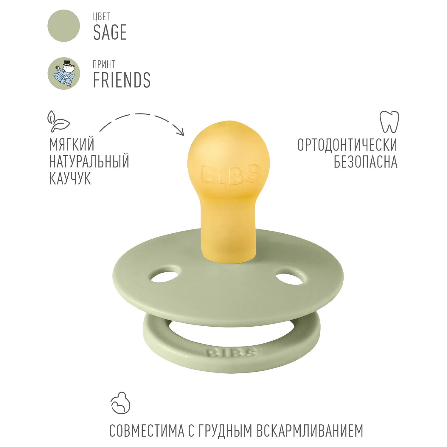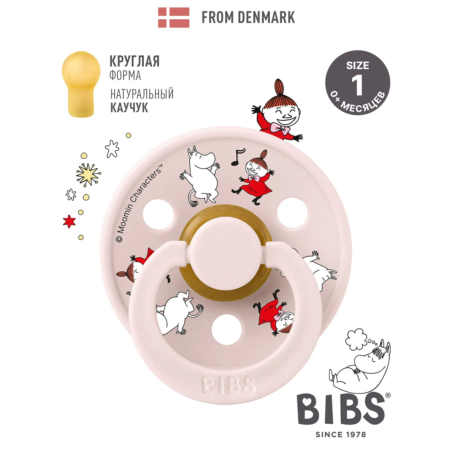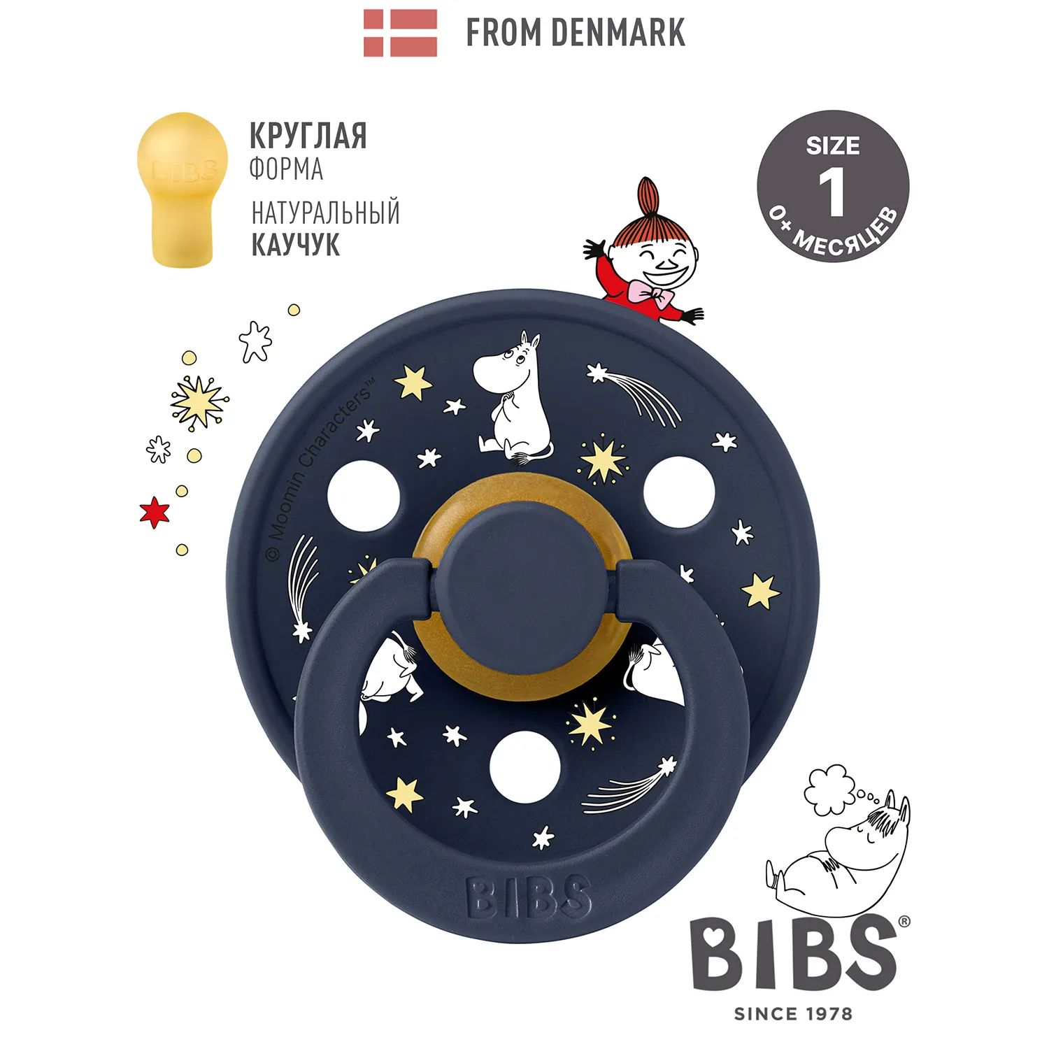 Знаменитая пустышка BIBS Colour приобретает игривый образ муми-тролля в рамках коллекции BIBS X MOOMIN. Эта коллекция с любимыми персонажами из вселенной муми-троллей создана для того, чтобы вызывать улыбки, успокаивать малышей и добавлять волшебства в повседневную жизнь родителей.