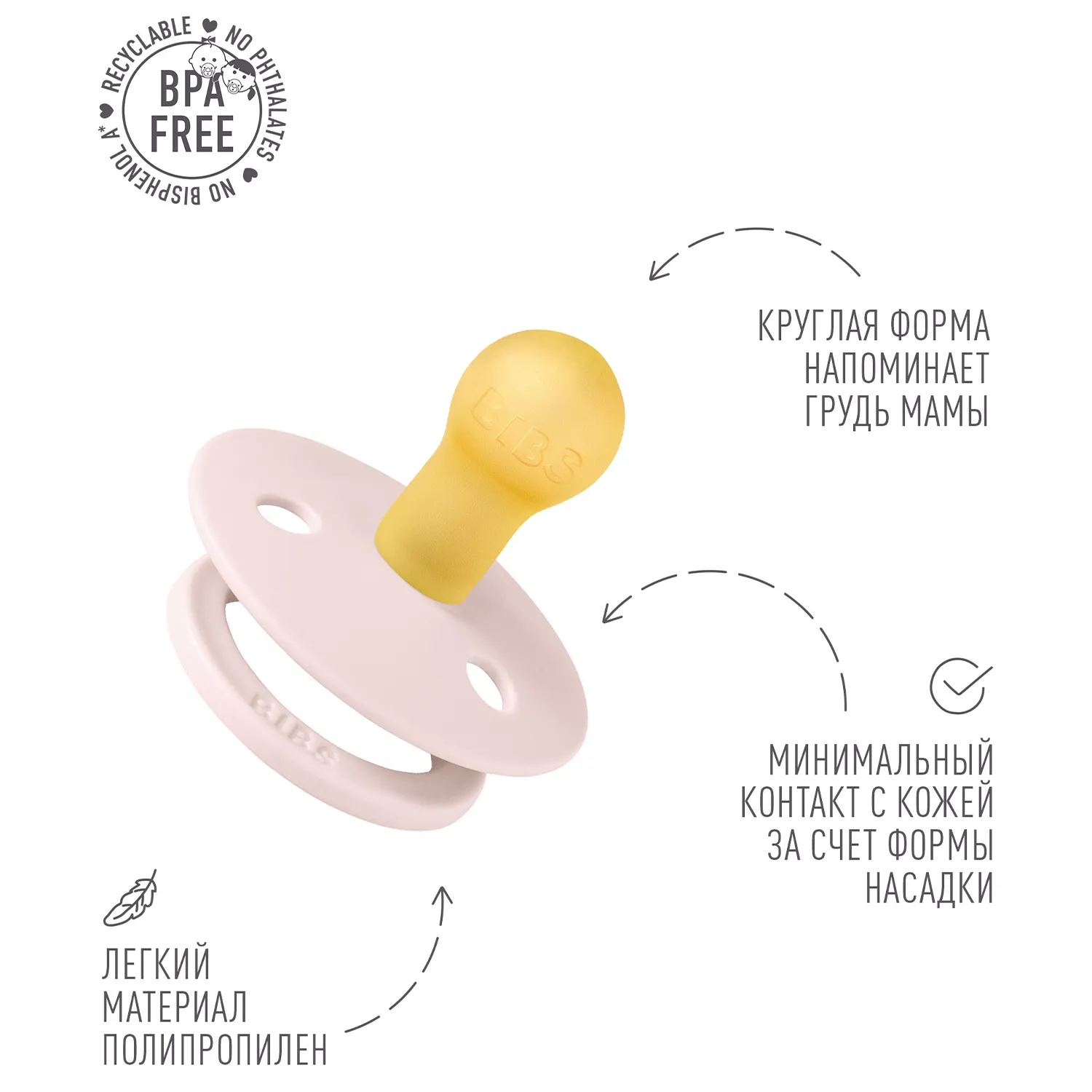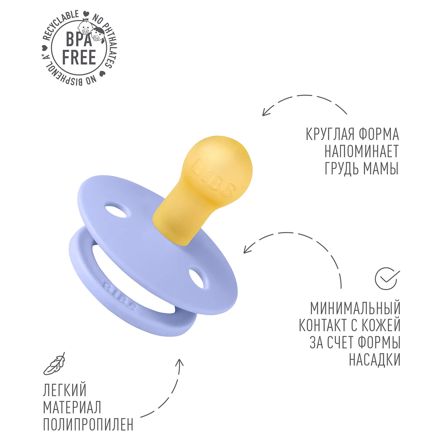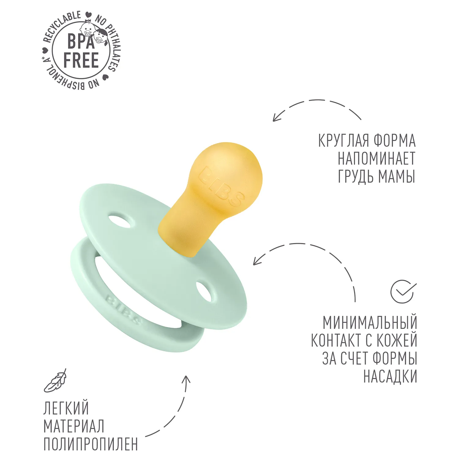 Пустышка, имитирующая грудь: разработана таким образом, чтобы максимально точно повторять естественную форму и движение соска матери во время грудного вскармливания, помогая младенцам, находящимся на грудном вскармливании, найти привычное положение.