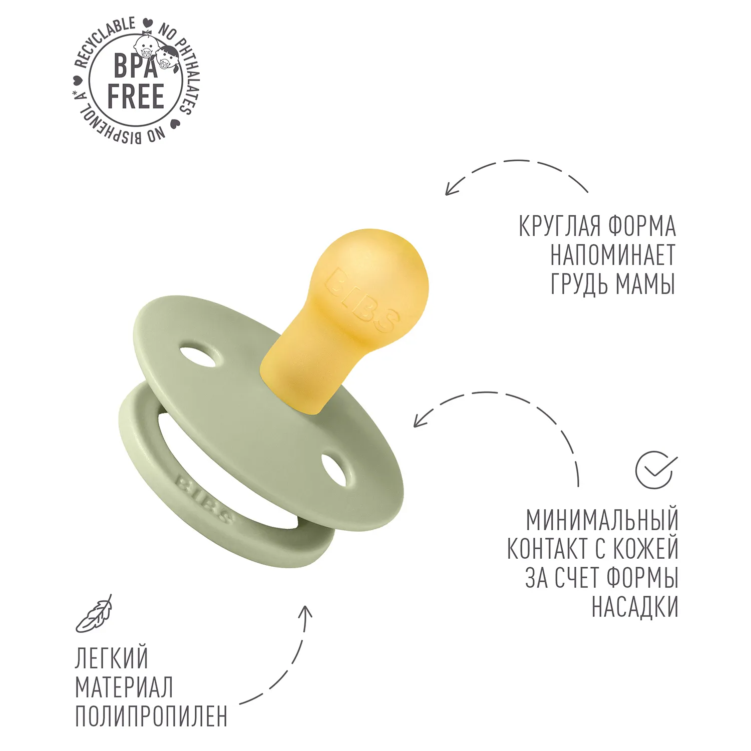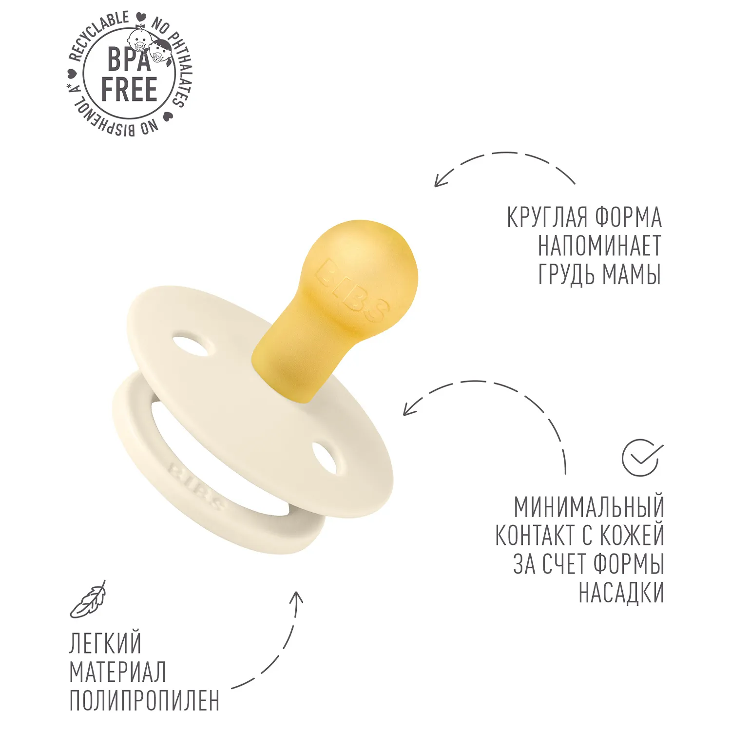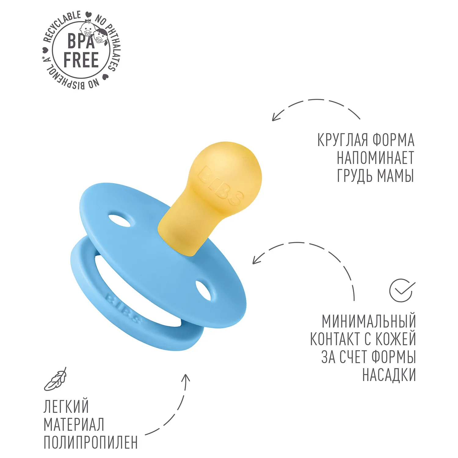 Пустышка, имитирующая грудь: разработана таким образом, чтобы максимально точно повторять естественную форму и движение соска матери во время грудного вскармливания, помогая младенцам, находящимся на грудном вскармливании, найти привычное положение.
