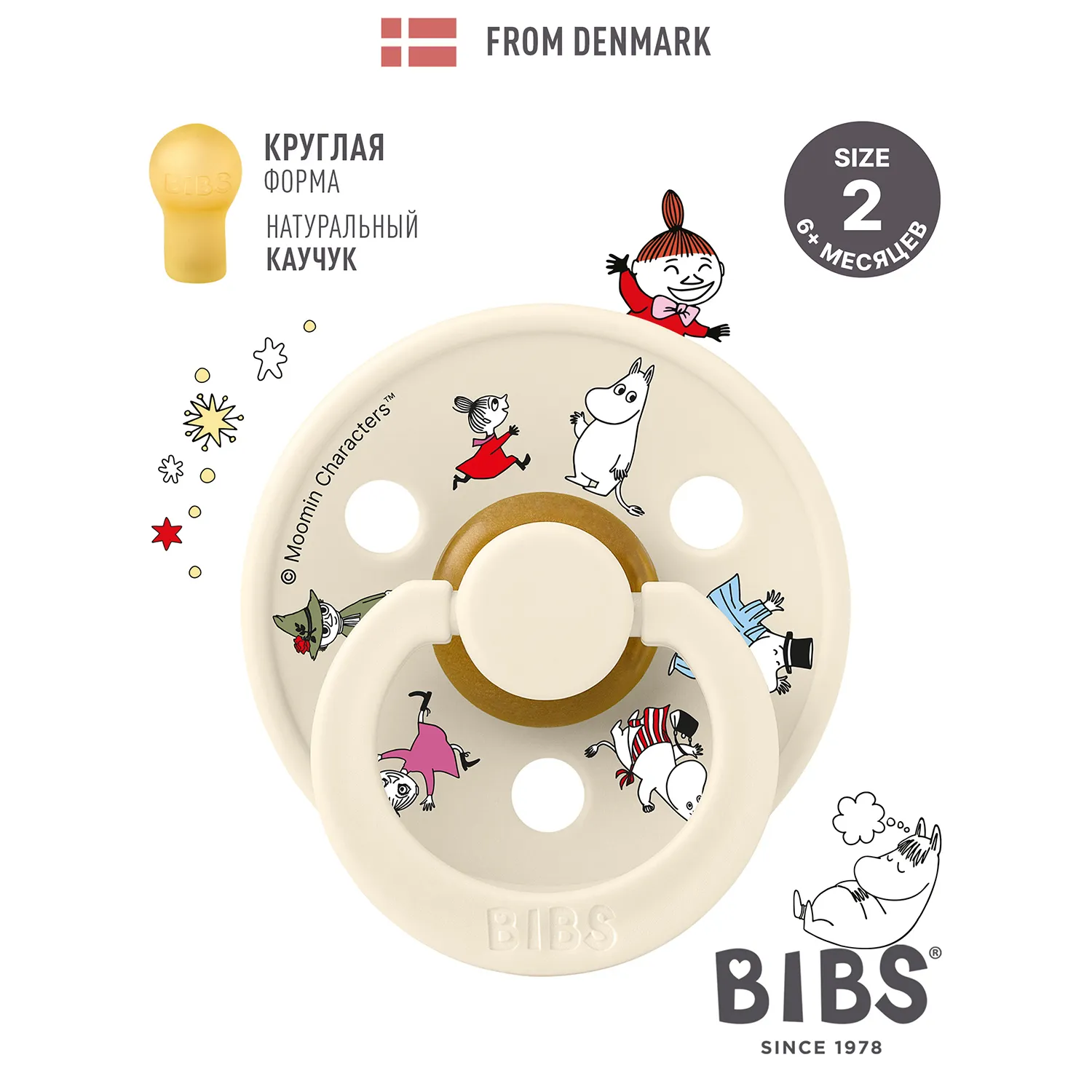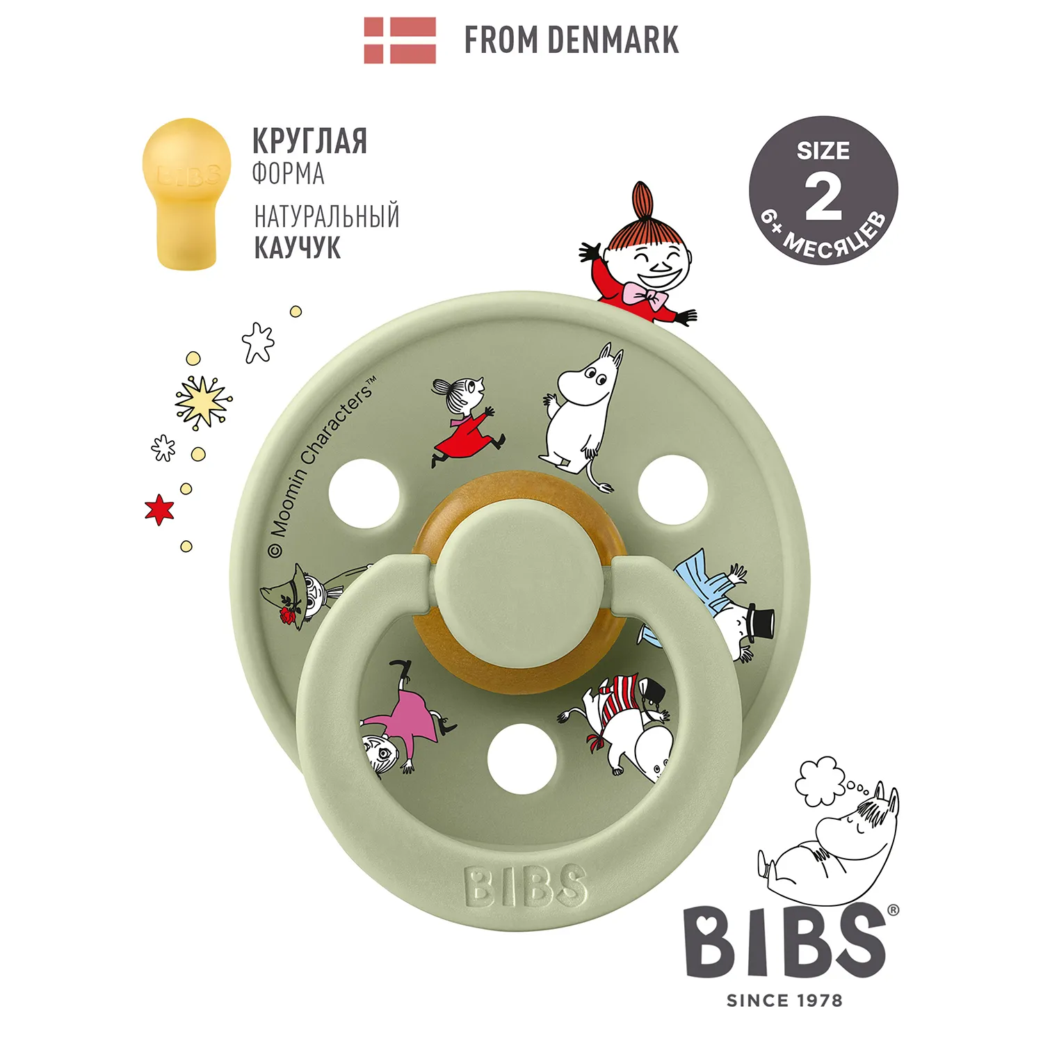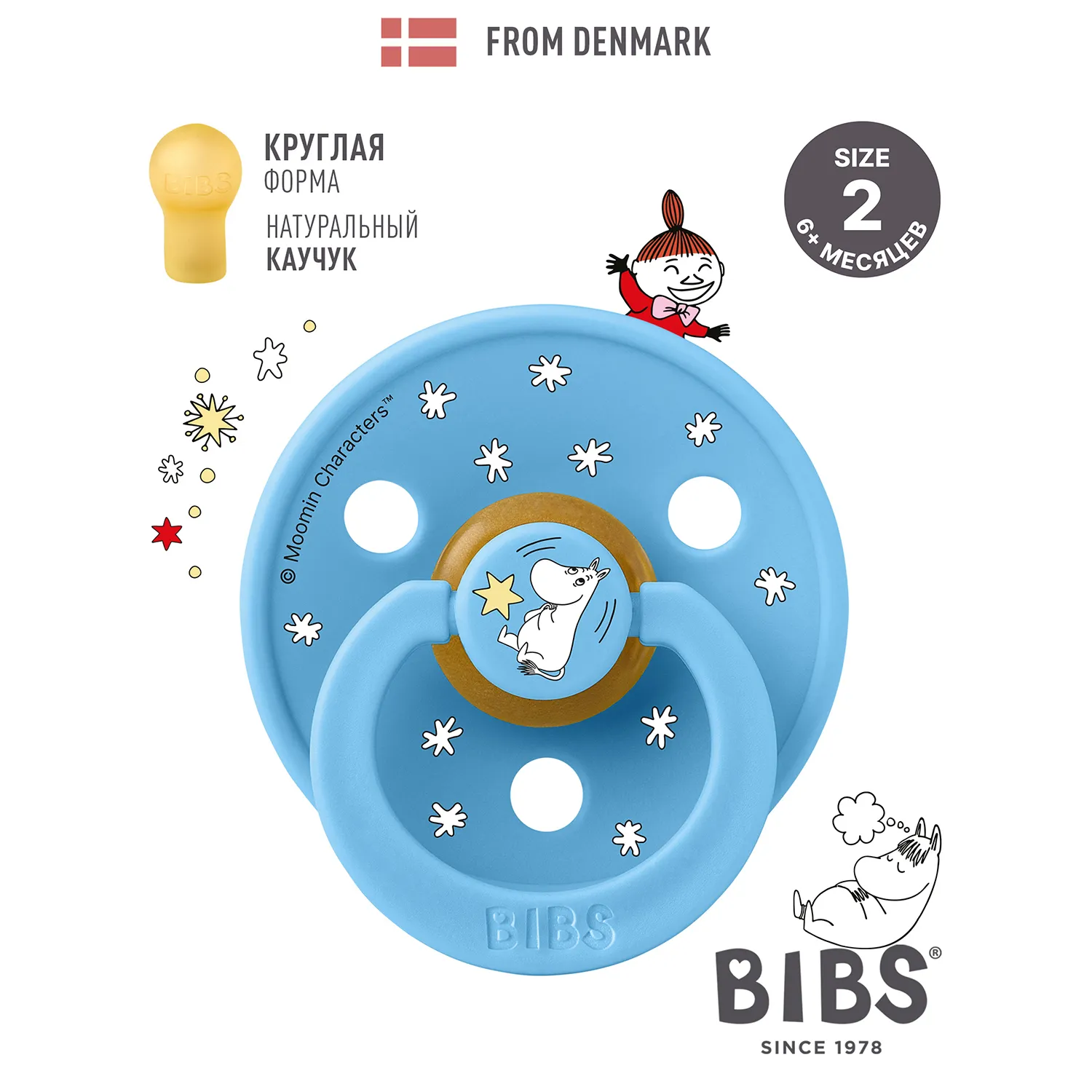 Знаменитая пустышка BIBS Colour приобретает игривый образ муми-тролля в рамках коллекции BIBS X MOOMIN. Эта коллекция с любимыми персонажами из вселенной муми-троллей создана для того, чтобы вызывать улыбки, успокаивать малышей и добавлять волшебства в повседневную жизнь родителей.