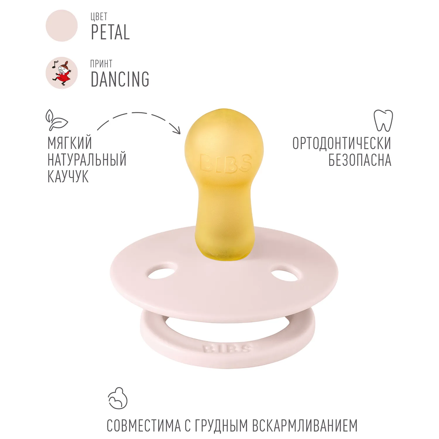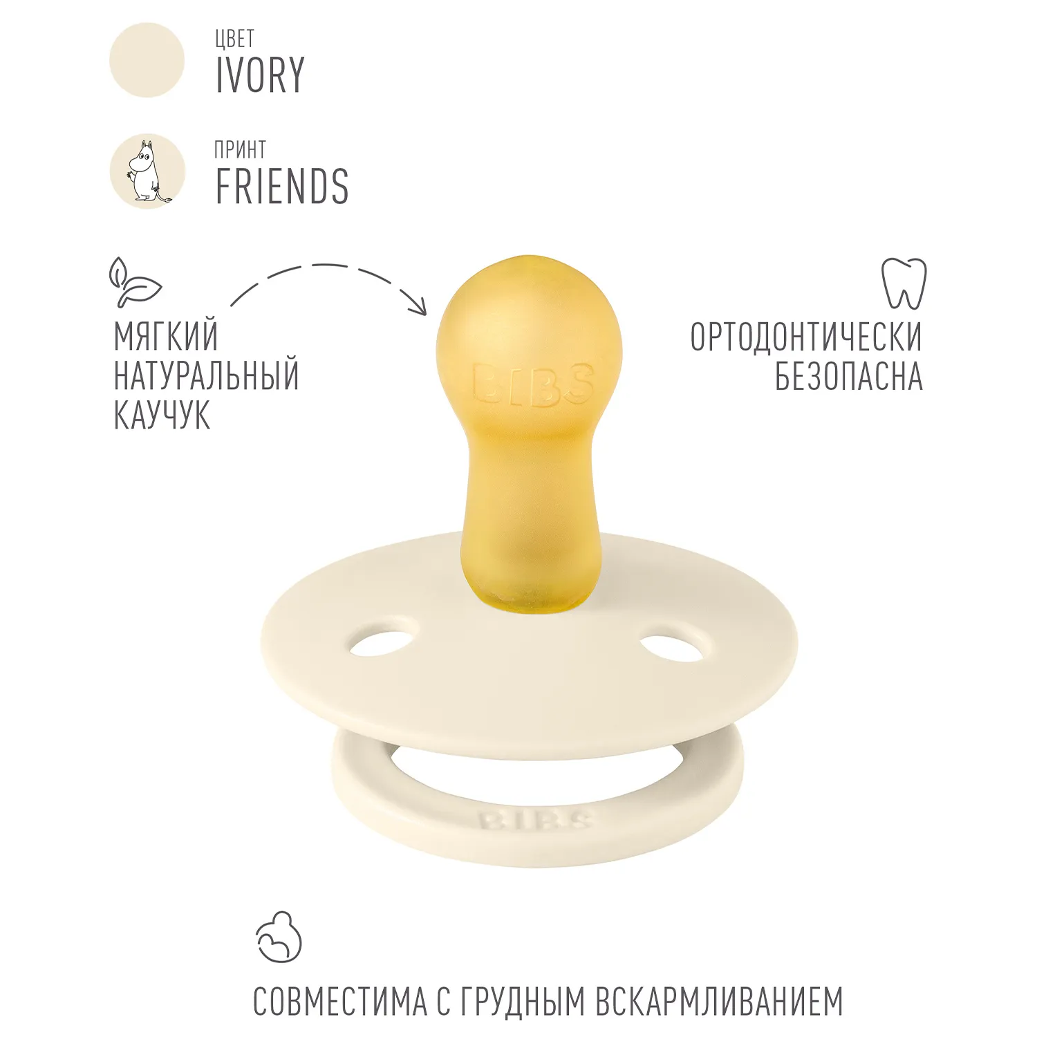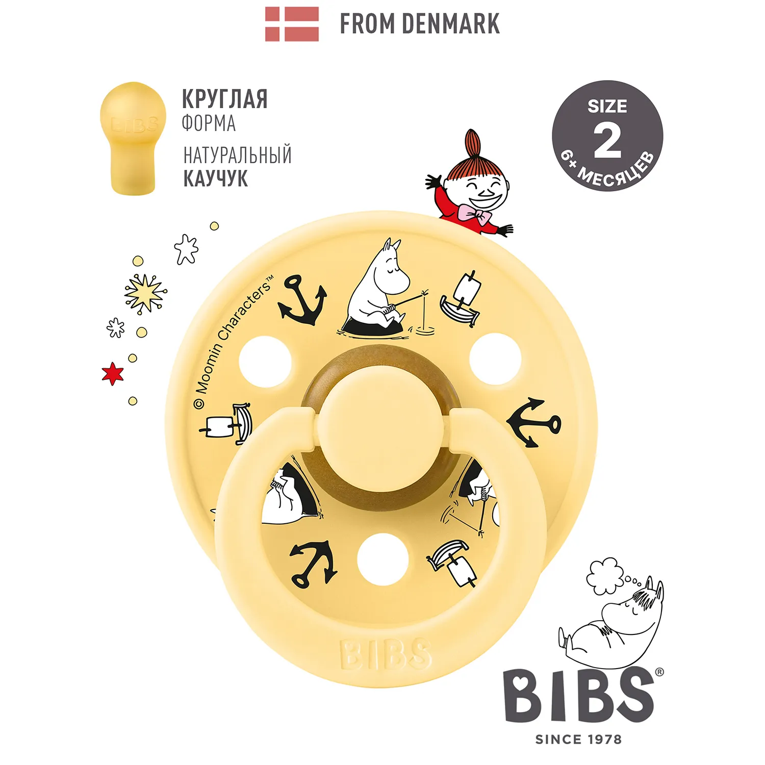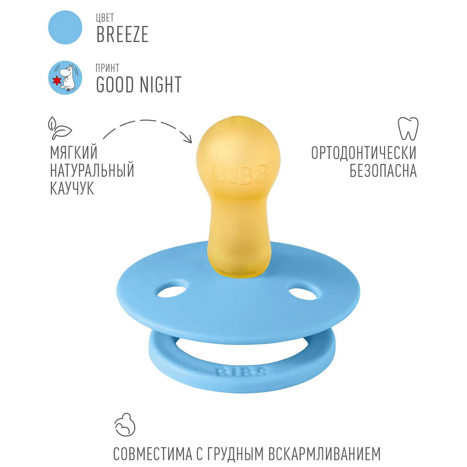 Знаменитая пустышка BIBS Colour приобретает игривый образ муми-тролля в рамках коллекции BIBS X MOOMIN. Эта коллекция с любимыми персонажами из вселенной муми-троллей создана для того, чтобы вызывать улыбки, успокаивать малышей и добавлять волшебства в повседневную жизнь родителей.