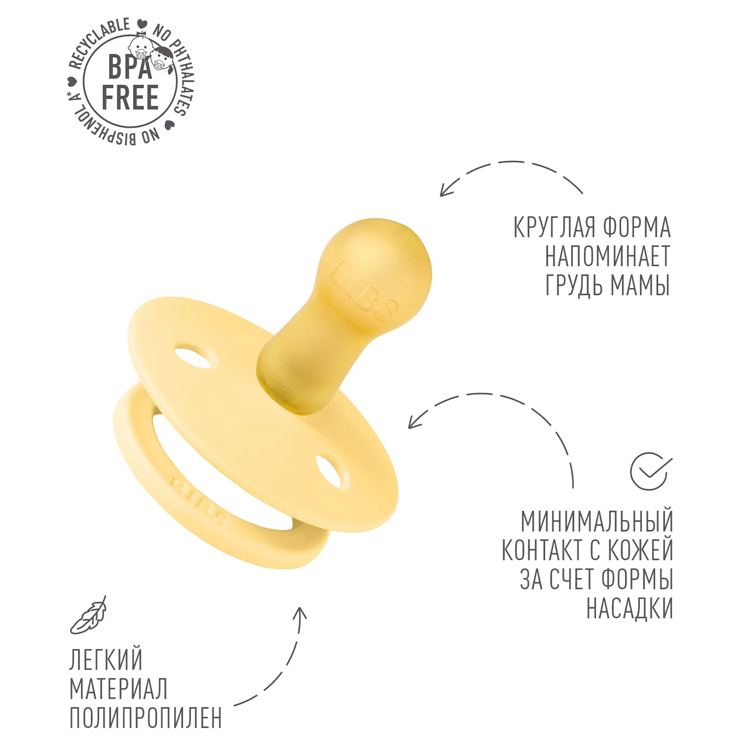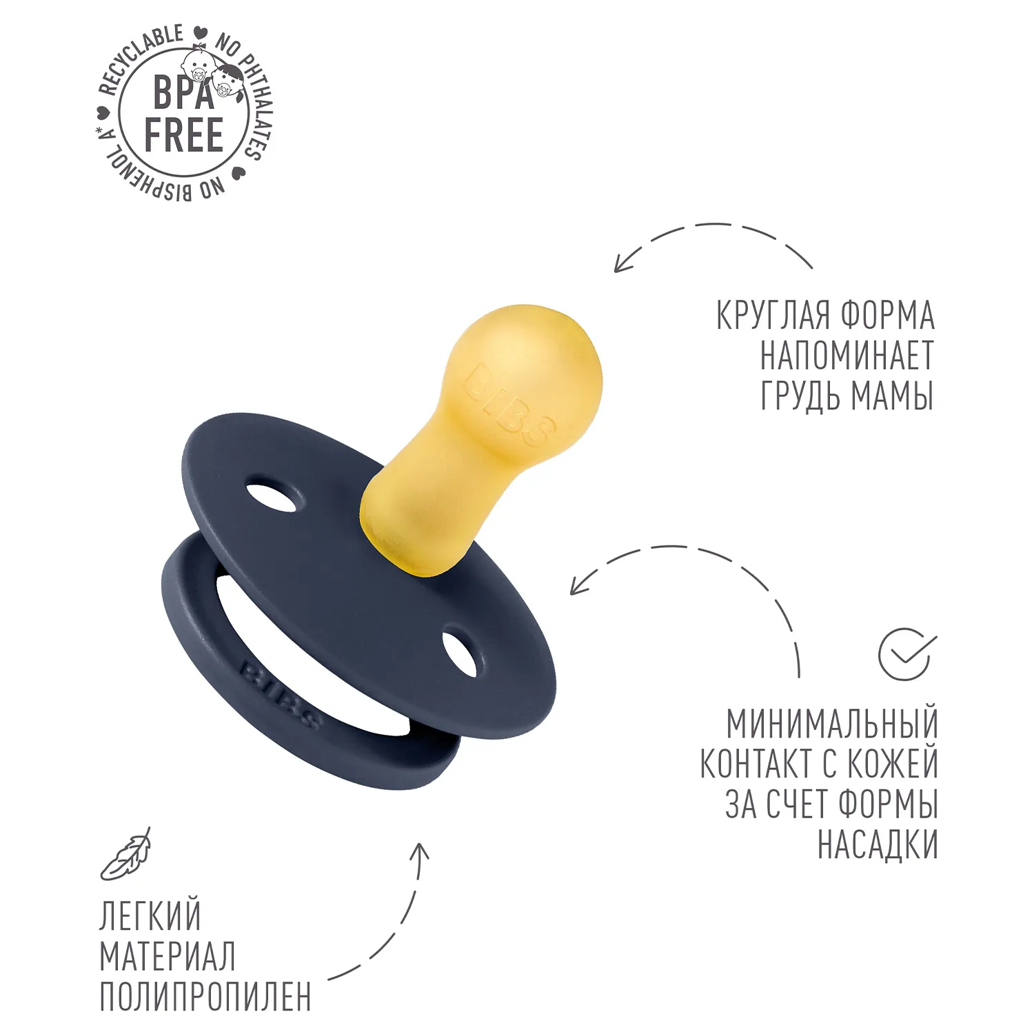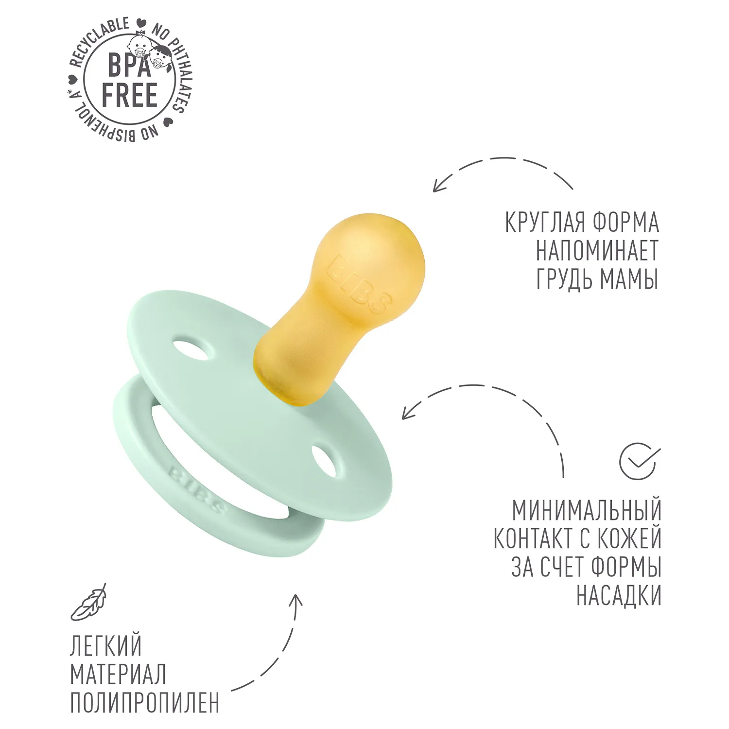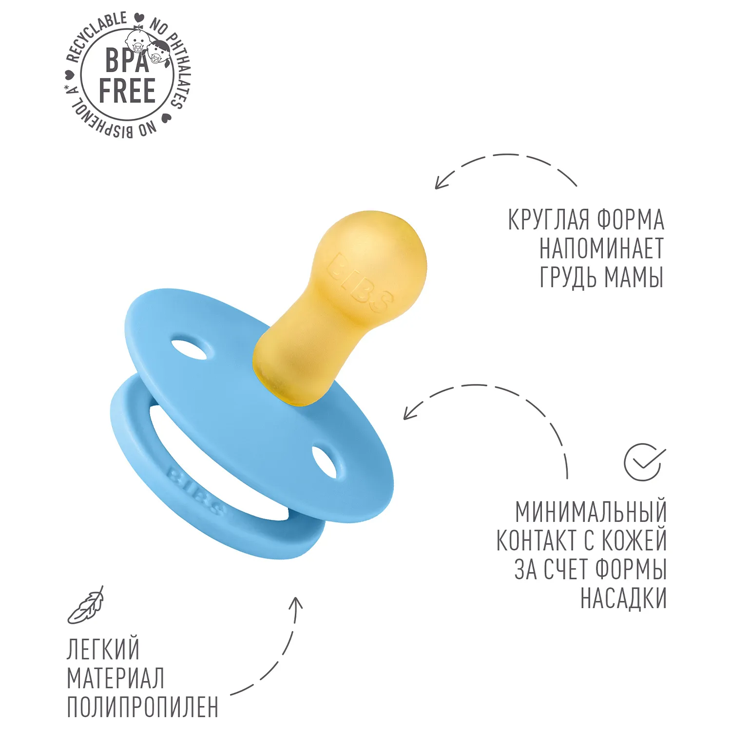 Пустышка, имитирующая грудь: разработана таким образом, чтобы максимально точно повторять естественную форму и движение соска матери во время грудного вскармливания, помогая младенцам, находящимся на грудном вскармливании, найти привычное положение.