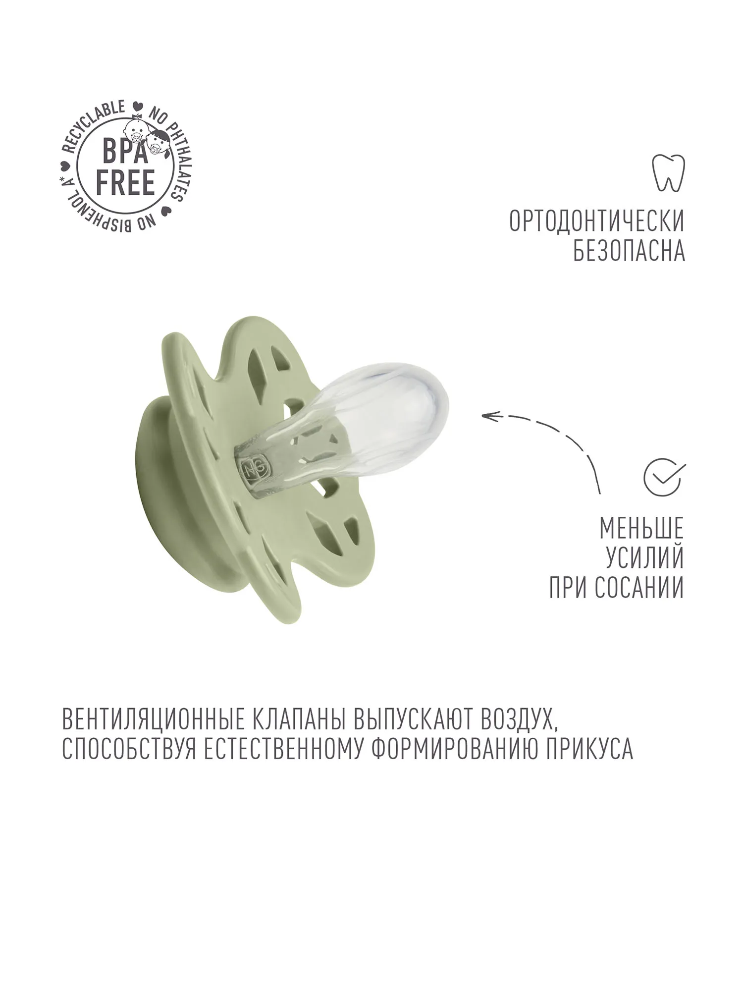 Дизайн накладки продуман таким образом, чтобы минимизировать контакт с чувствительной и нежной кожей вокруг рта ребенка. В каждой пустышке BIBS есть специальные вентиляционные клапаны, благодаря которым она является ортодонтически безопасной.