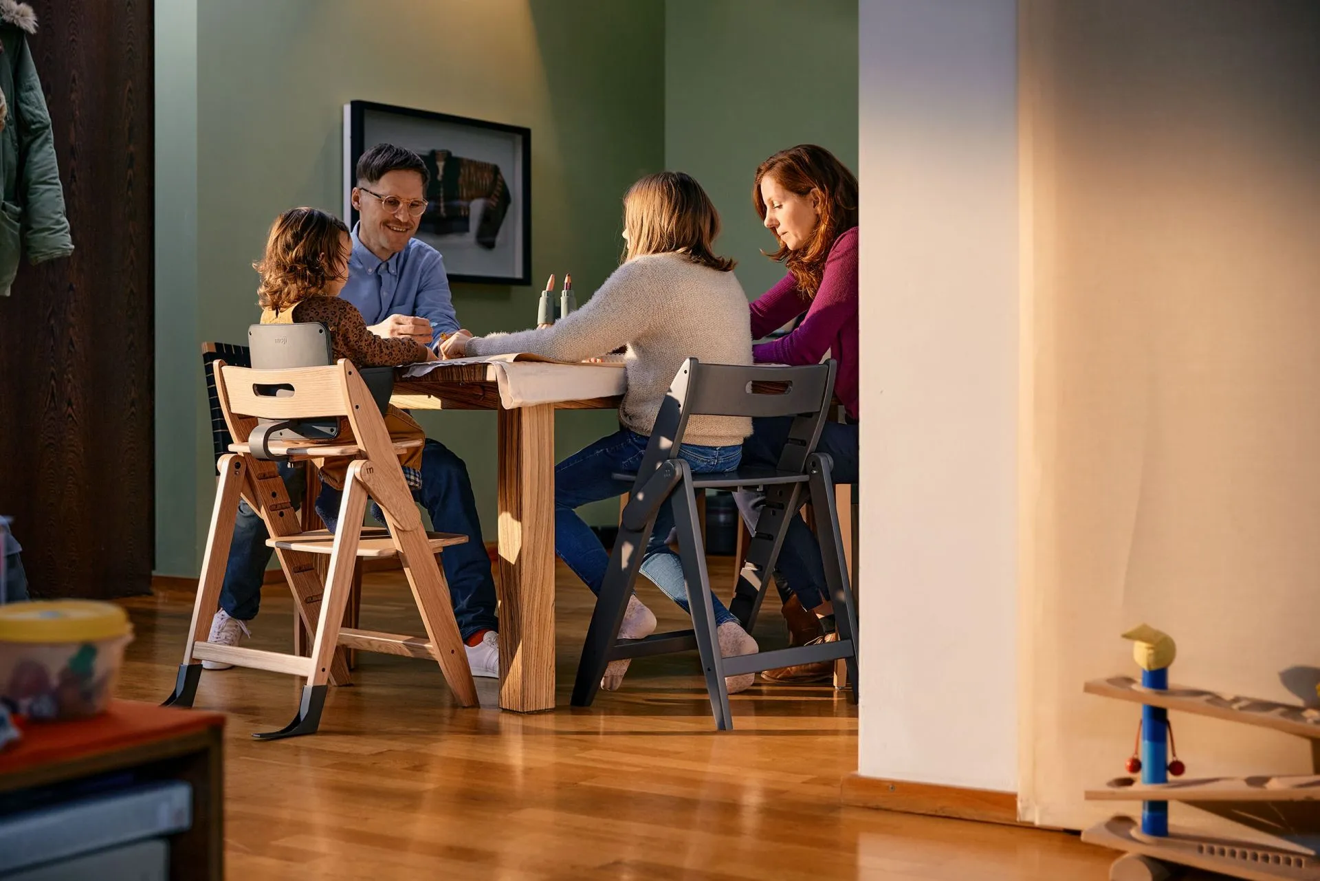 Отличается легкой сборкой и лаконичным дизайном. Сделан из натурального дуба — это прочный, экологичный и долговечный материал. Стульчик легко адаптируется под любые потребности, растет вместе с вашими детьми, оставаясь практичным и удобным. Позволяет ребенку комфортно чувствовать себя за одним столом со взрослыми.