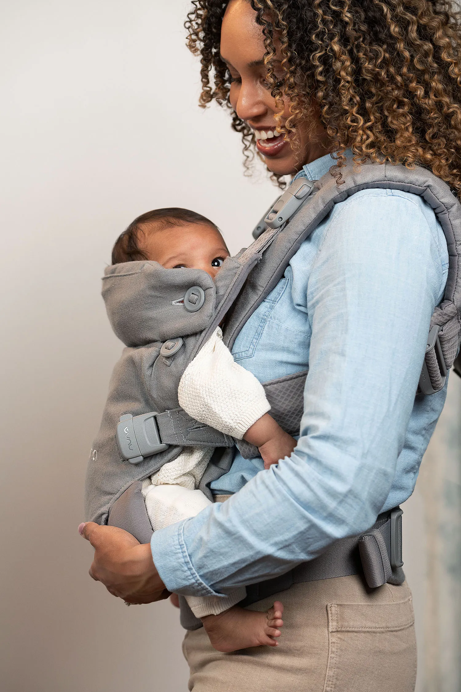 4 режима переноски позволяют адаптировать положение ребенка по мере его роста: