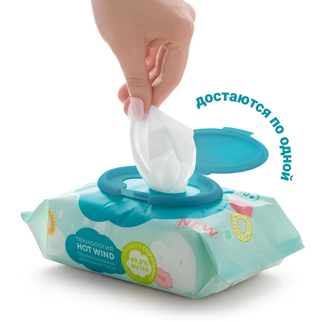 - Влажные салфетки не оставляют ощущения липкости и ворсинок на коже малышей