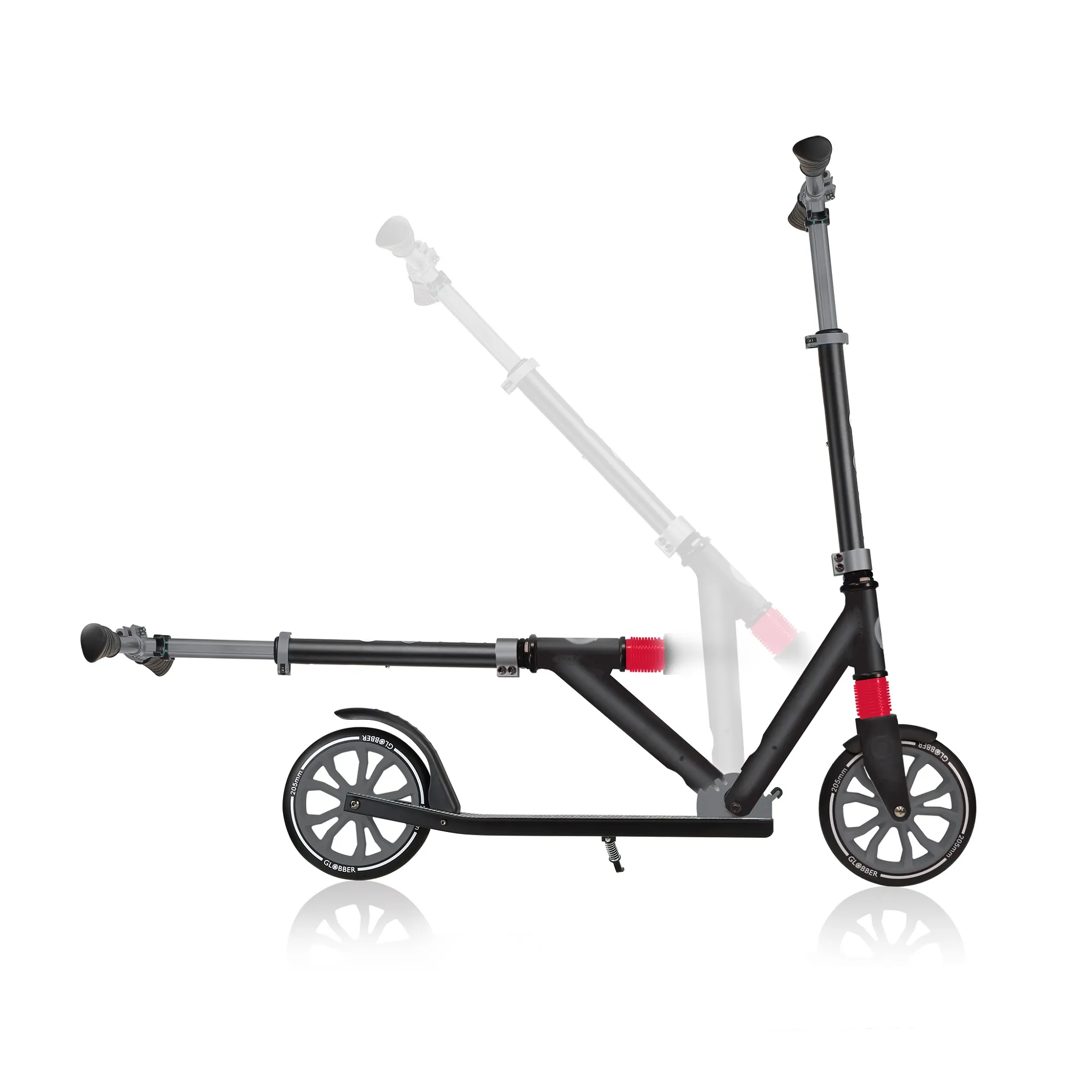 Globber NL 205 — двухколесный складной самокат с запатентованной системой складывания для хранения и транспортировки. Переднее колесо имеет амортизатор, который сгладит неровности дороги. Удобный руль регулируется по высоте в 3-х положениях, поэтому самокат подойдёт как детям, так и взрослым. Алюминиевая дека самоката оснащена нескользящим покрытием. Удлиненный ножной тормоз обеспечит плавное торможение и максимально безопасную езду. Имеет небольшую подножку для устойчивой парковки.