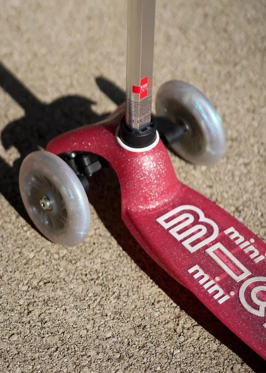 Самокат Mini Micro Deluxe Блестящий LED обеспечивает максимально комфортное и безопасное катание для Вашего малыша в пасмурные дни и темное время суток. Добавьте яркости и блесток ежедневным прогулкам Вашего малыша!