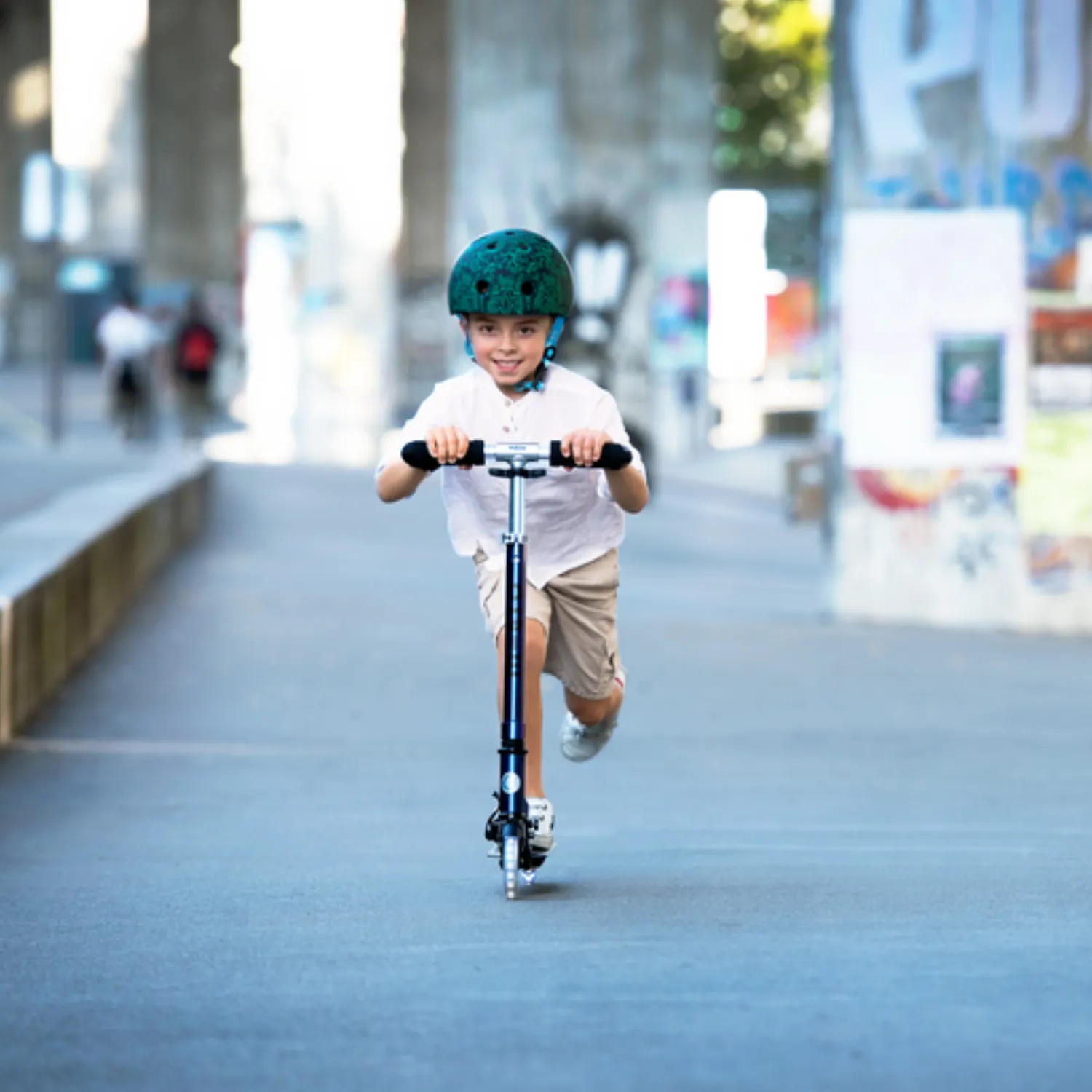 Стильный самокат Micro Sprite со светящимися колесами подойдет для детей от 5 лет, которые хотят научиться кататься на двух колесах. Узкая дека, регулируемый руль и небольшой вес обеспечат комфорт на время поездки. Благодаря прочной конструкции и нагрузке до 100 кг самокатом успешно могут пользоваться и взрослые. Максимальная высота ручки — 95 см.