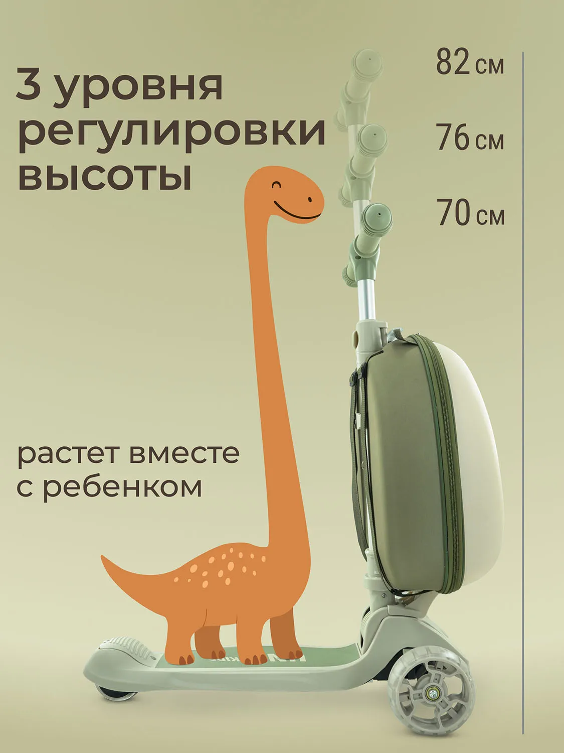 - Руль регулируется по высоте на 3 уровня: 70, 76 и 82 см
