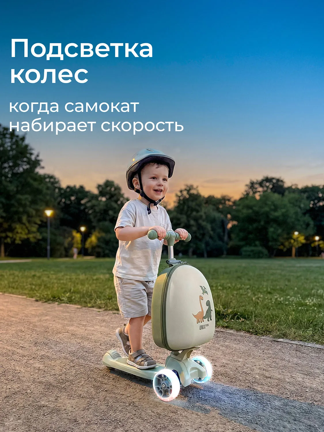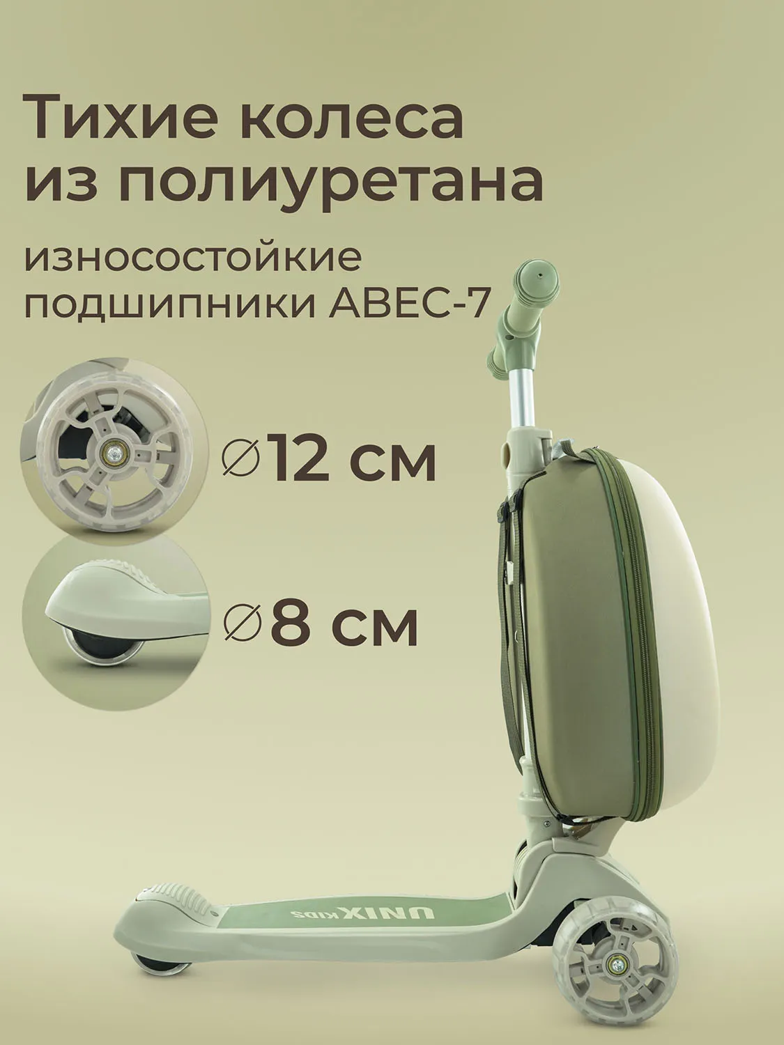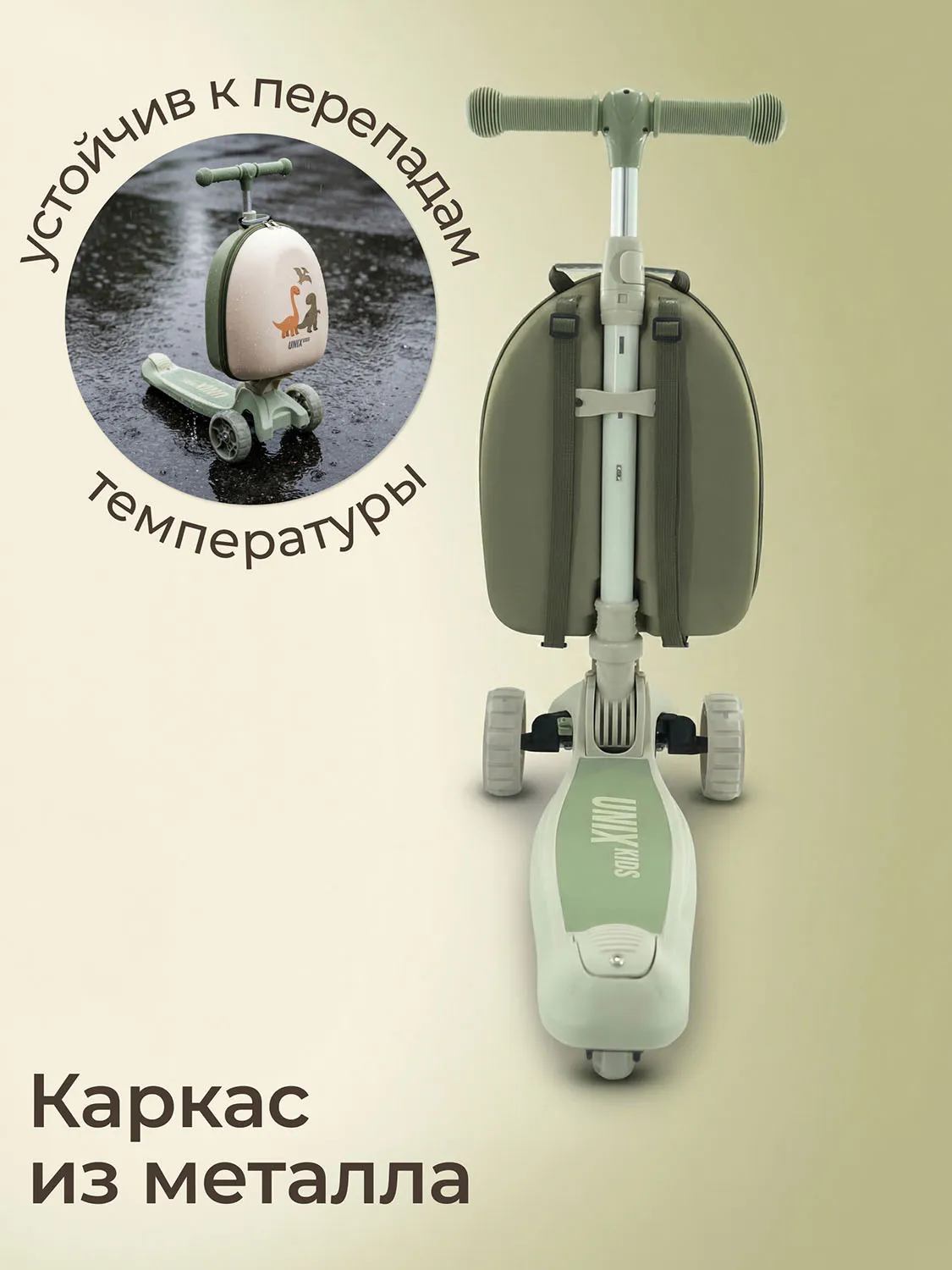 Детский трехколесный самокат UNIX Kids с чемоданом-рюкзаком в комплекте разработан специально для юных райдеров (девочек и мальчиков), любящих активно проводить свободное время на улице и получать удовольствие от катания.