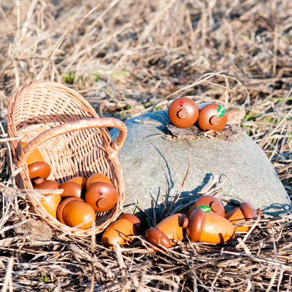 Набор содержит 12 крепких крупных желудей 3х5 см, выпиленных из бука и расписанных вручную безопасными акриловыми красками на водной основе. Игрушка развивает у ребенка наблюдательность, логику, мелкую моторику. Желуди хранятся в удобном льняном мешочке. Игрушка сертифицирована для детей с 3 лет.