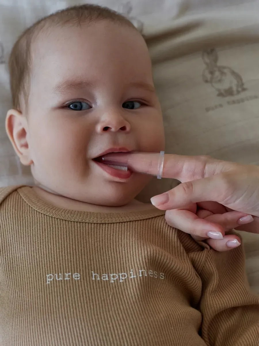 Зубная щетка на палец Happy Baby позволяет тщательно очищать десны ребенка, а также поможет справиться с неприятными ощущениями и зудом при прорезывании первых зубов малыша.
