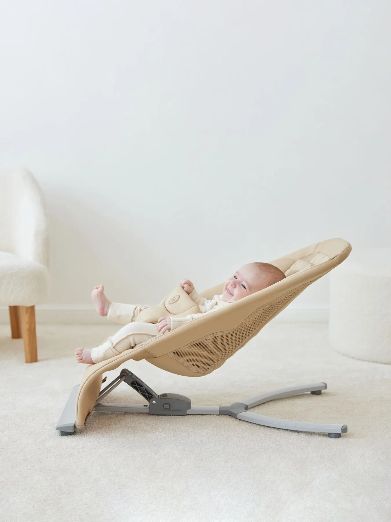 Детский шезлонг поможет мамам заниматься необходимыми делами и всегда быть рядом с новорождённым. Устройте себе перерыв, пока малыш изучает мир за пределами кроватки, покачиваясь в уютном сиденье. Будьте уверены, что младенец находится в анатомически правильном положении. Устойчивая конструкция снабжена мягким разделителем для ног и надёжными ремнями на фастексах для безопасности. У эргономичного кресла 3 варианта наклона, что позволяет учитывать режим дня и настроение крохи. Каркас изготовлен из лёгкого и прочного алюминия, благодаря чему шезлонг удобно переносить по дому. Устройство компактно в сложенном виде: то, что нужно для хранения и путешествий. Раскладывается одной рукой, пока во второй вы держите малыша: достаточно поднять спинку. Приятный мягкий матрасик из нежного материала доставит малышу только приятные ощущения и поддержит его хорошее настроение. Ткань быстро отстирывается руками. Дизайн в соответствии с современными тенденциями идеально впишется в интерьер.