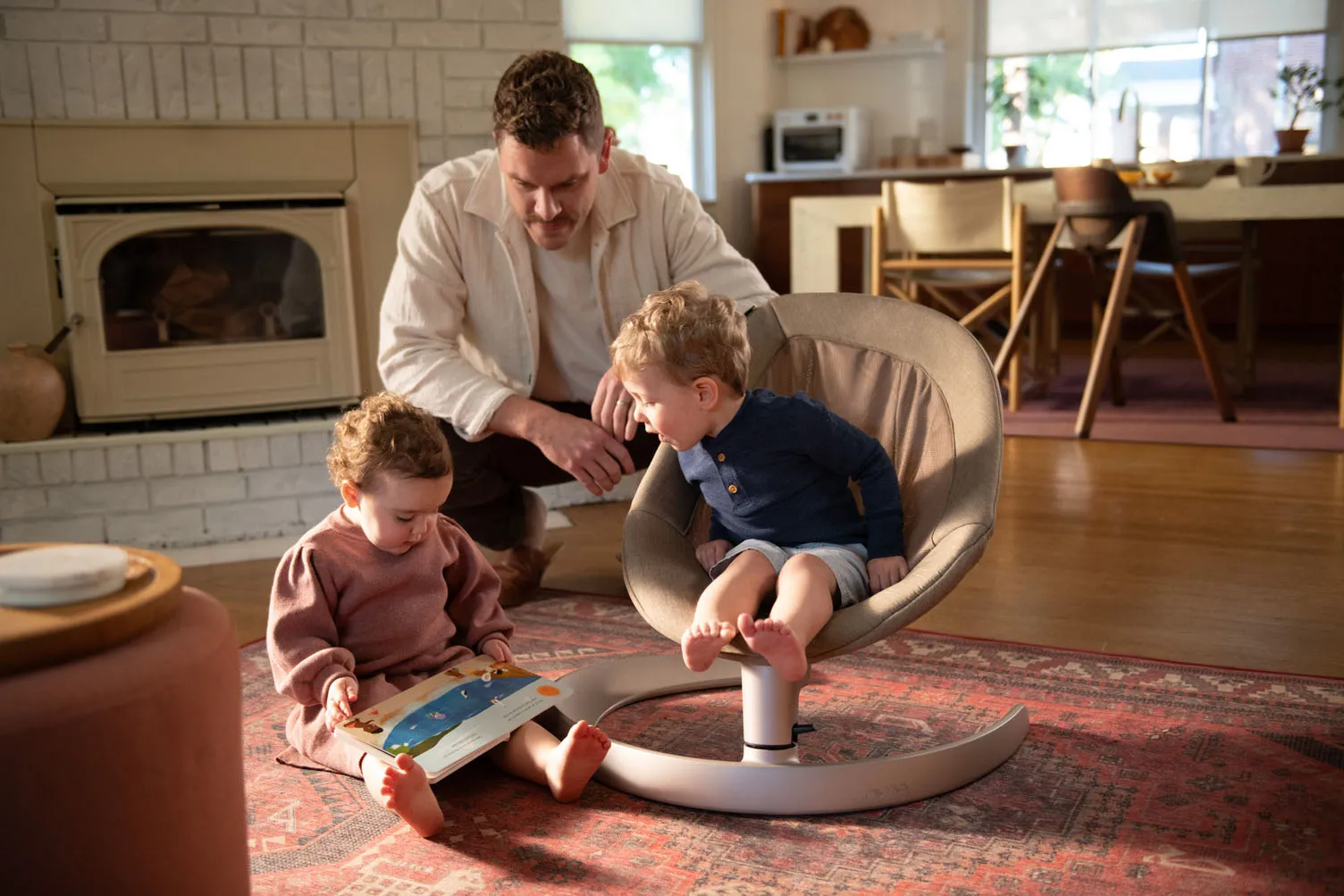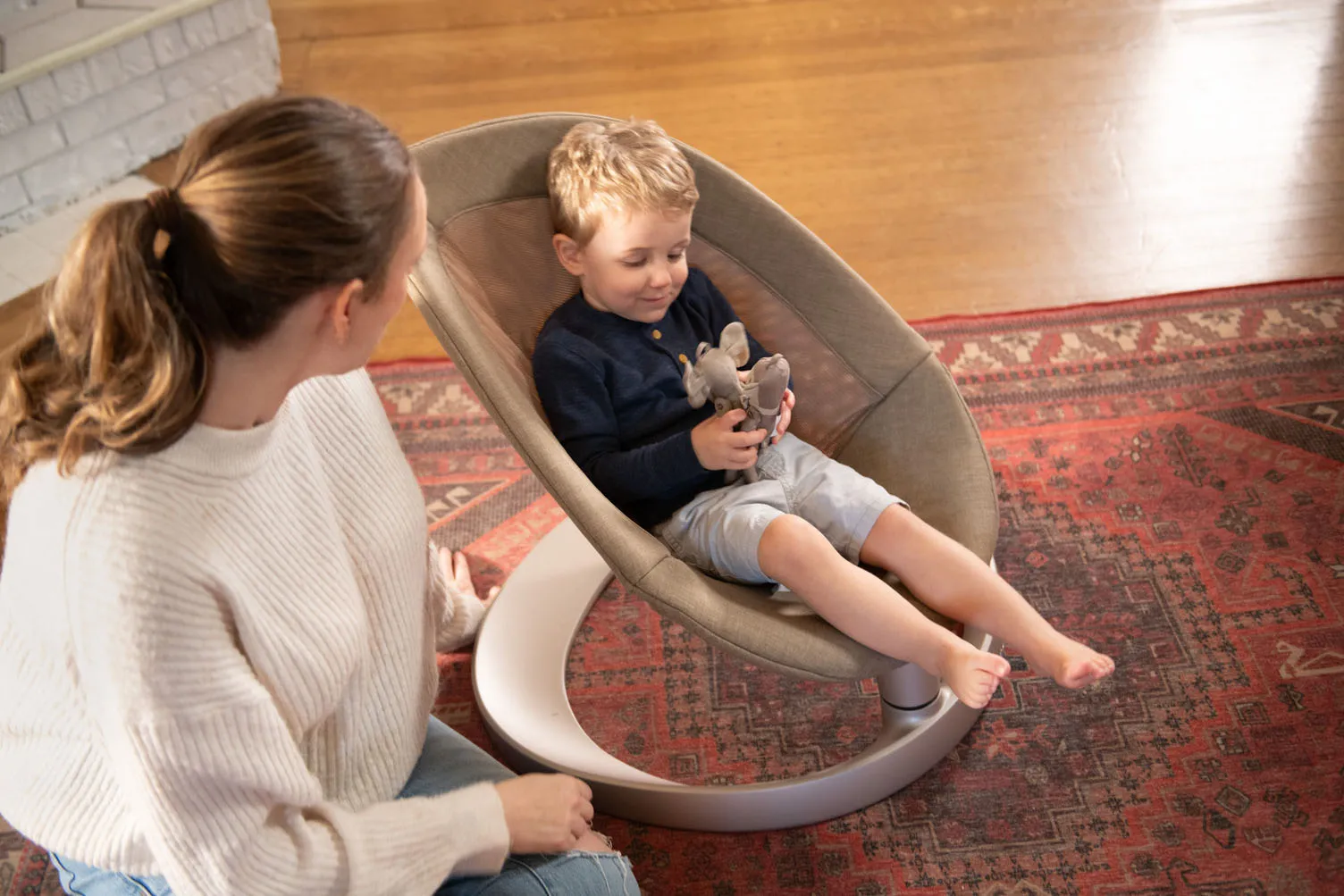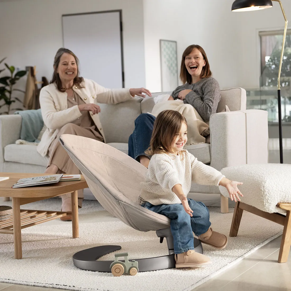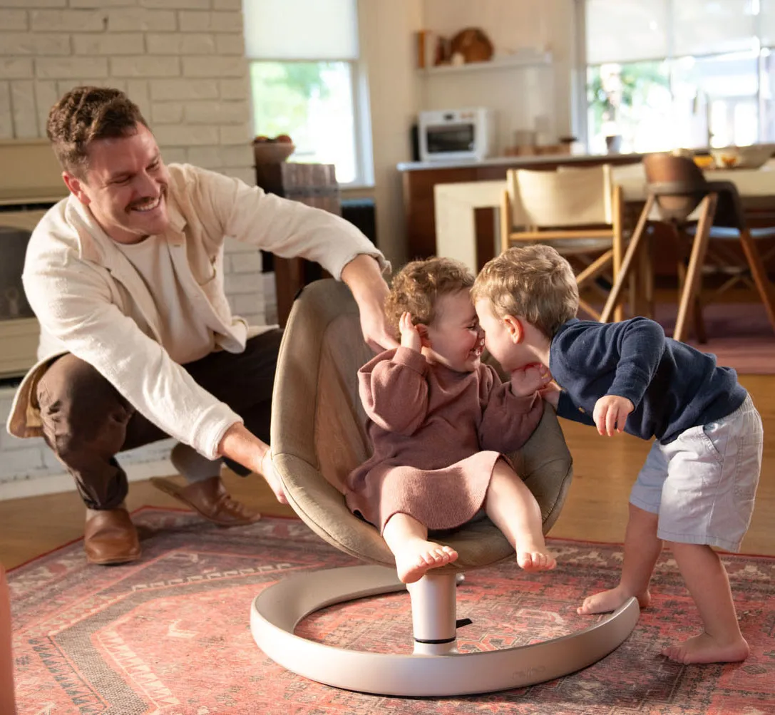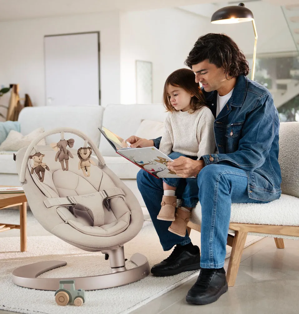 Универсальное кресло-качалка (шезлонг), которое растет вместе с вашим ребенком от рождения до подросткового возраста (максимальная нагрузка 60 кг); без мотора, батарей и шума — естественное боковое покачивание до 2 минут, три эргономичных наклона для идеального положения в любом возрасте. Безупречный уют для малыша и спокойствие для мамы.